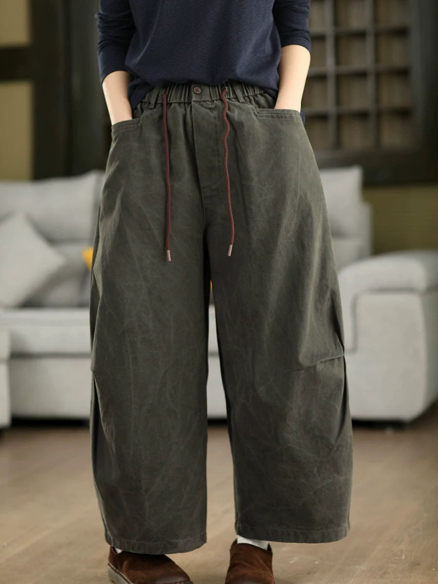 Women Spring Casual Pure Color 100%Cotton Straight Pants