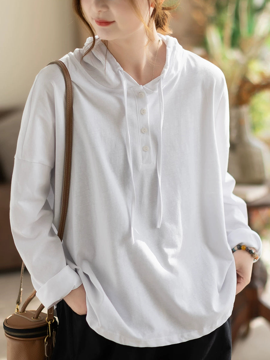 Women Spring Casual Pure Color Cotton Hoodie