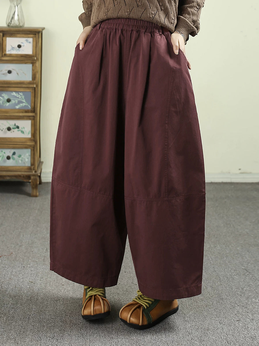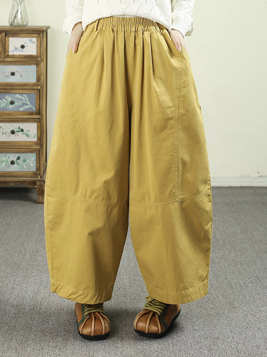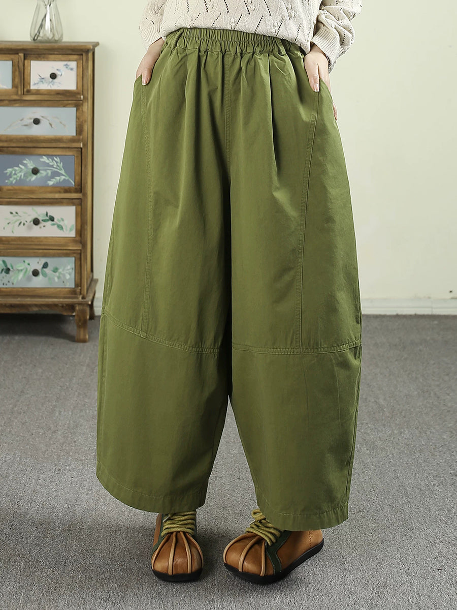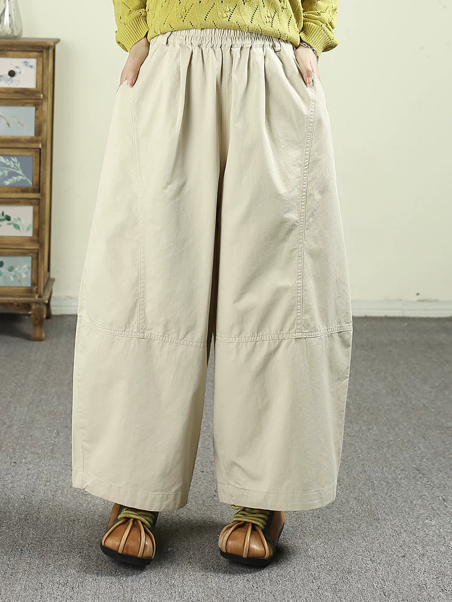 Women Spring Casual Pure Color Cotton Wide-leg Pants