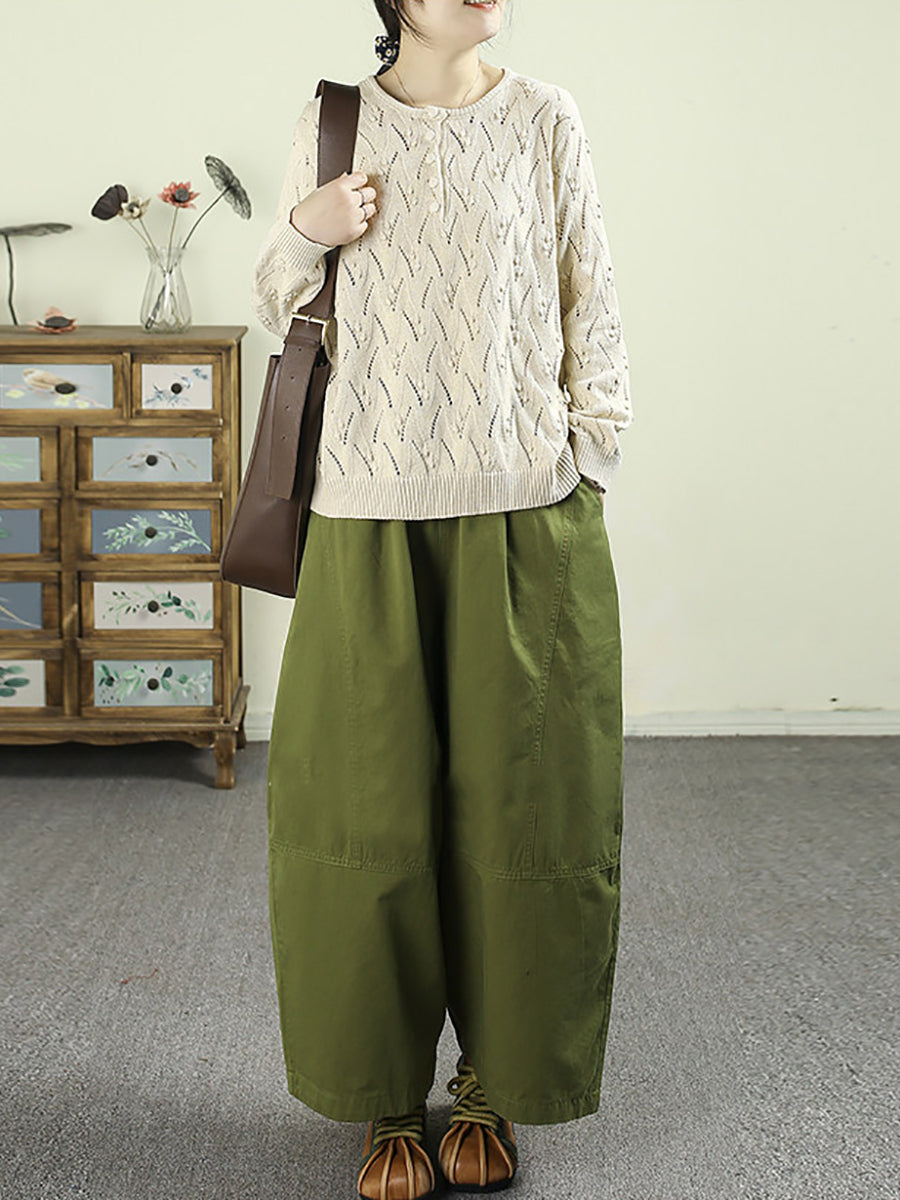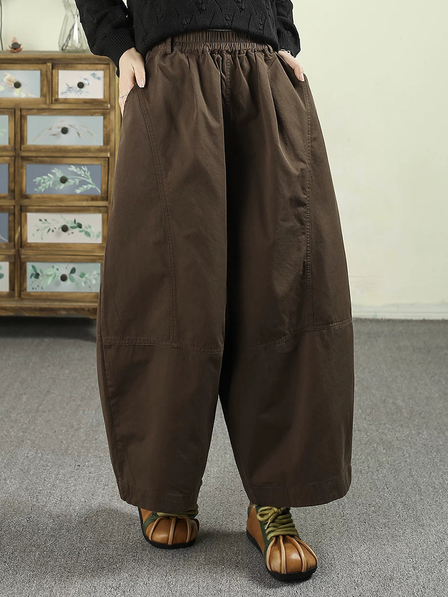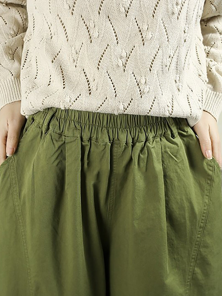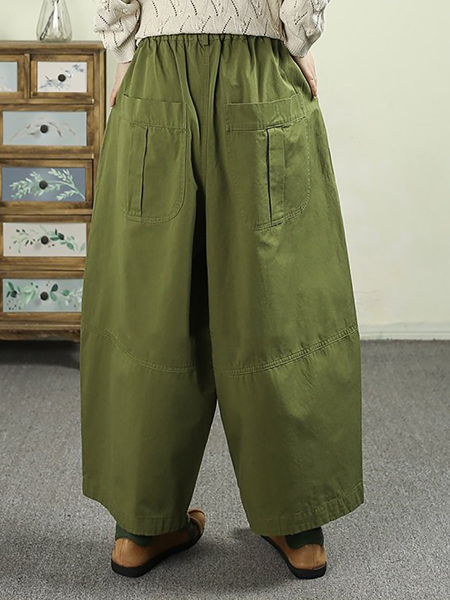 Women Spring Casual Pure Color Cotton Wide-leg Pants