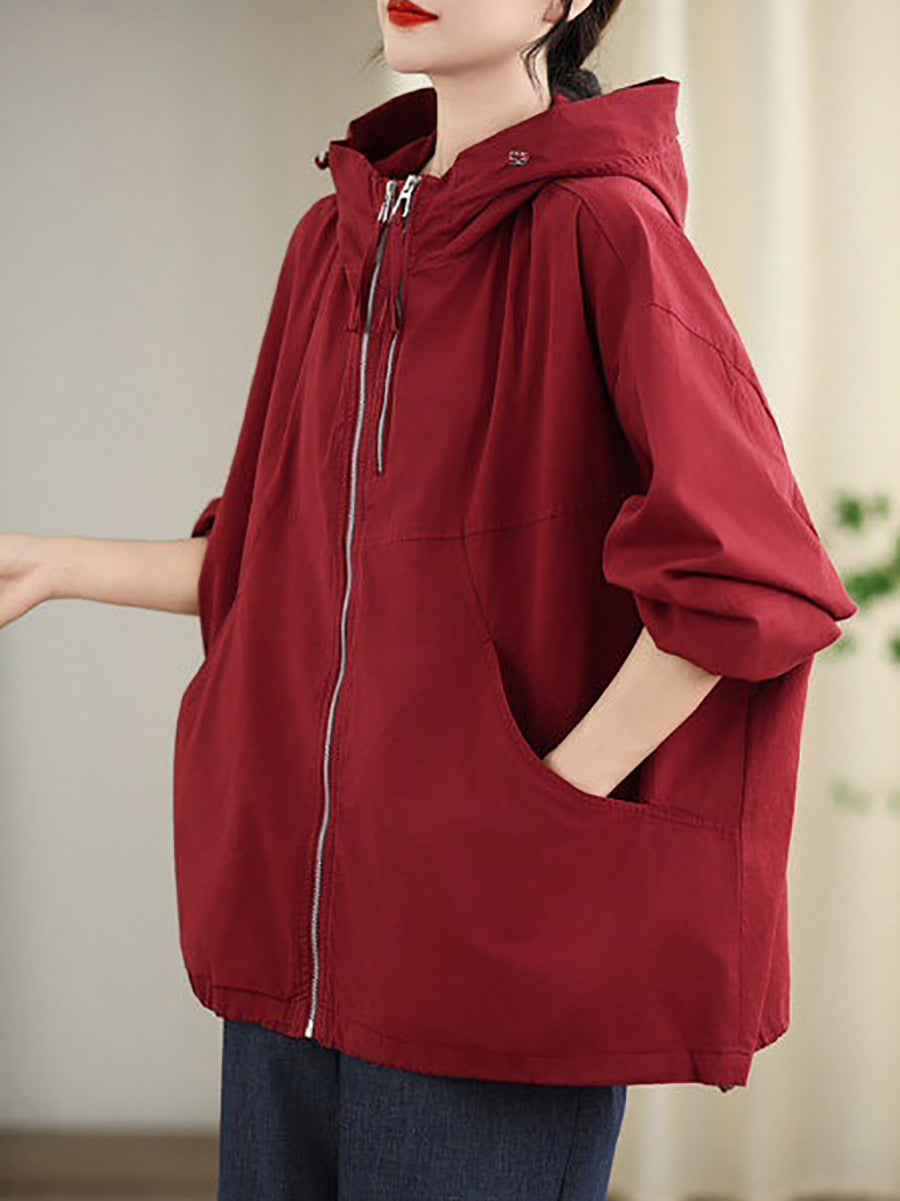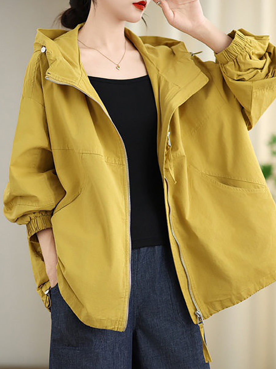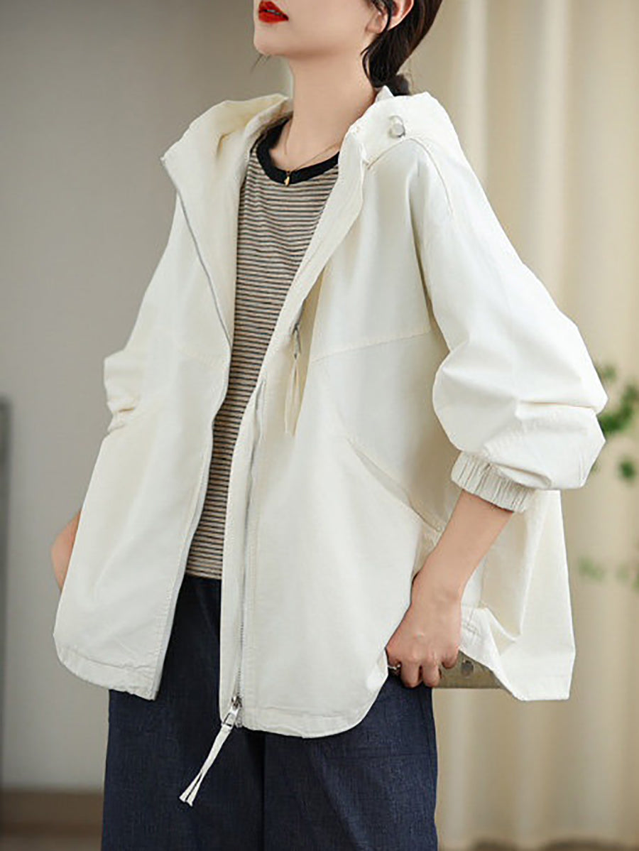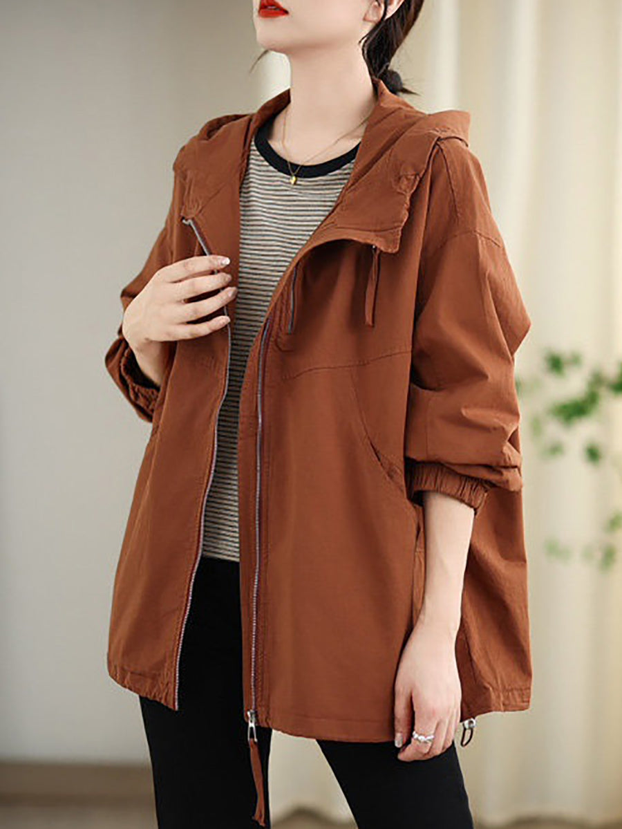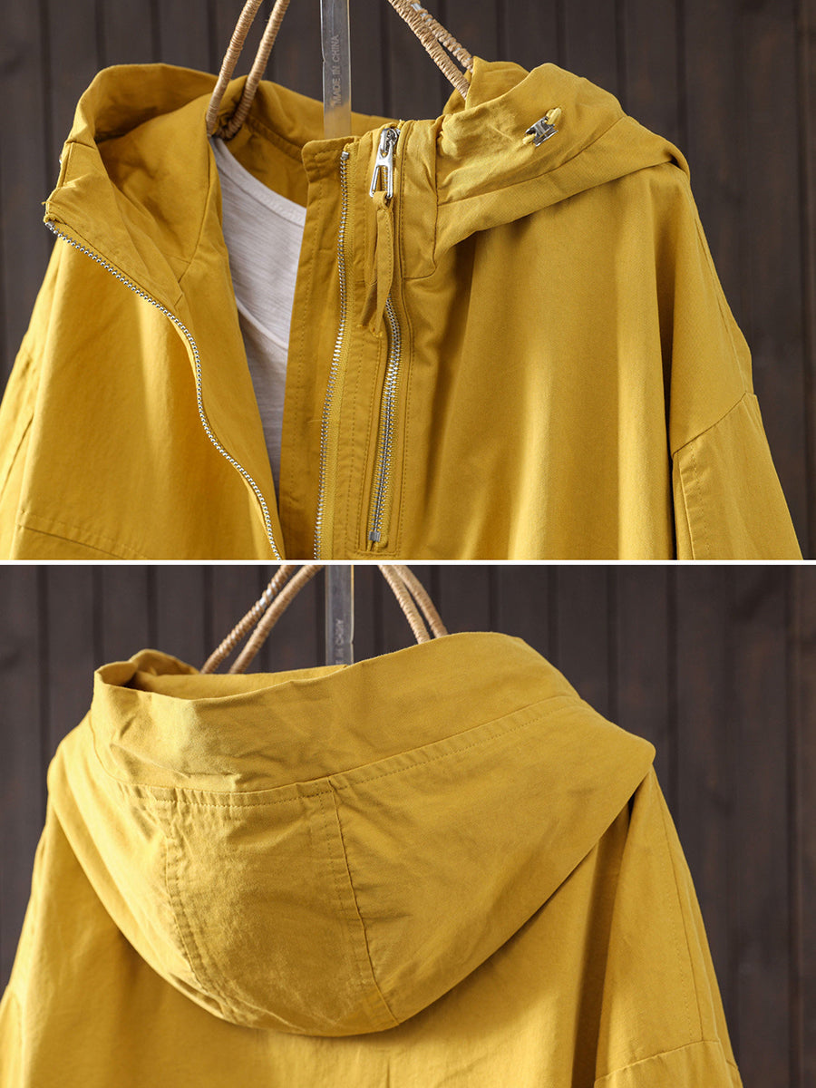 Women Spring Casual Pure Color Hooded 100%Cotton Coat