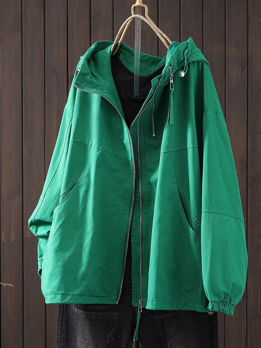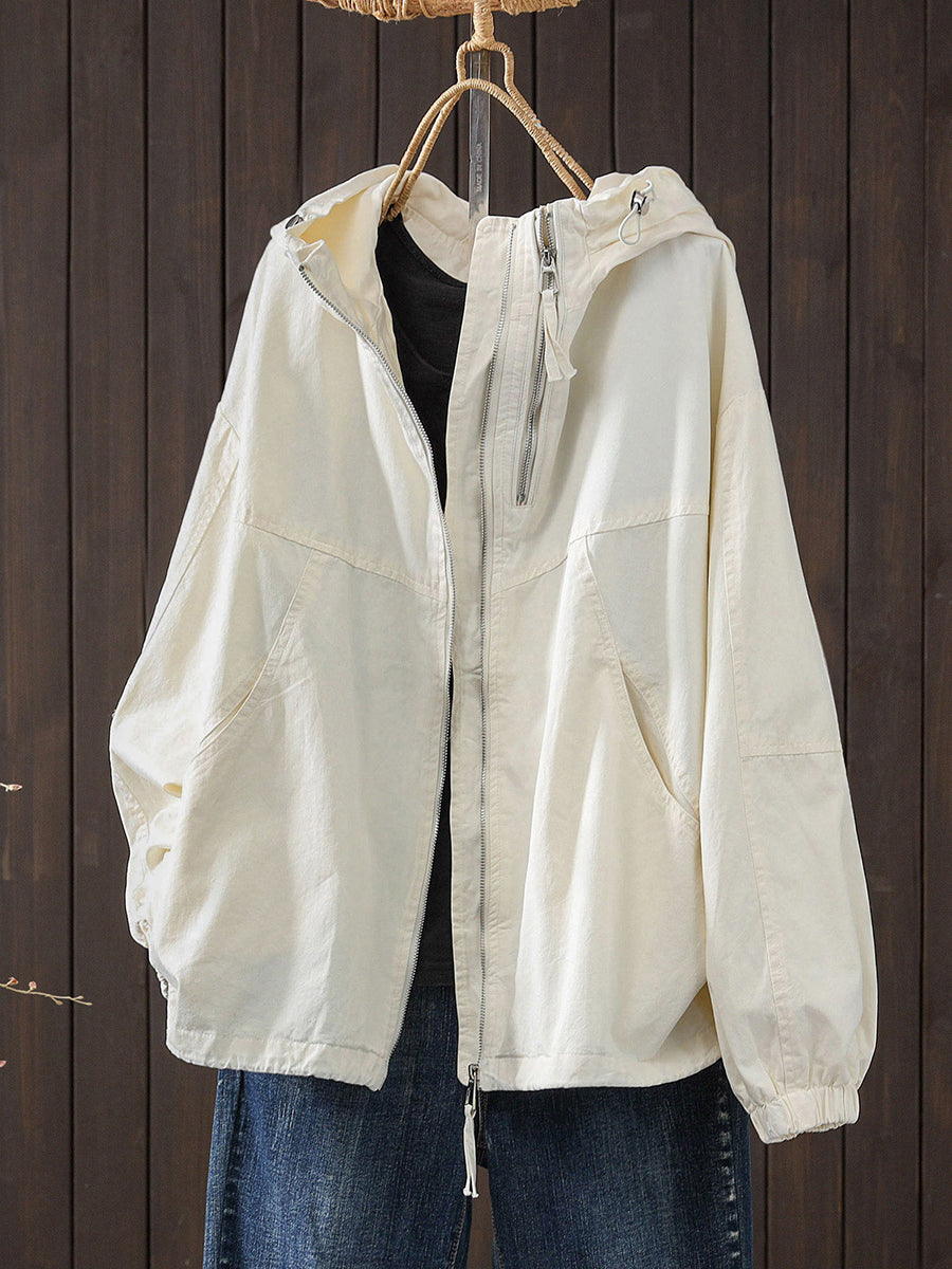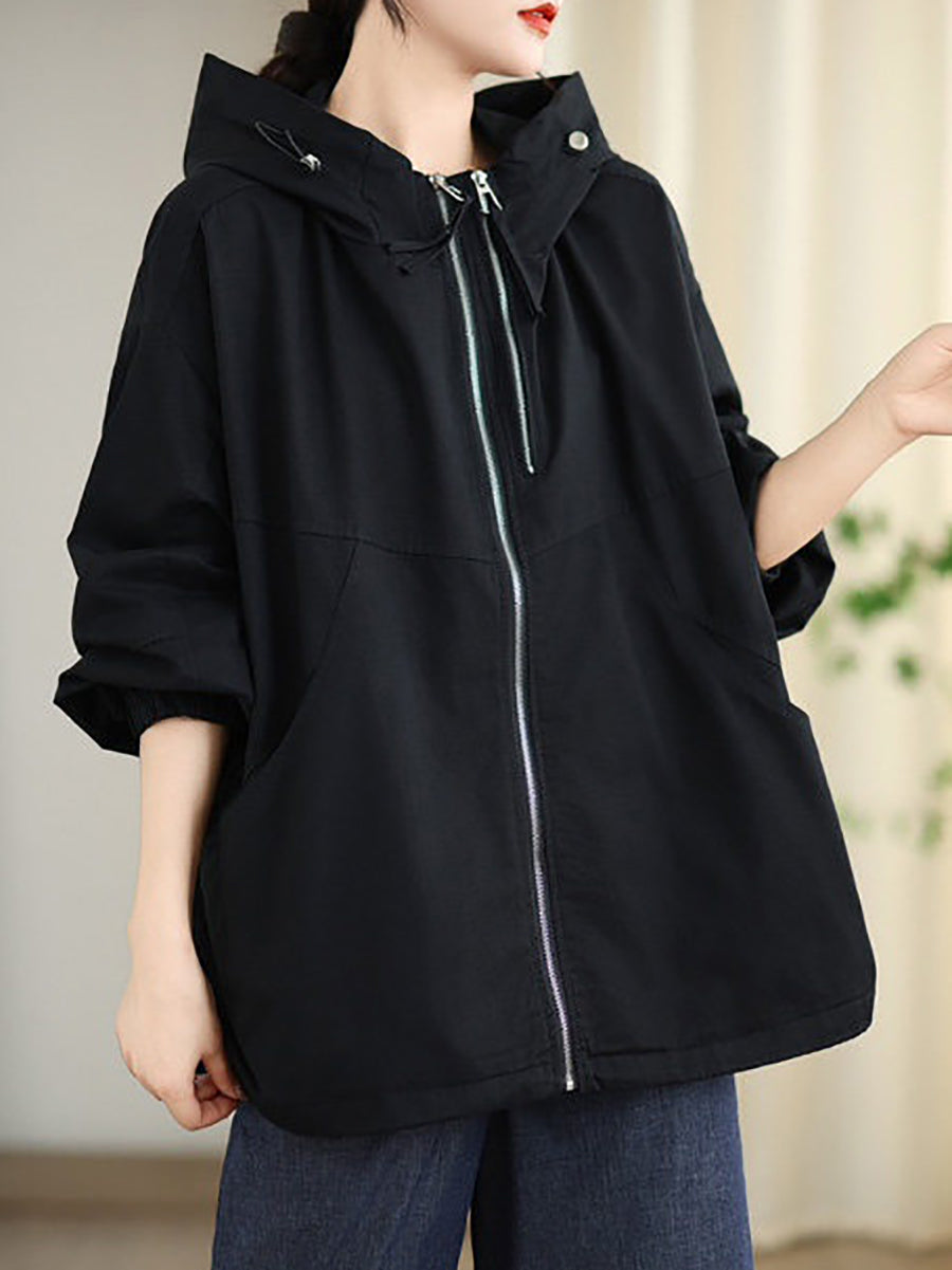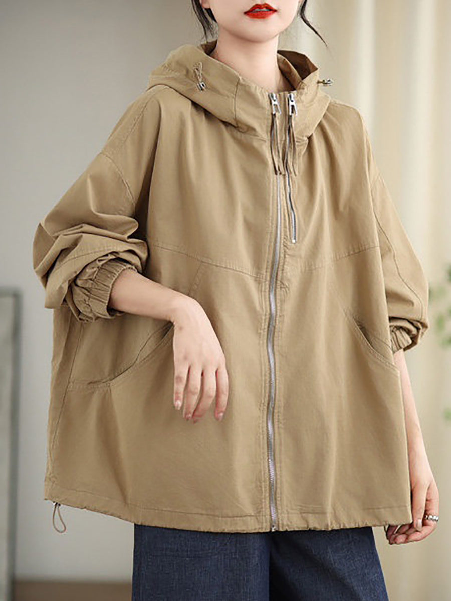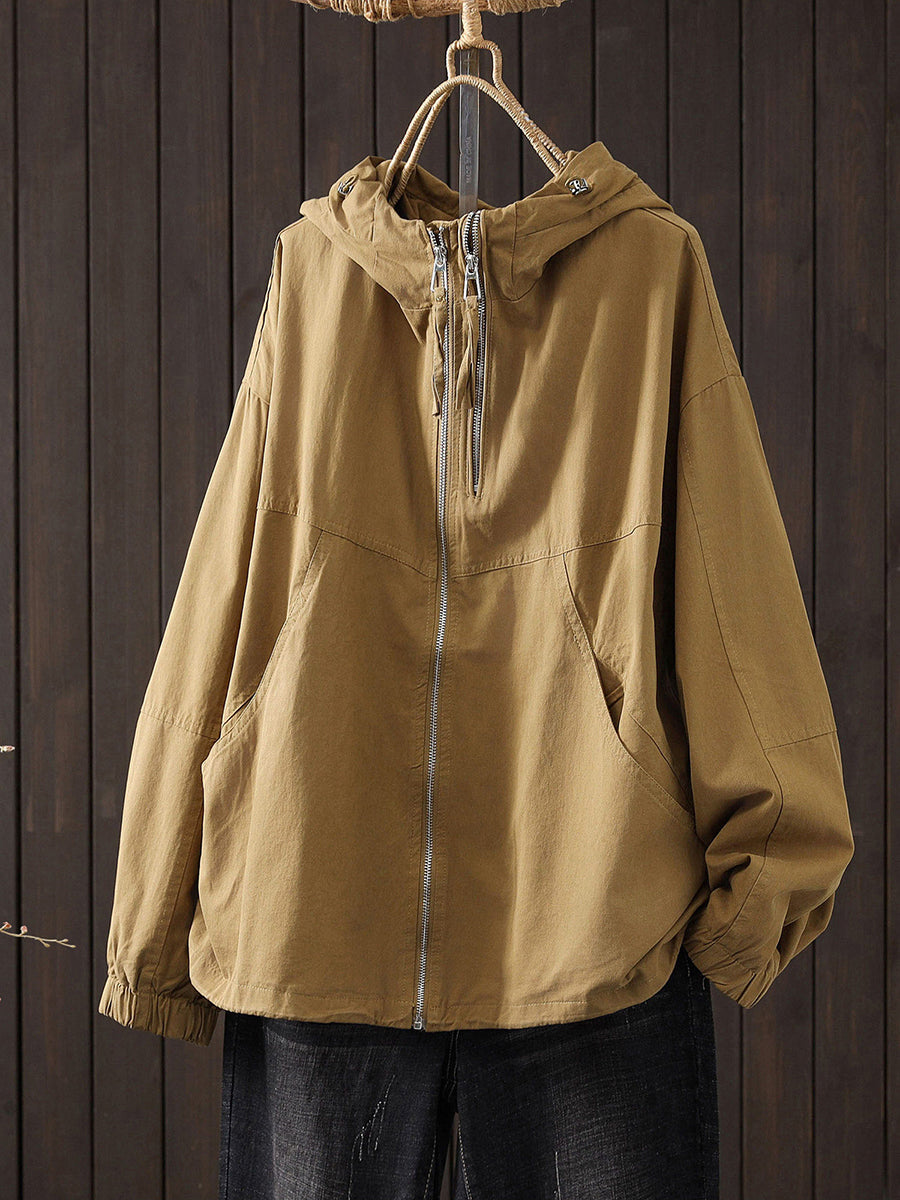 Women Spring Casual Pure Color Hooded 100%Cotton Coat