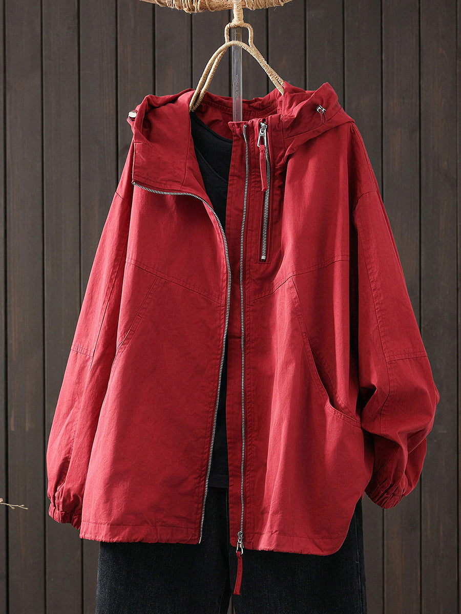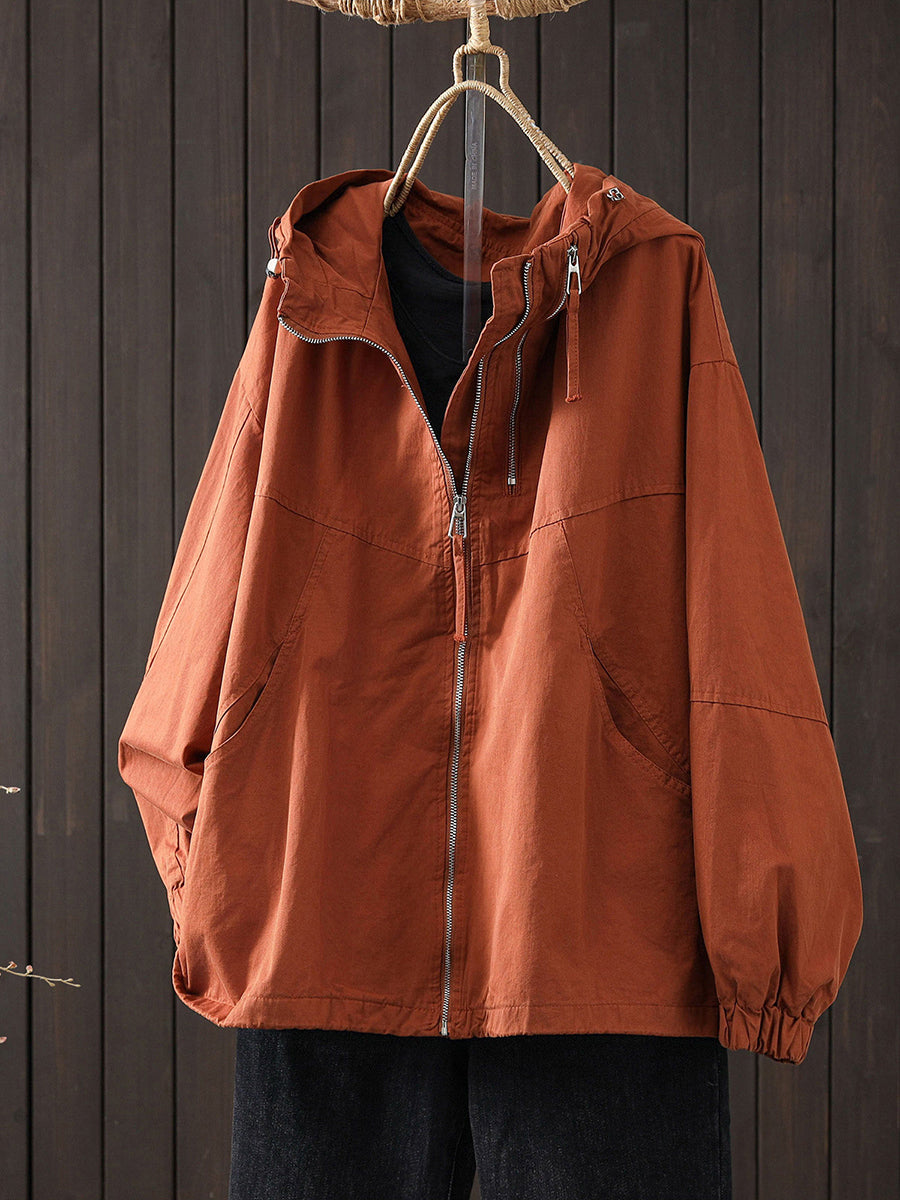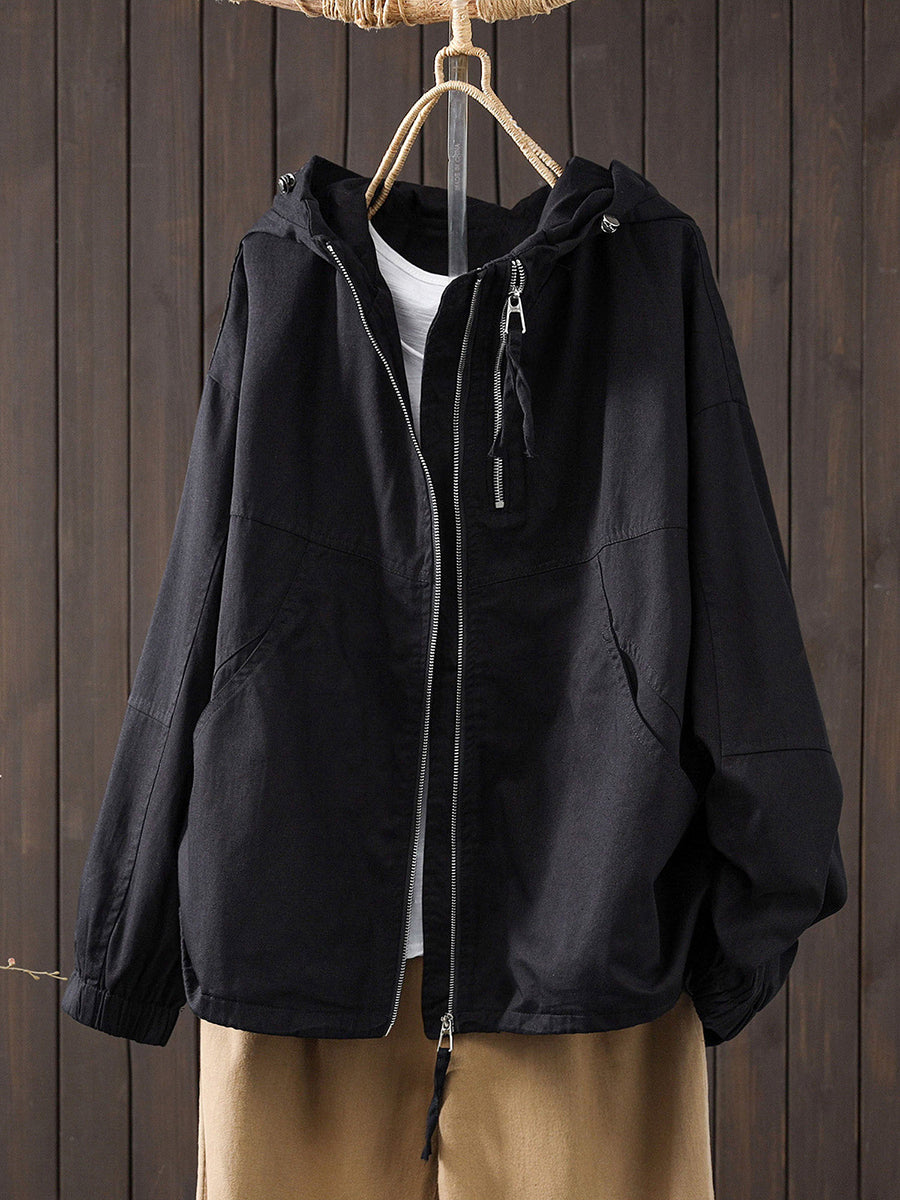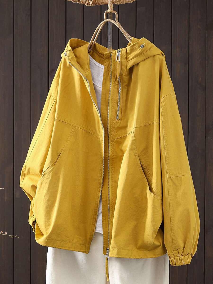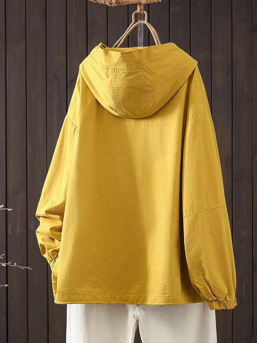 Women Spring Casual Pure Color Hooded 100%Cotton Coat