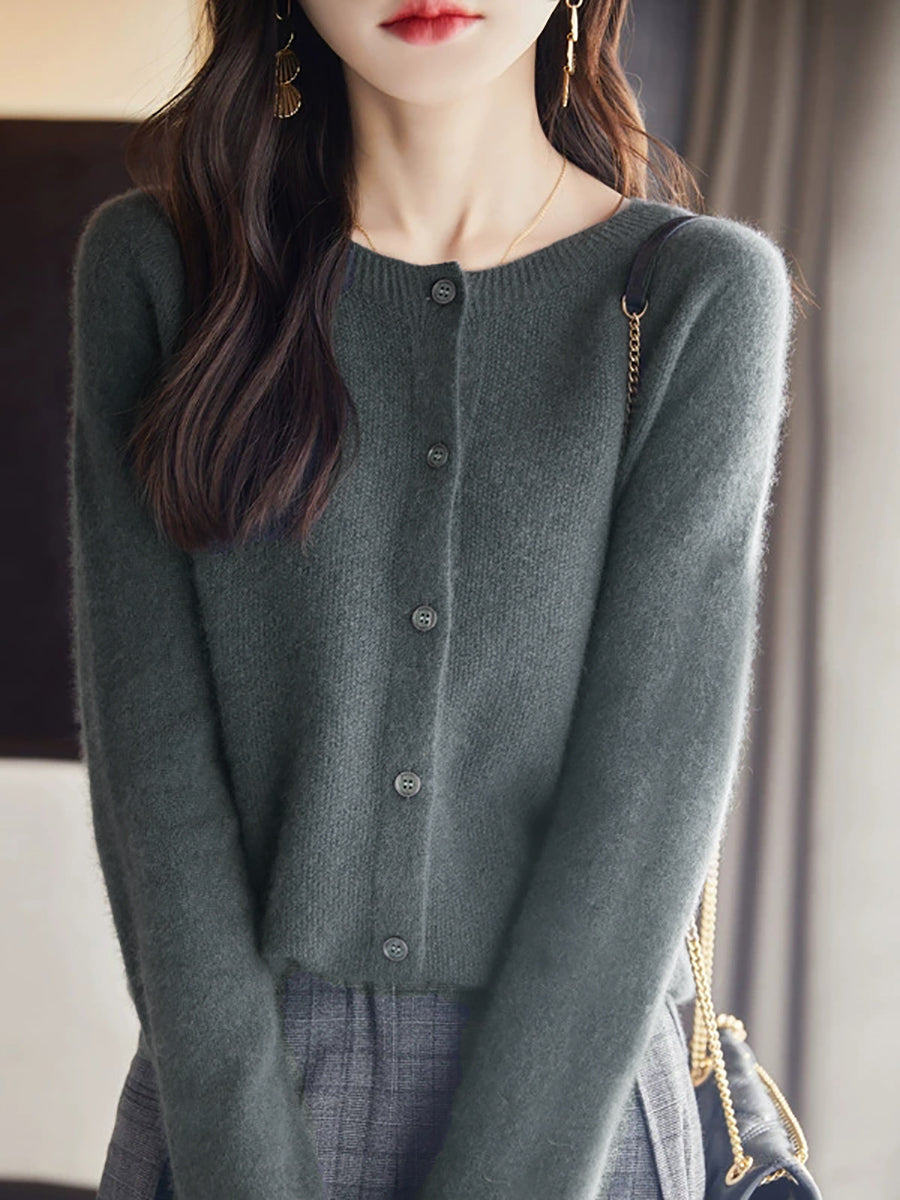 Women Spring Casual Pure Color O-Neck Sweater