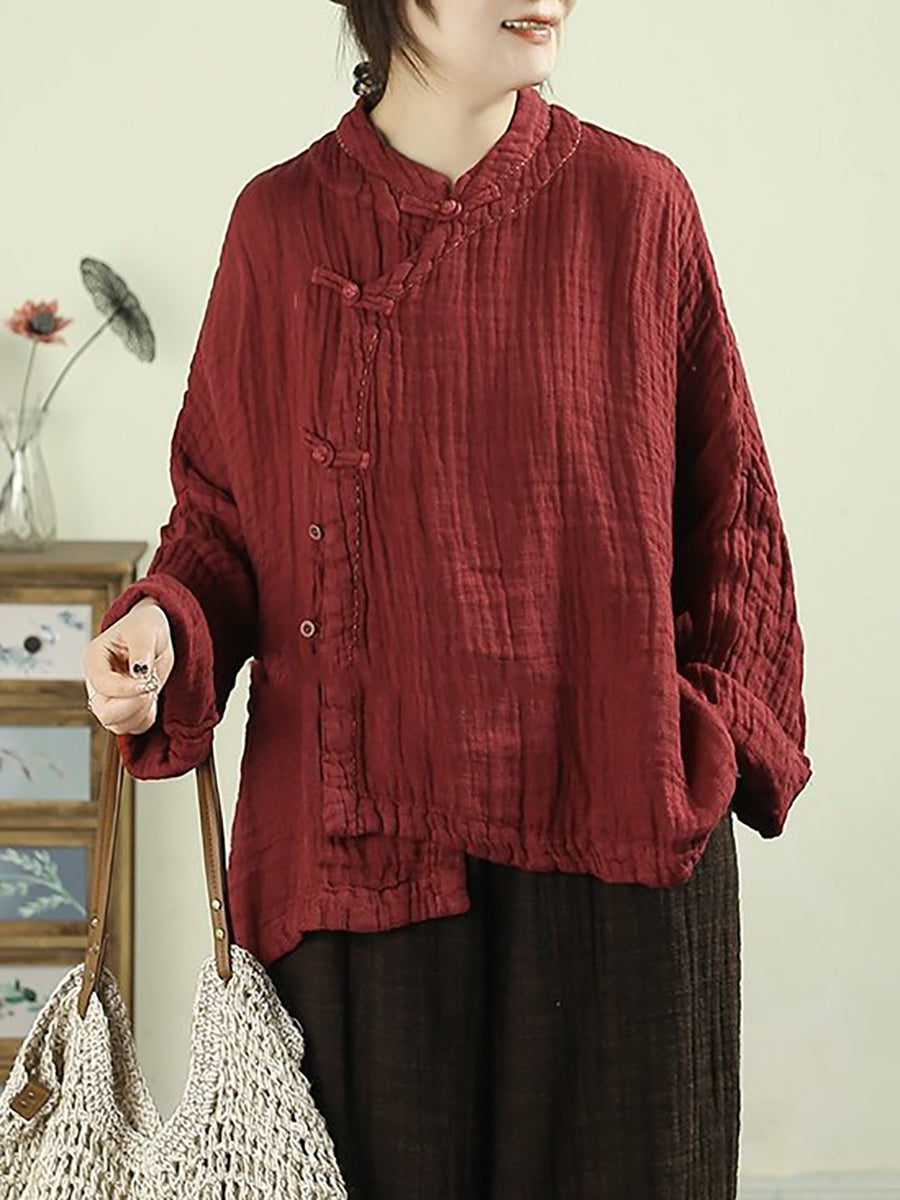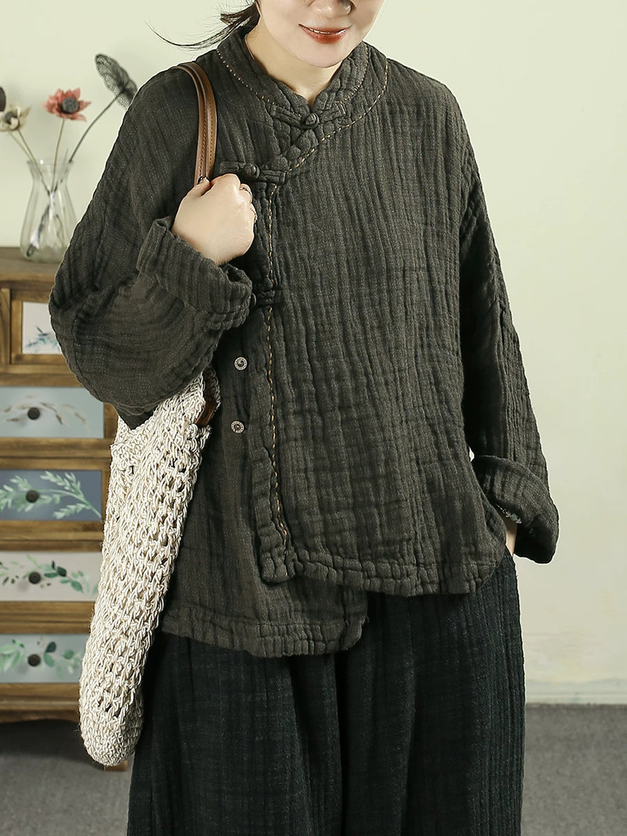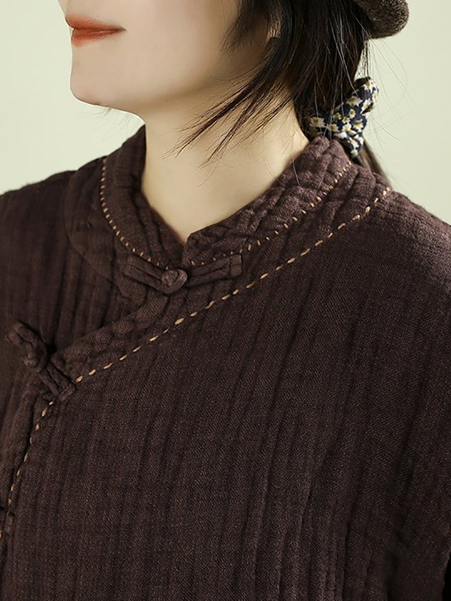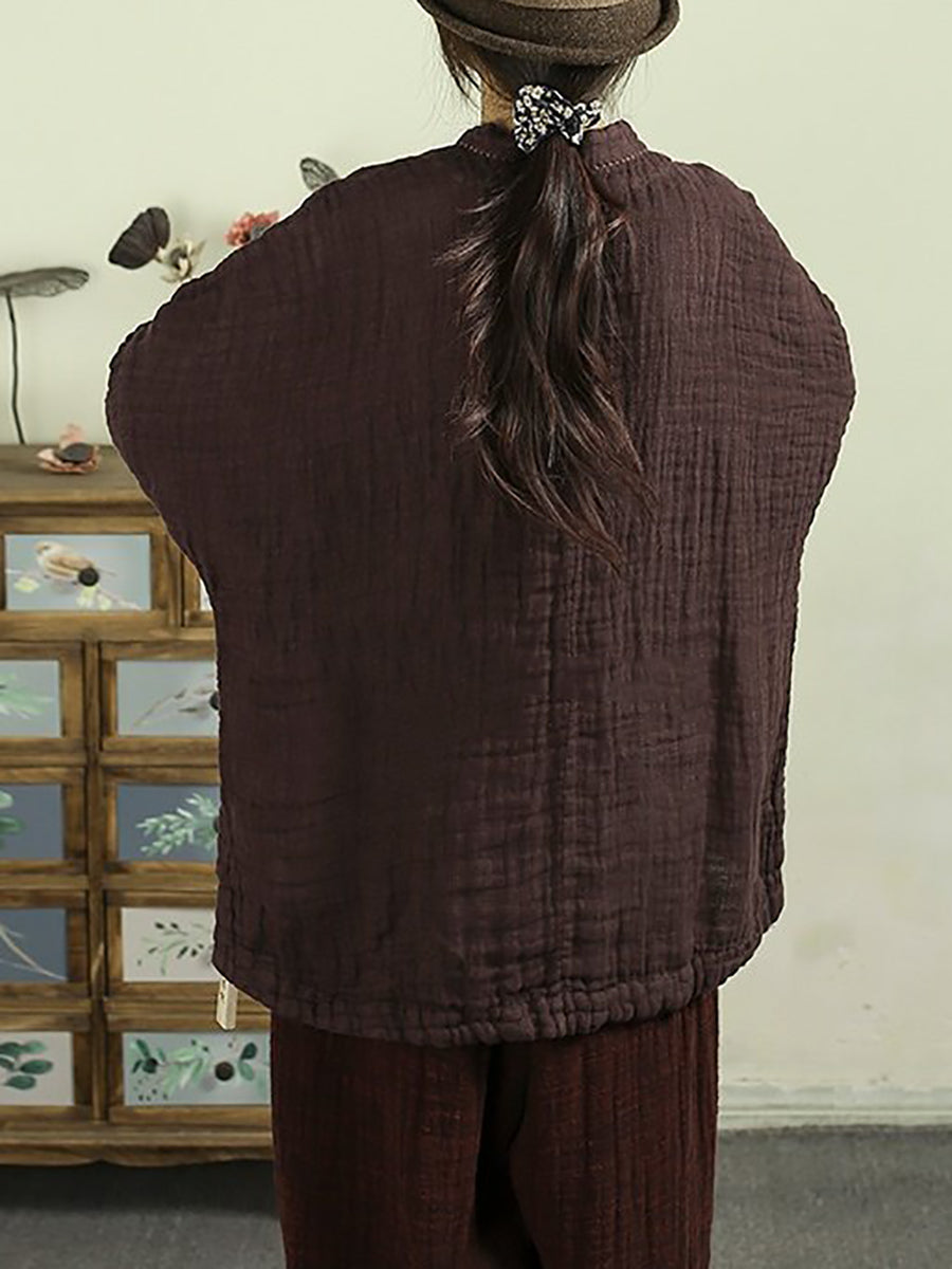 Women Spring Ethnic Pure Color Stand Collar 100%Linen Coat
