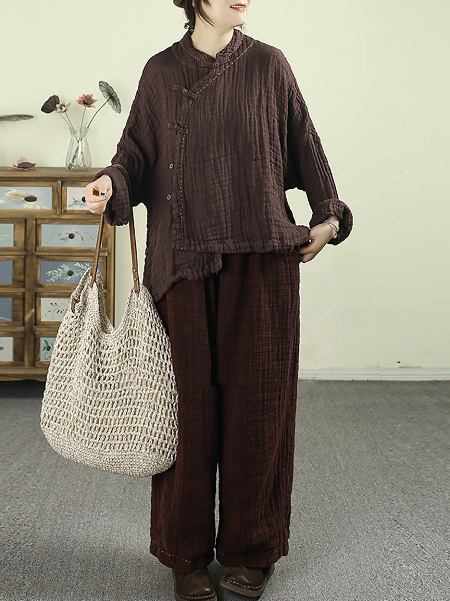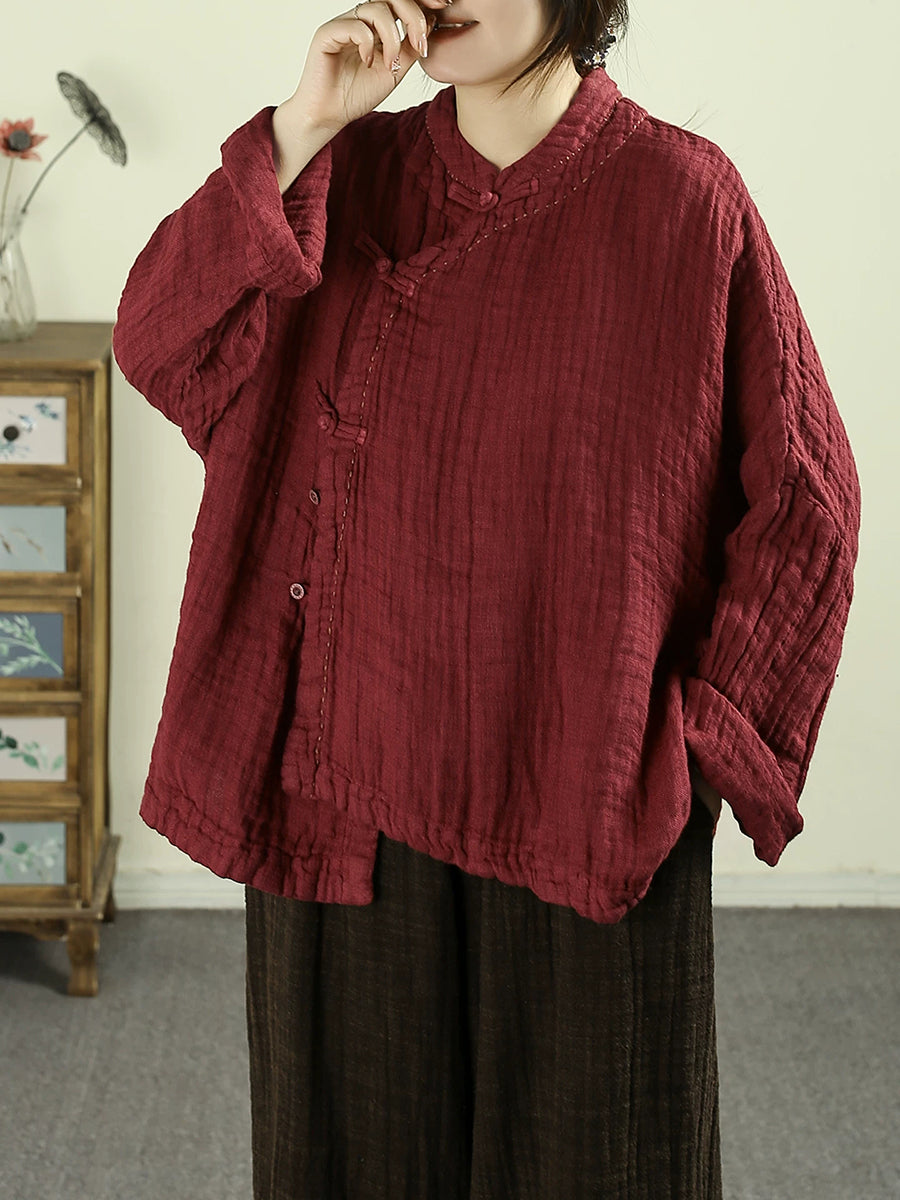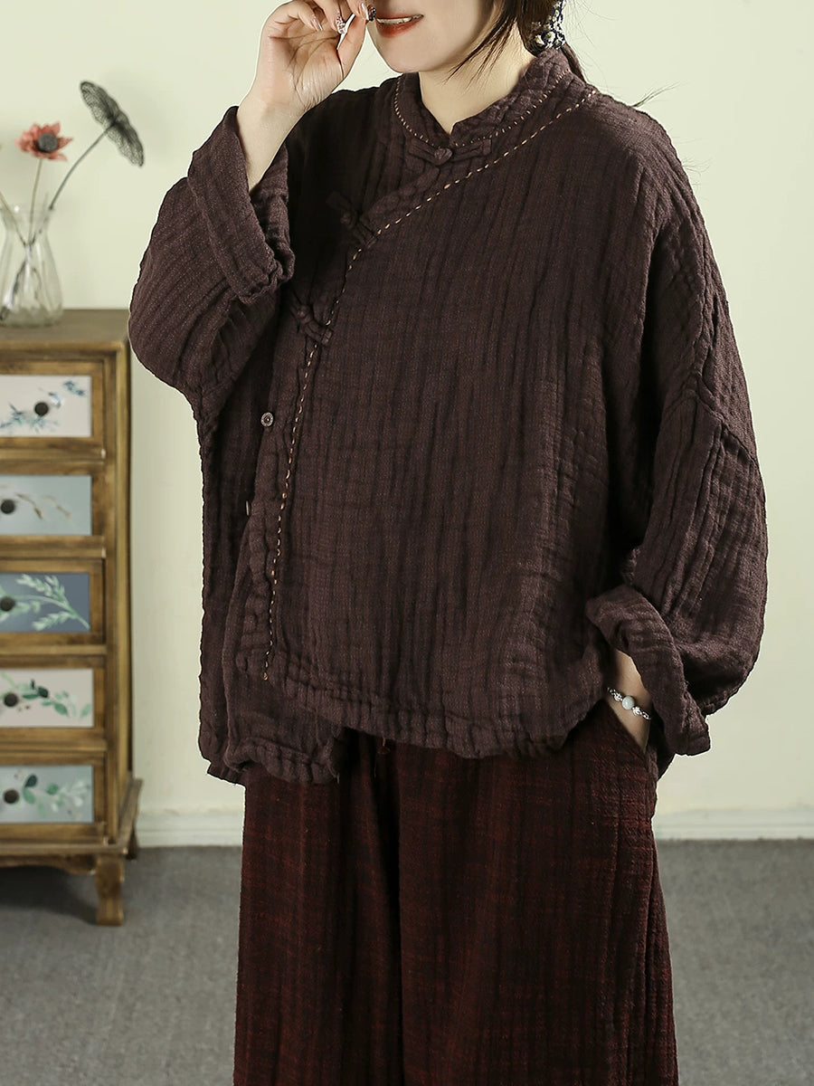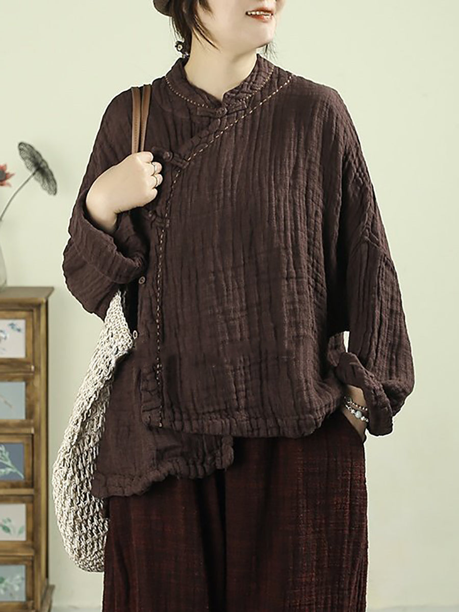 Women Spring Ethnic Pure Color Stand Collar 100%Linen Coat