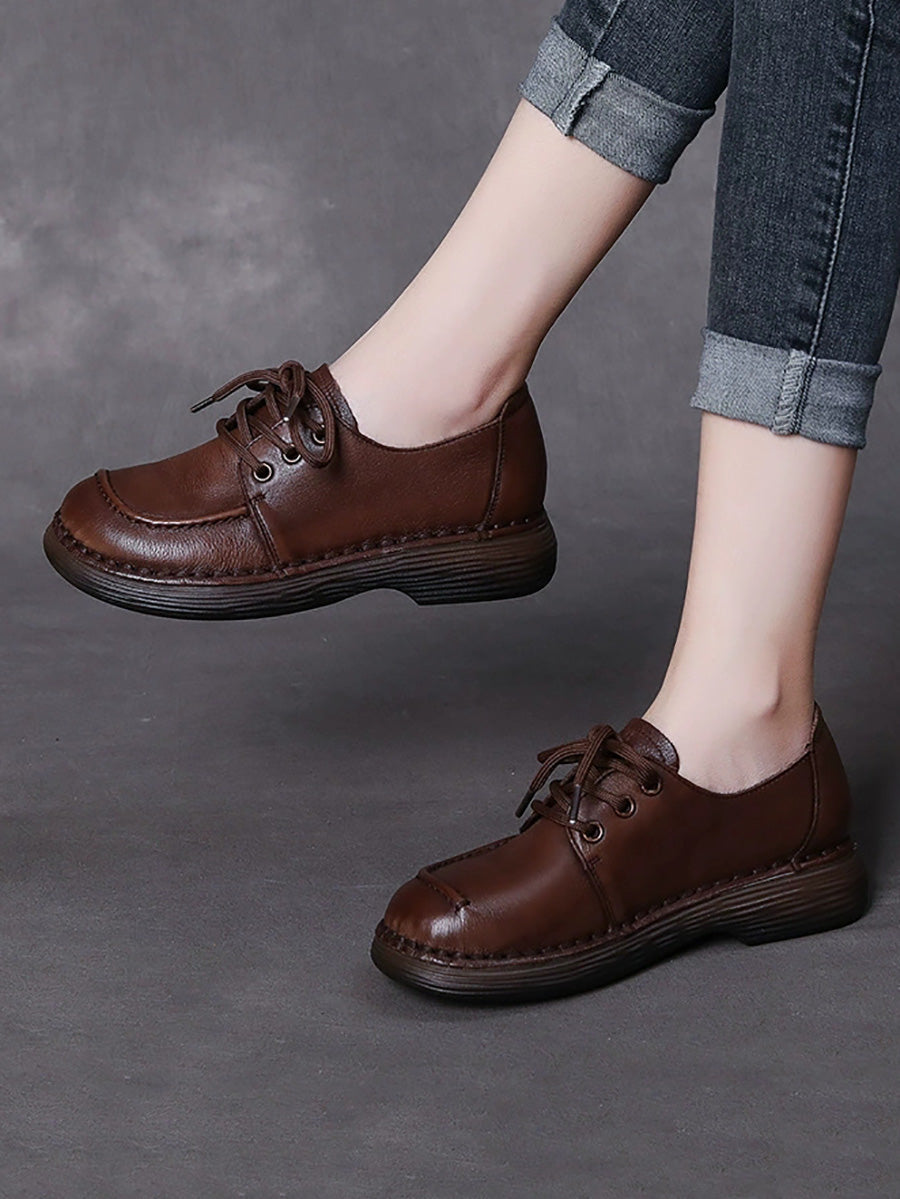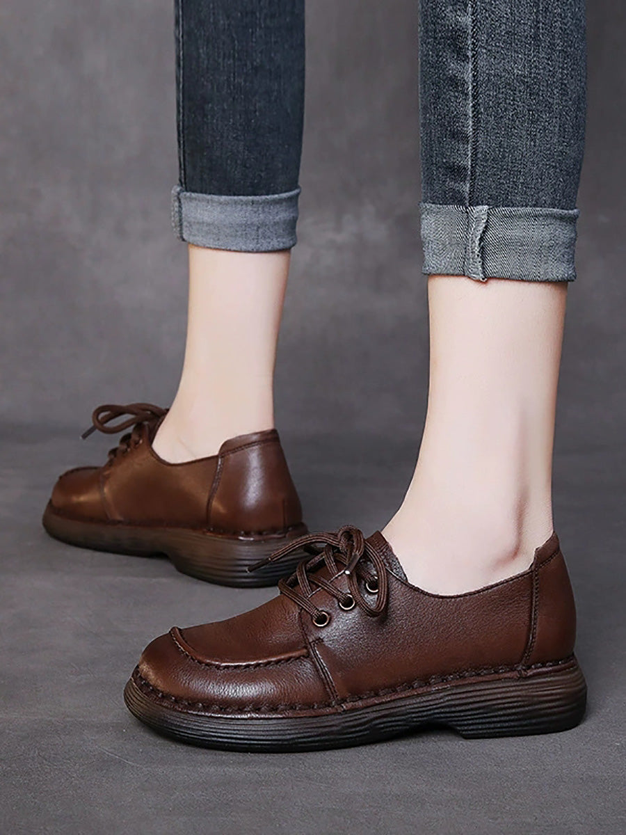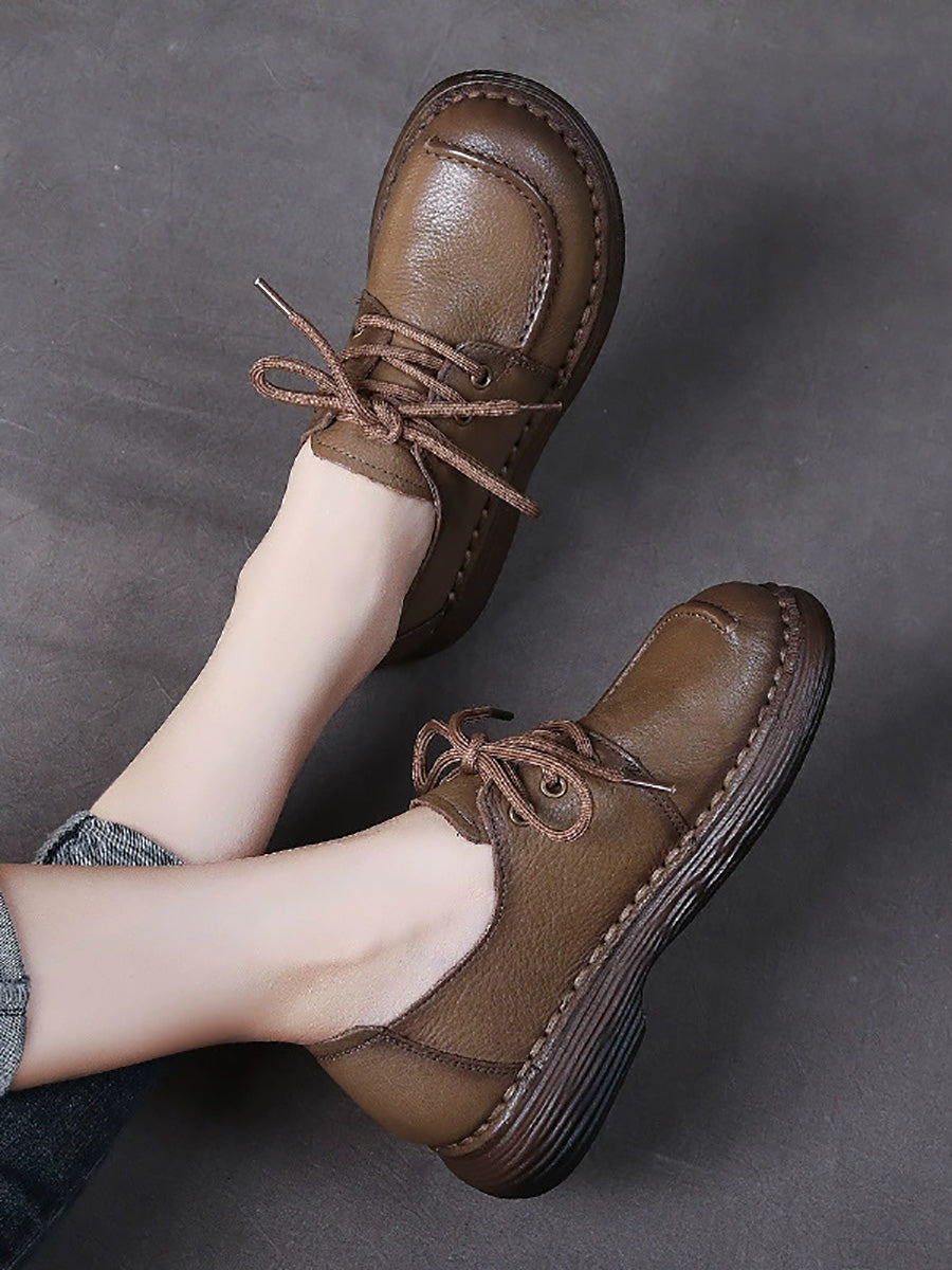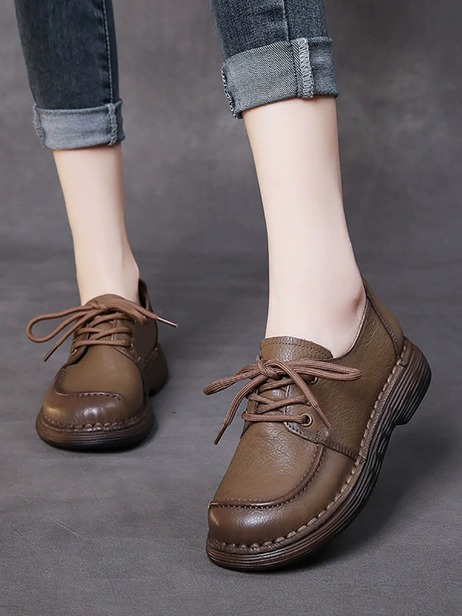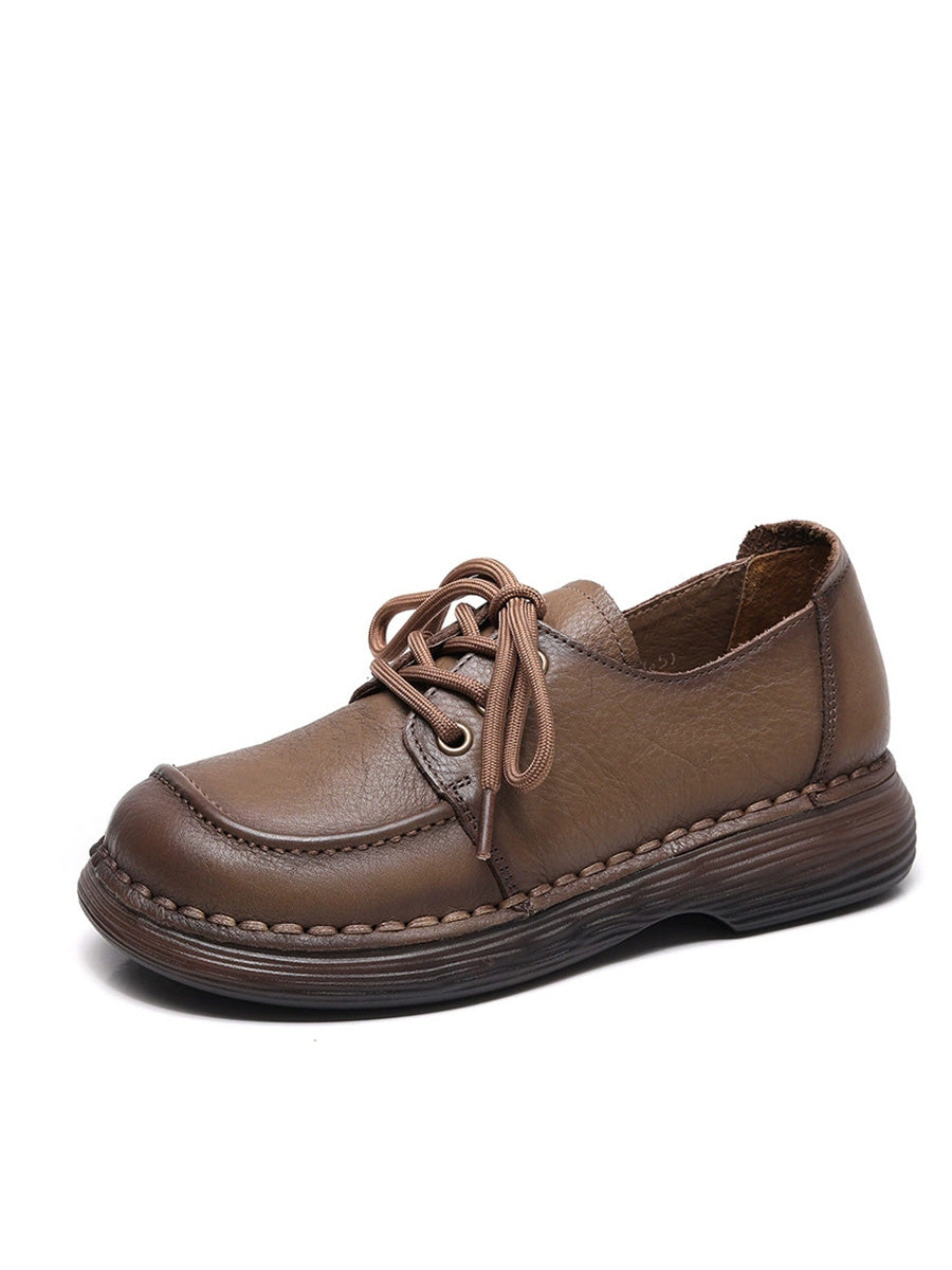 Women Spring Pure Color Genuine Leather Flat Shoes