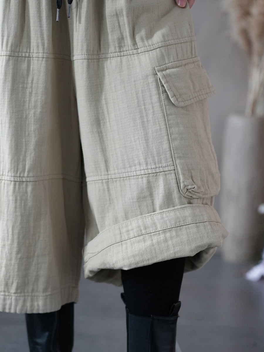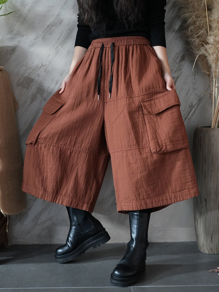 Women Spring Pure Color Wide-leg Capri Pants