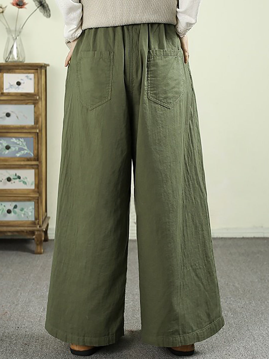 Women Spring Retro 100%Cotton Wide-leg Pants