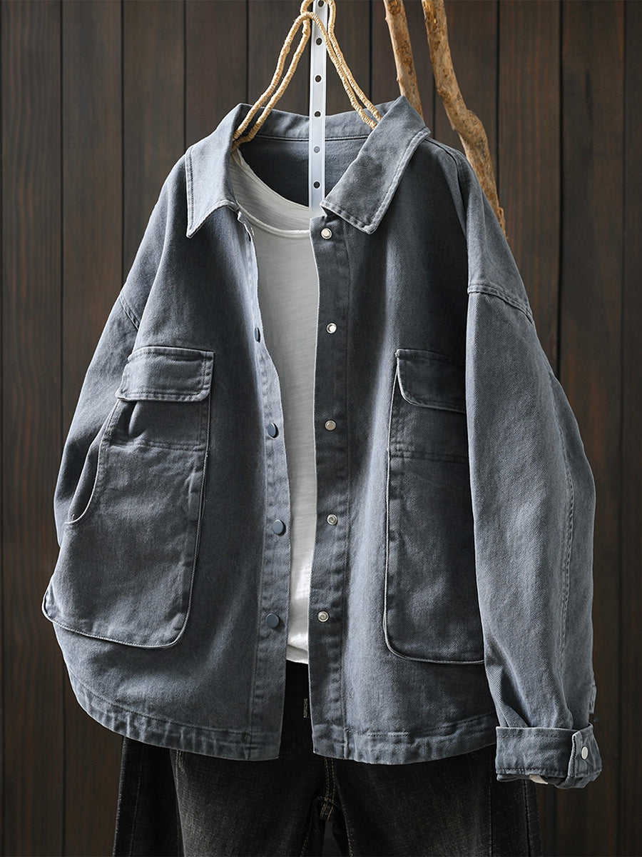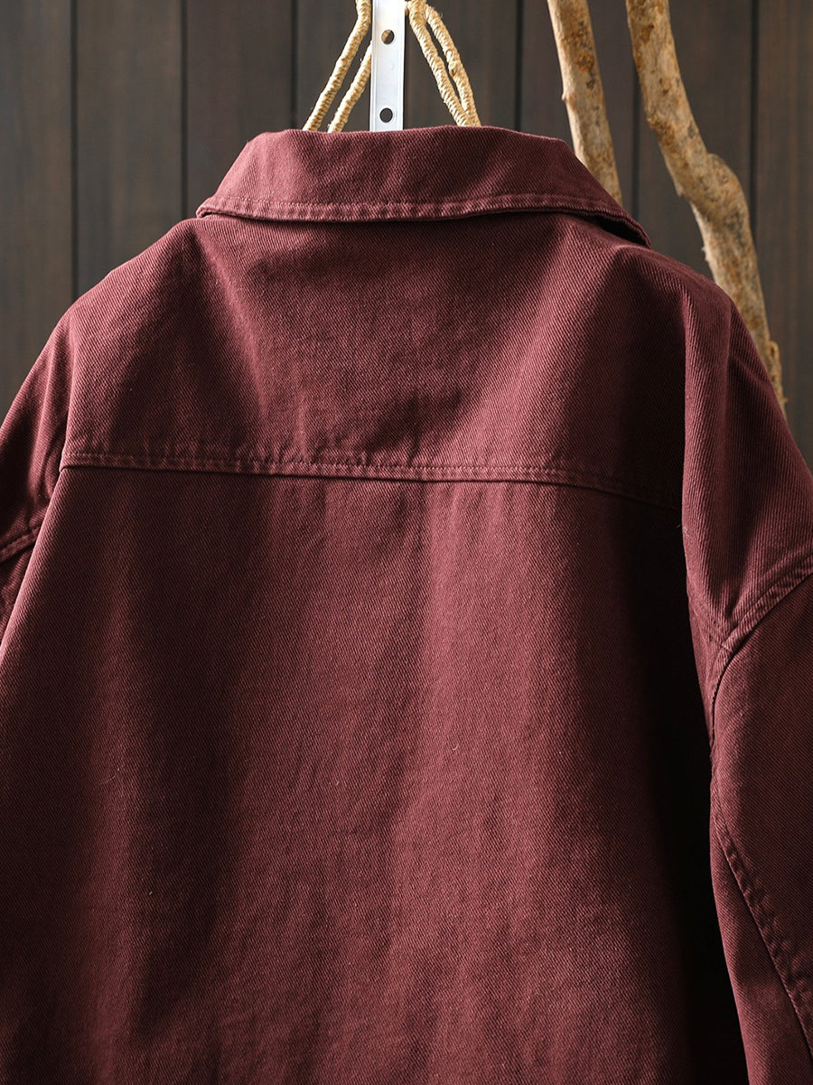 Women Spring Retro Pure Color Cotton Jacket