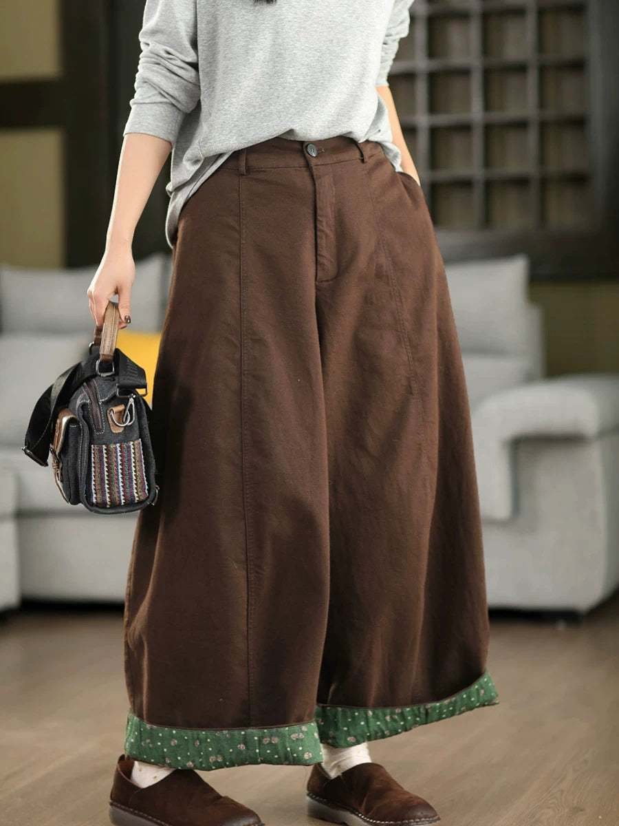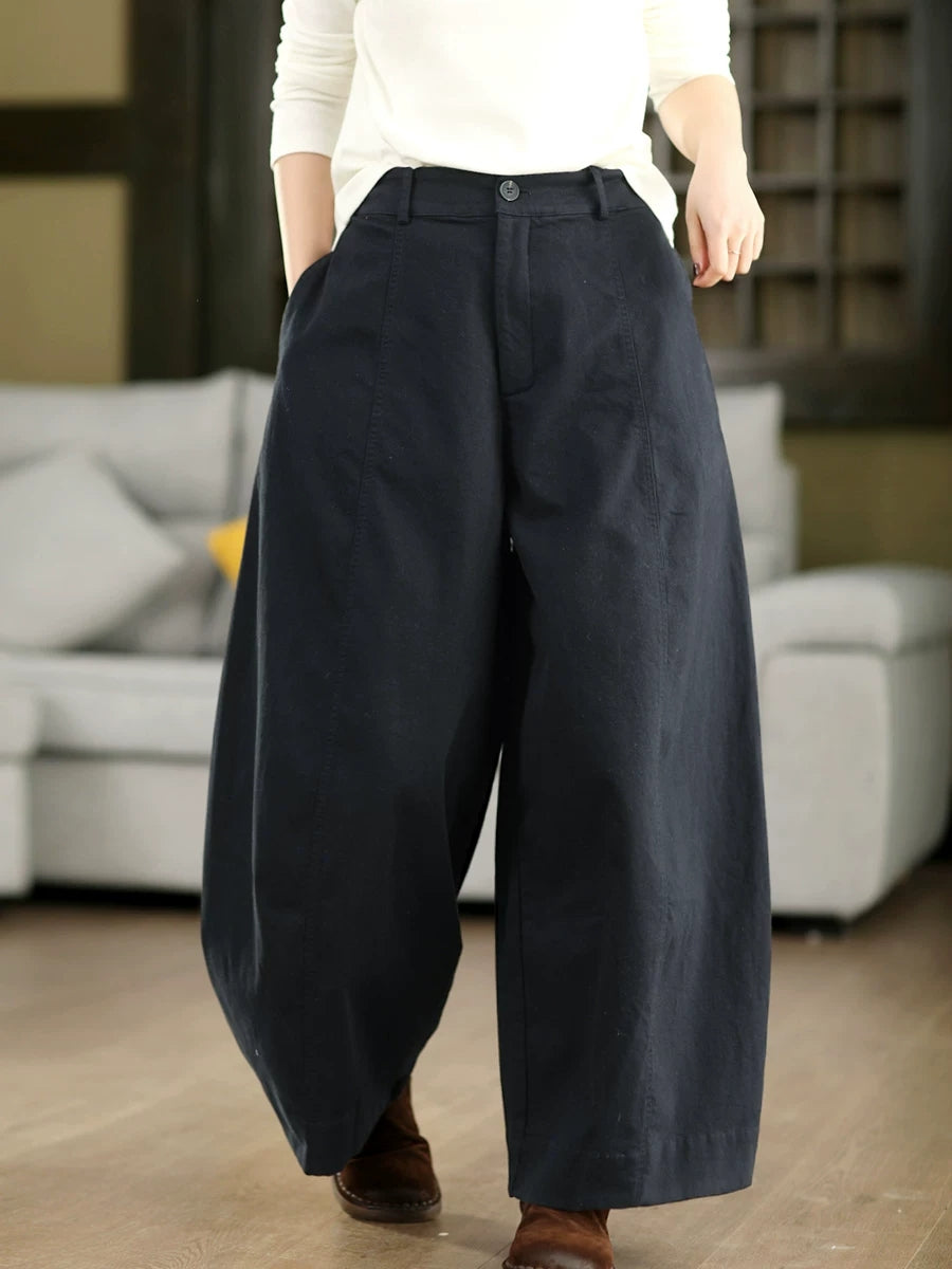 Women Spring Retro Wide-leg Cotton Pants
