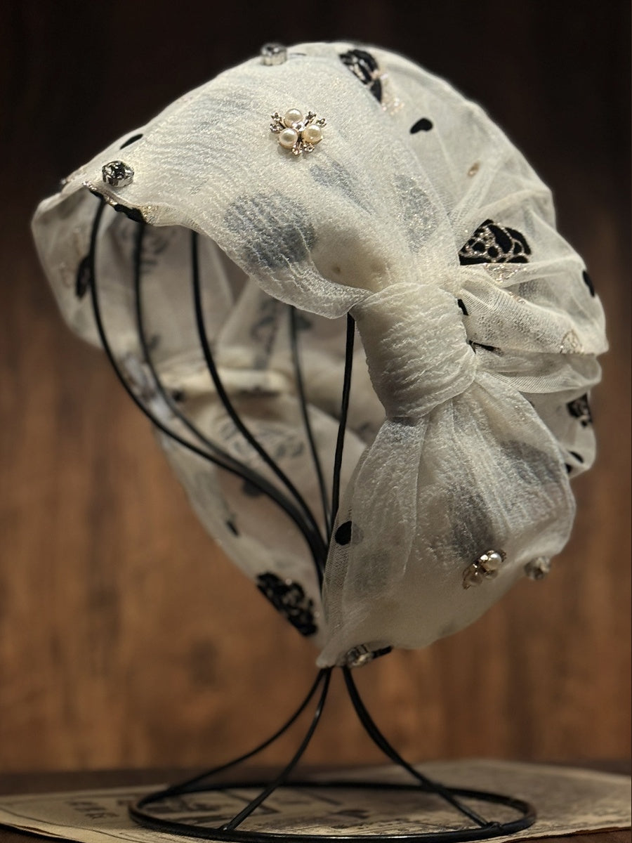 Women Spring Summer Rhinestone Floral Beaded Mesh Beanie Cap
