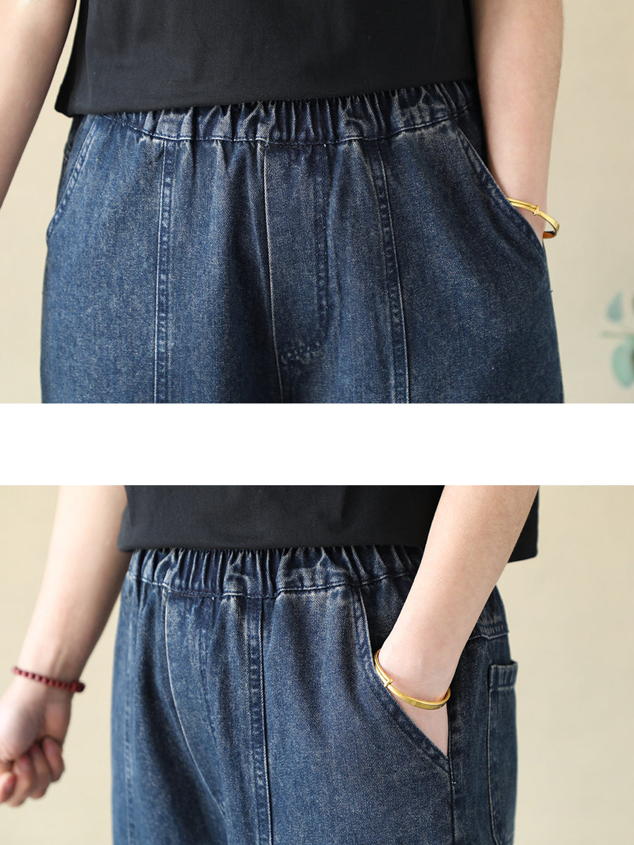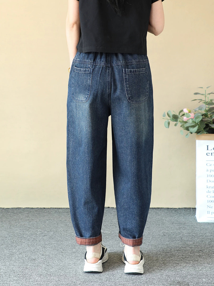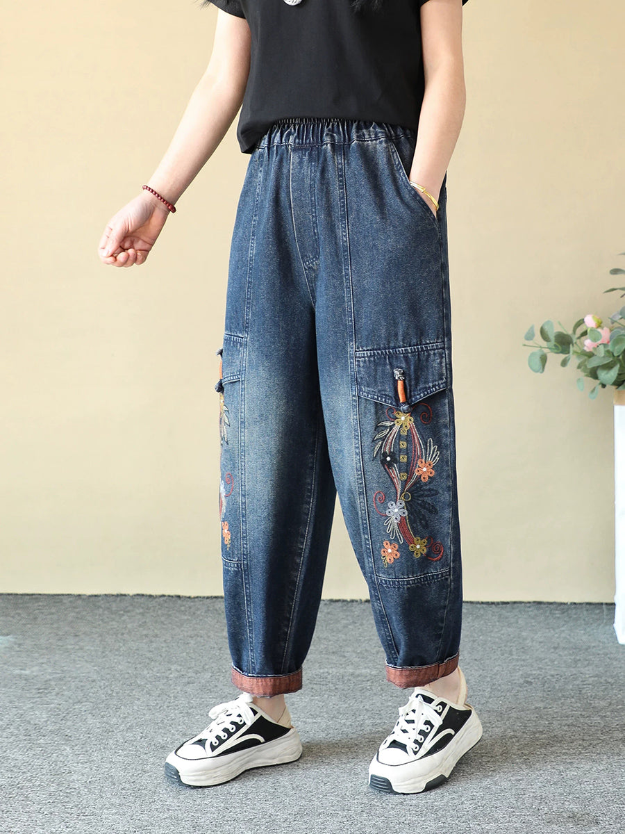Women Spring Vintage Denim Embroidery Harem Jeans