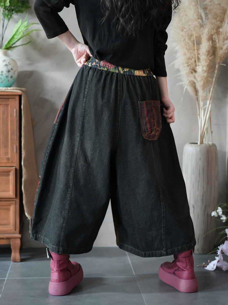 Women Spring Vintage Patchwork Wide-leg Pants