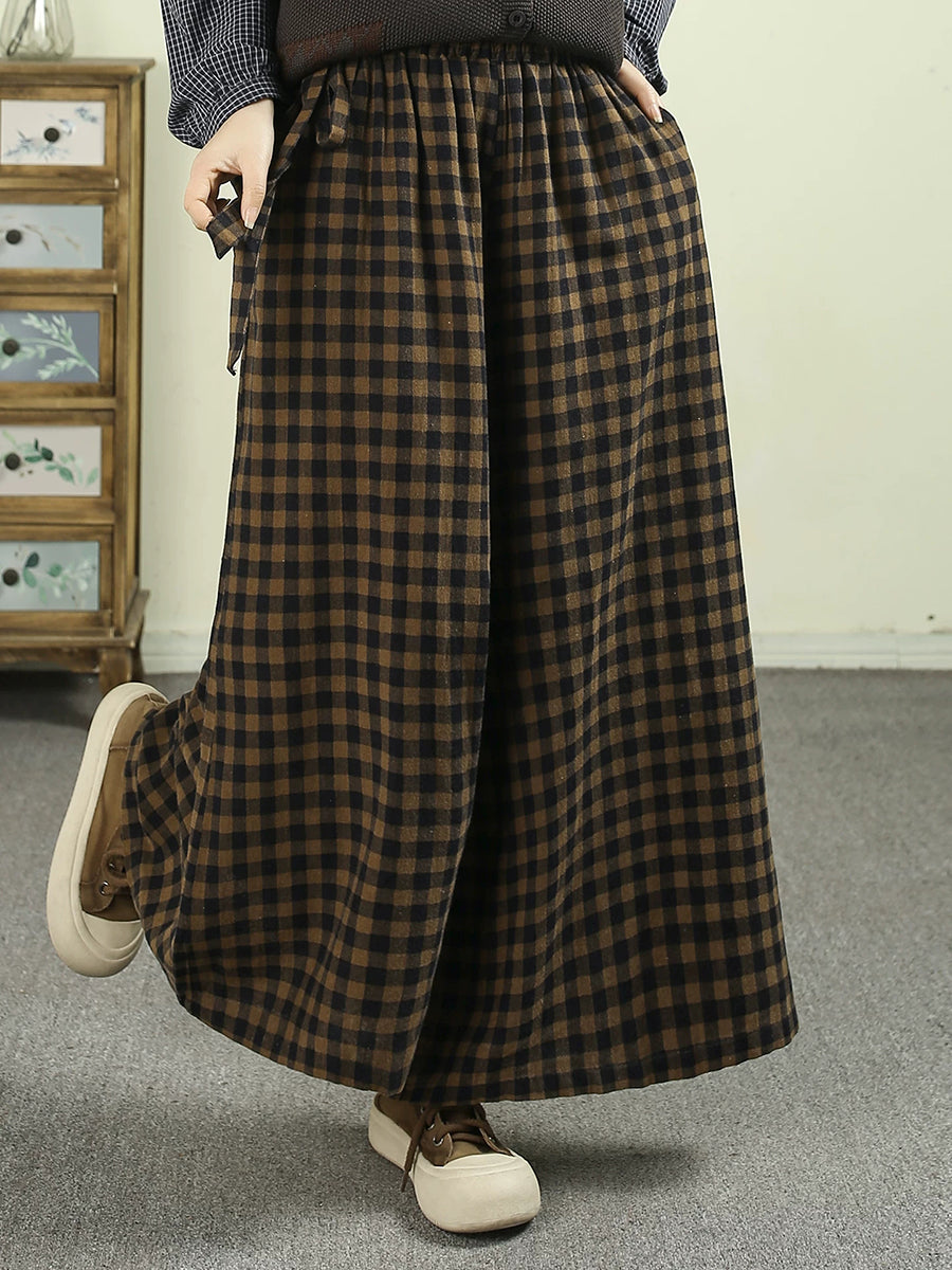 Women Spring Vintage Plaid Wide-leg Pants