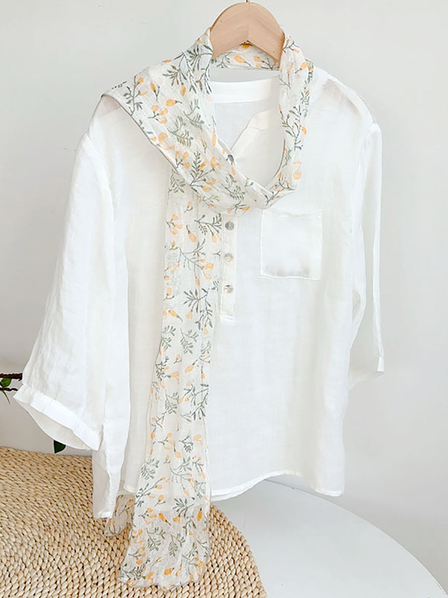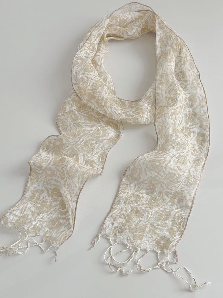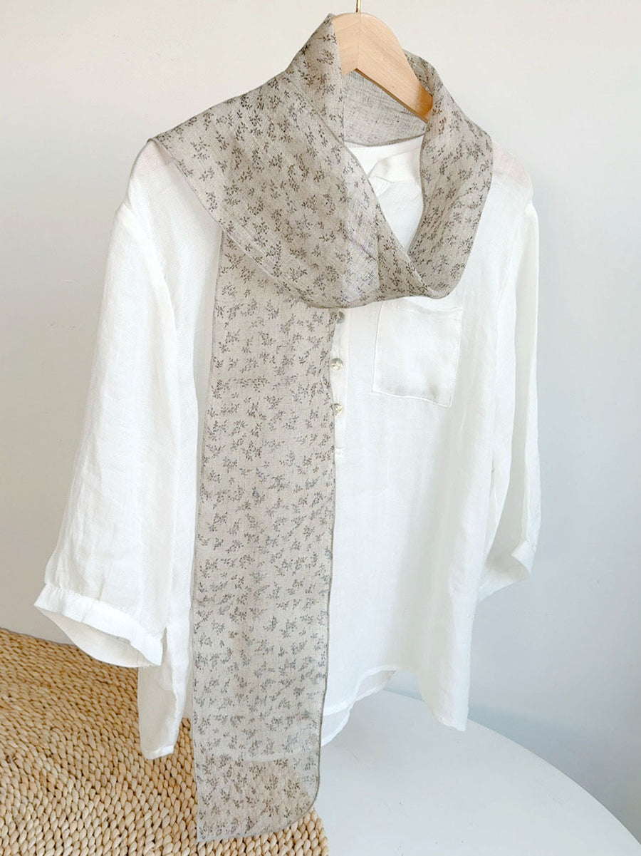 Women Summer Artsy Flower Thin Linen Scarf