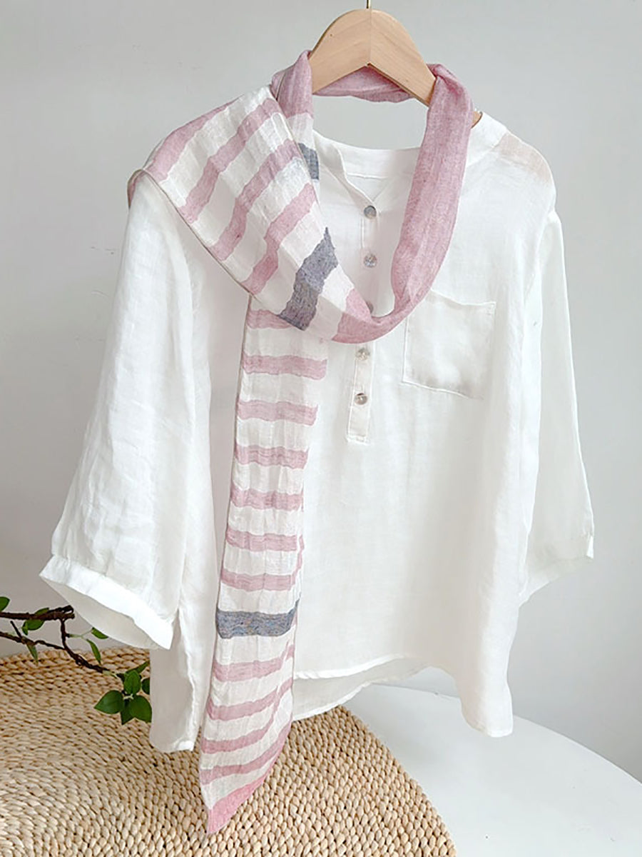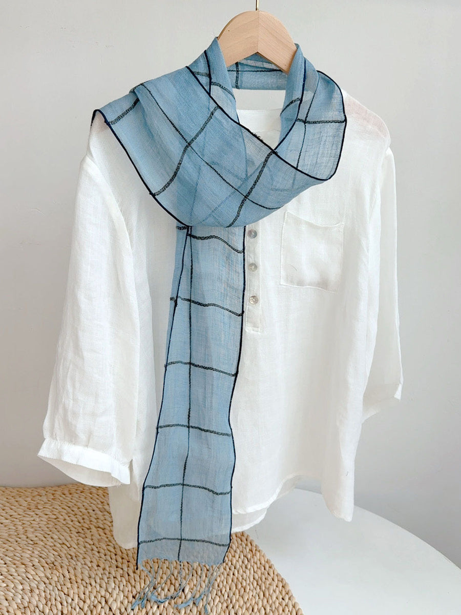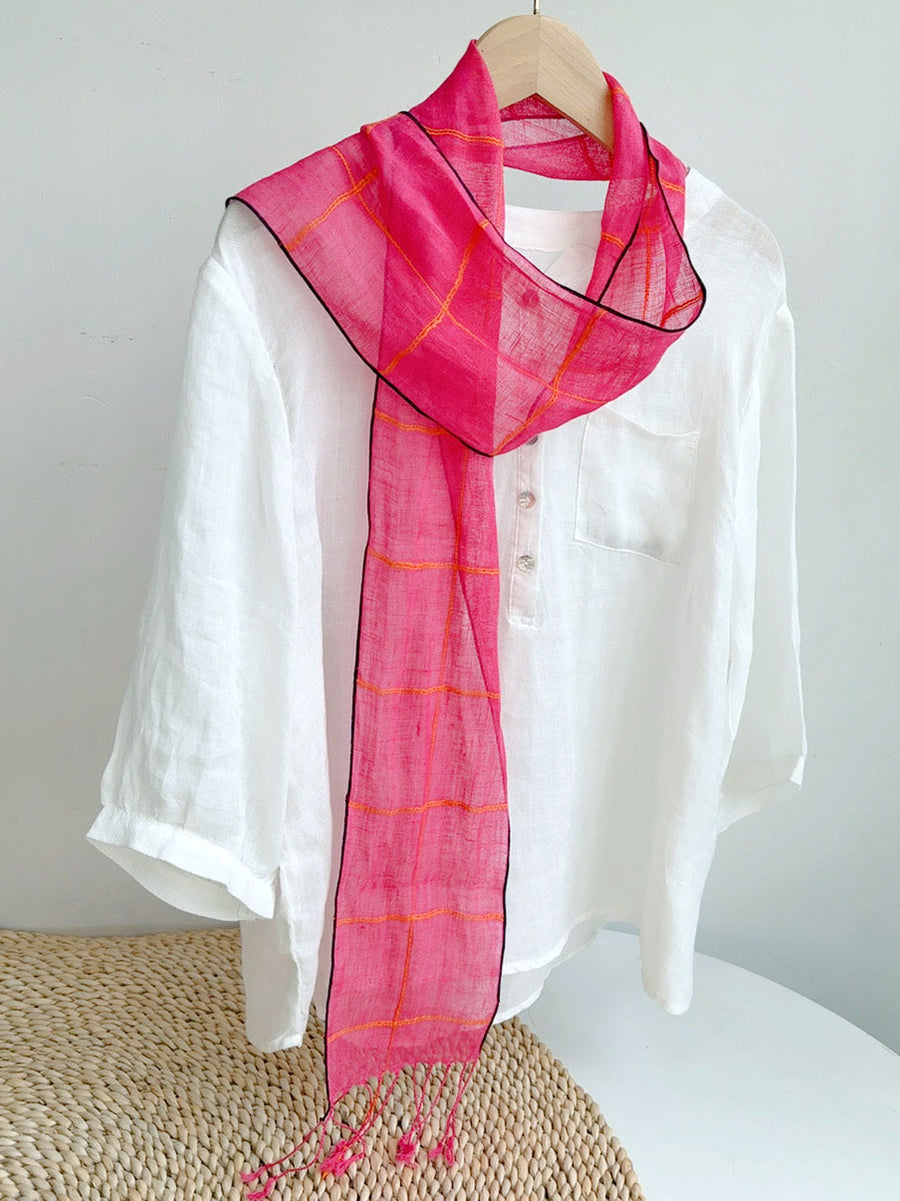 Women Summer Artsy Flower Thin Linen Scarf