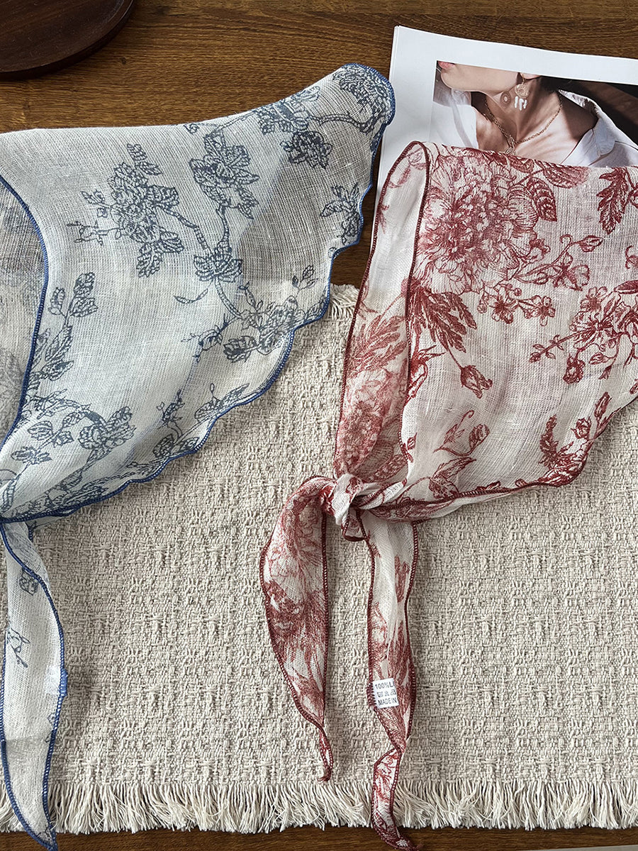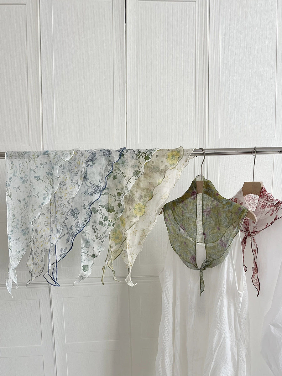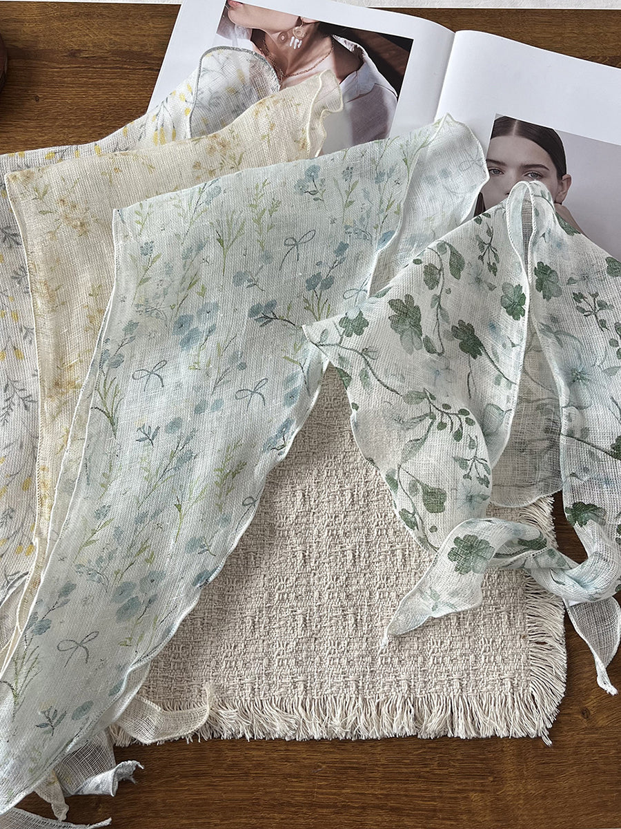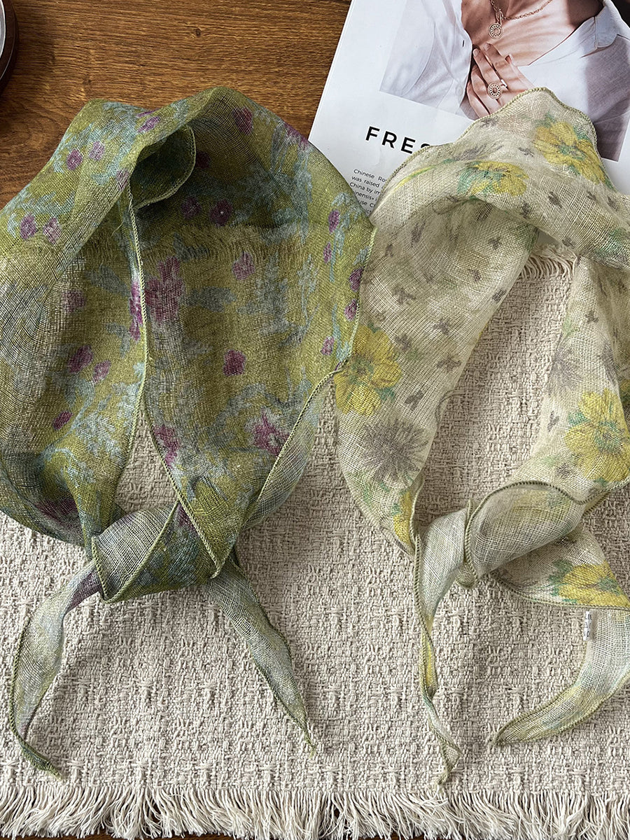 Women Summer Artsy Flower Triangle Scarf
