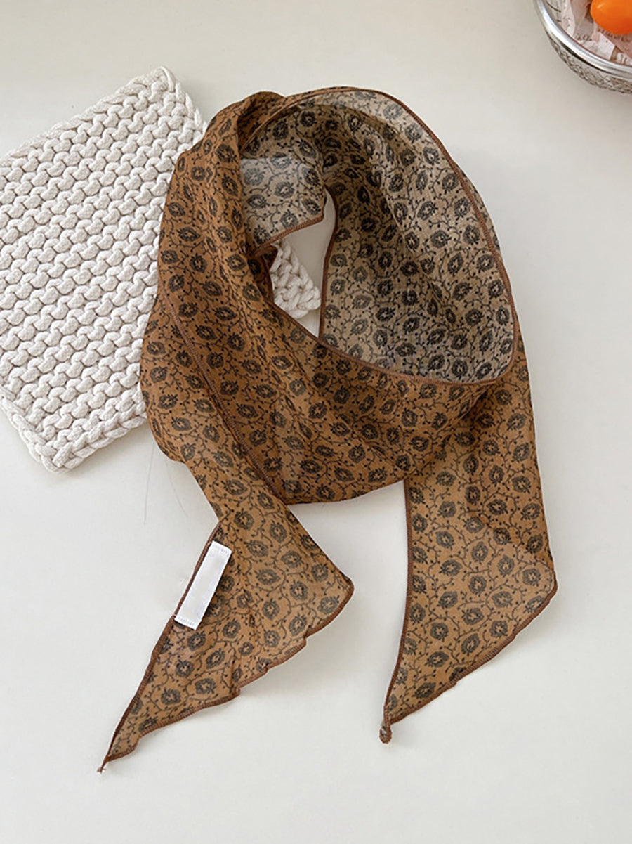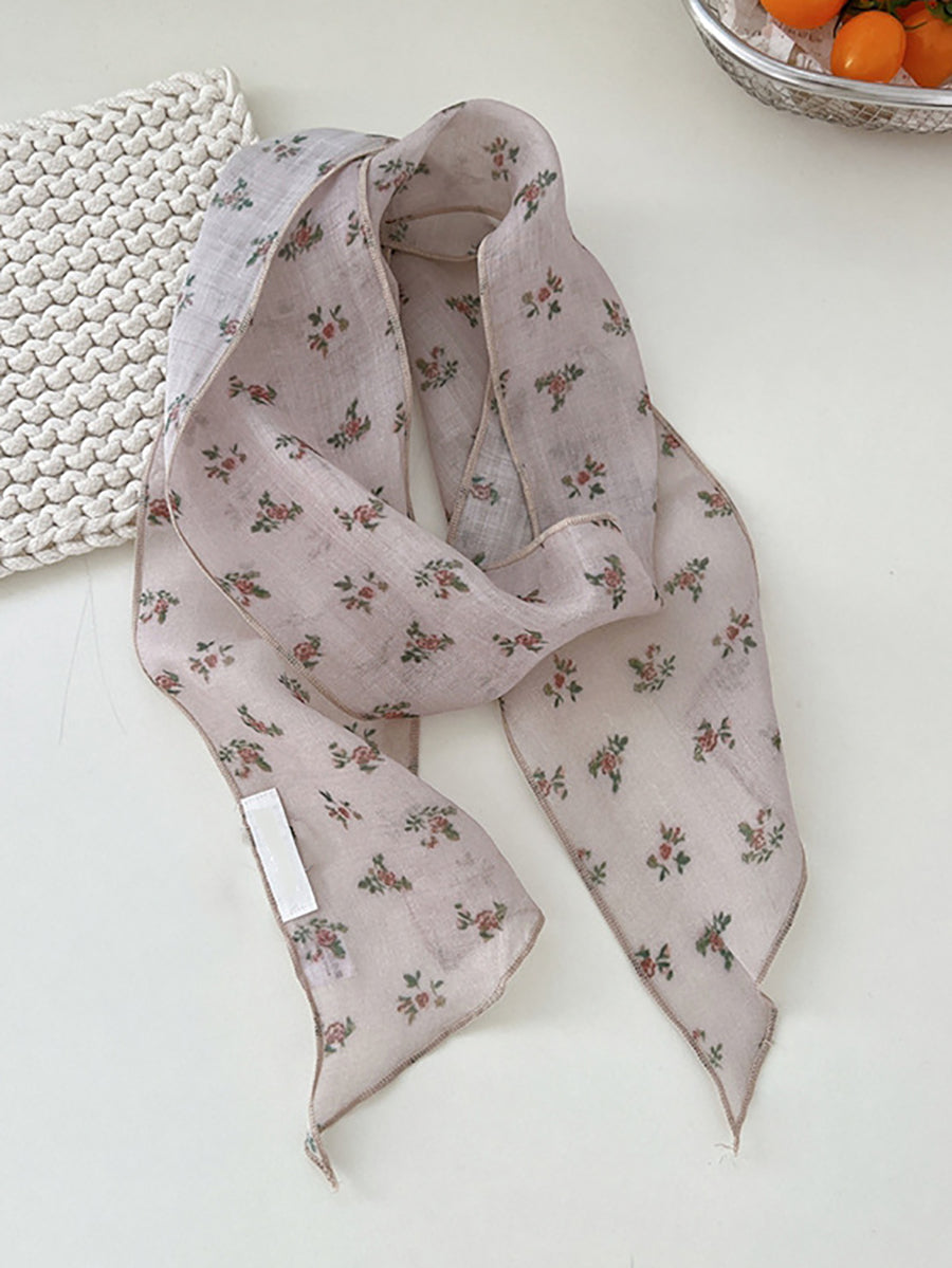 Women Summer Artsy Plaid Floral Thin Scarf