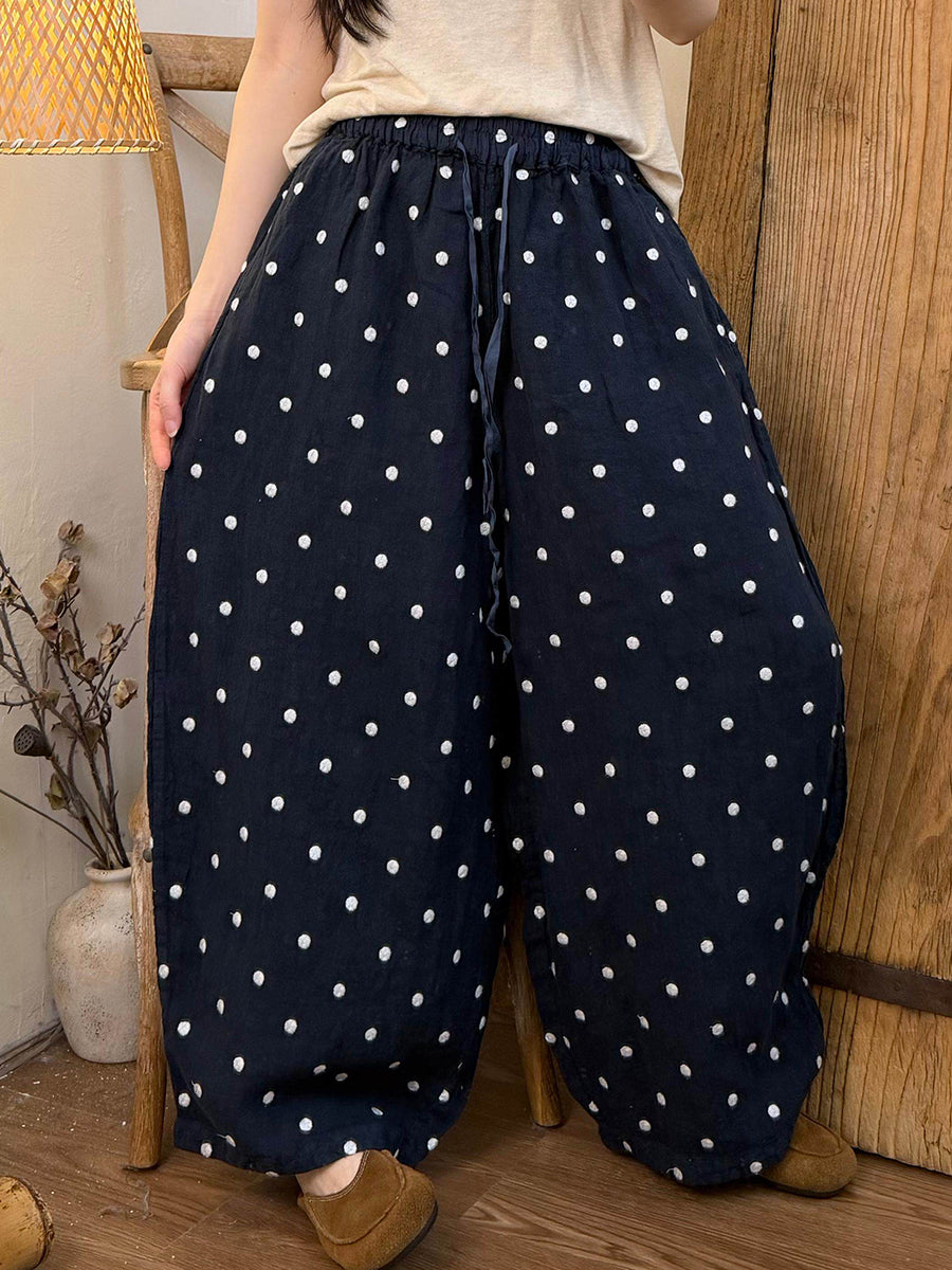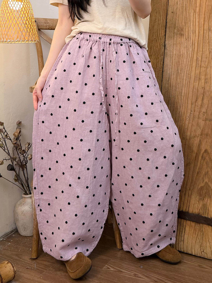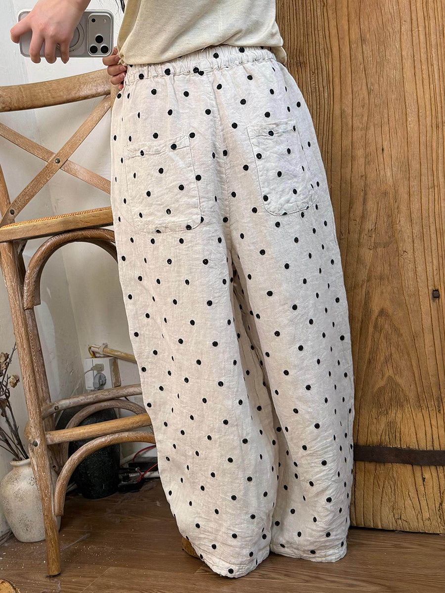 Women Summer Casual Dot Linen Wide-leg Pants
