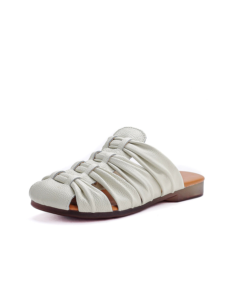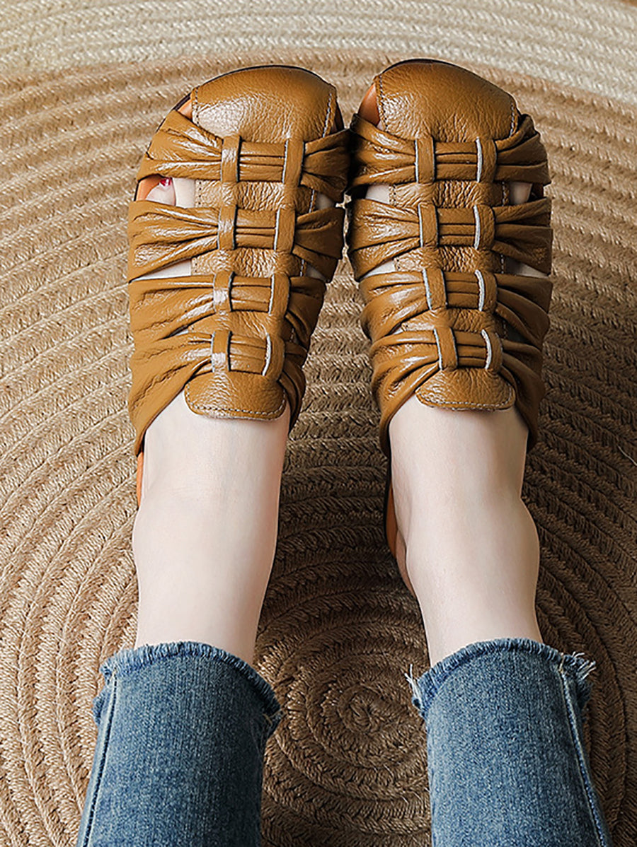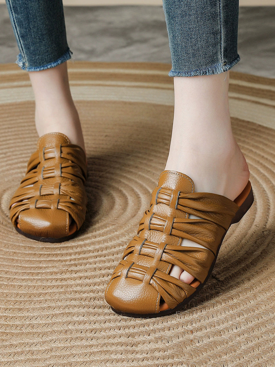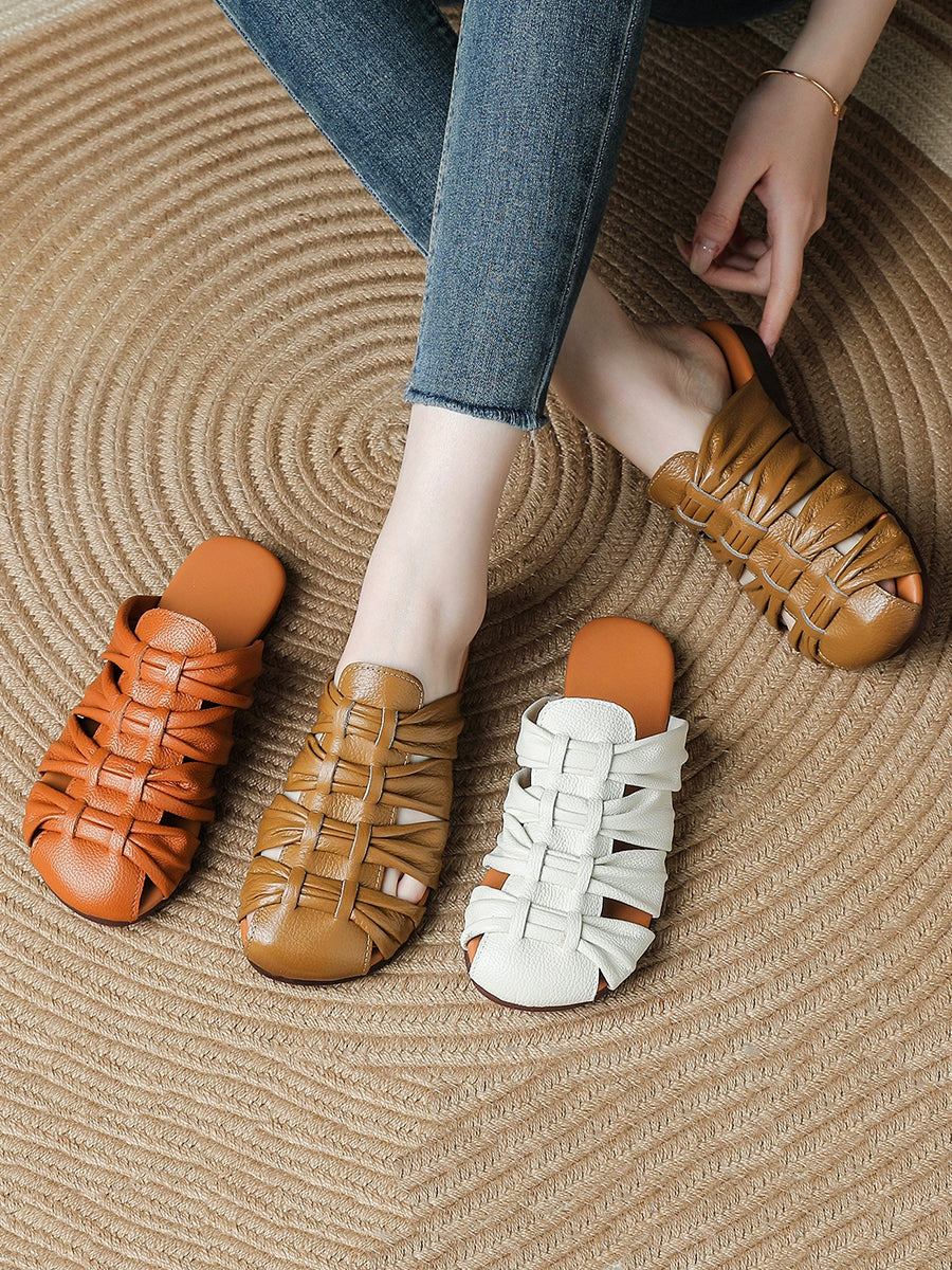 Women Summer Casual Genuine Leather Weave Slippers