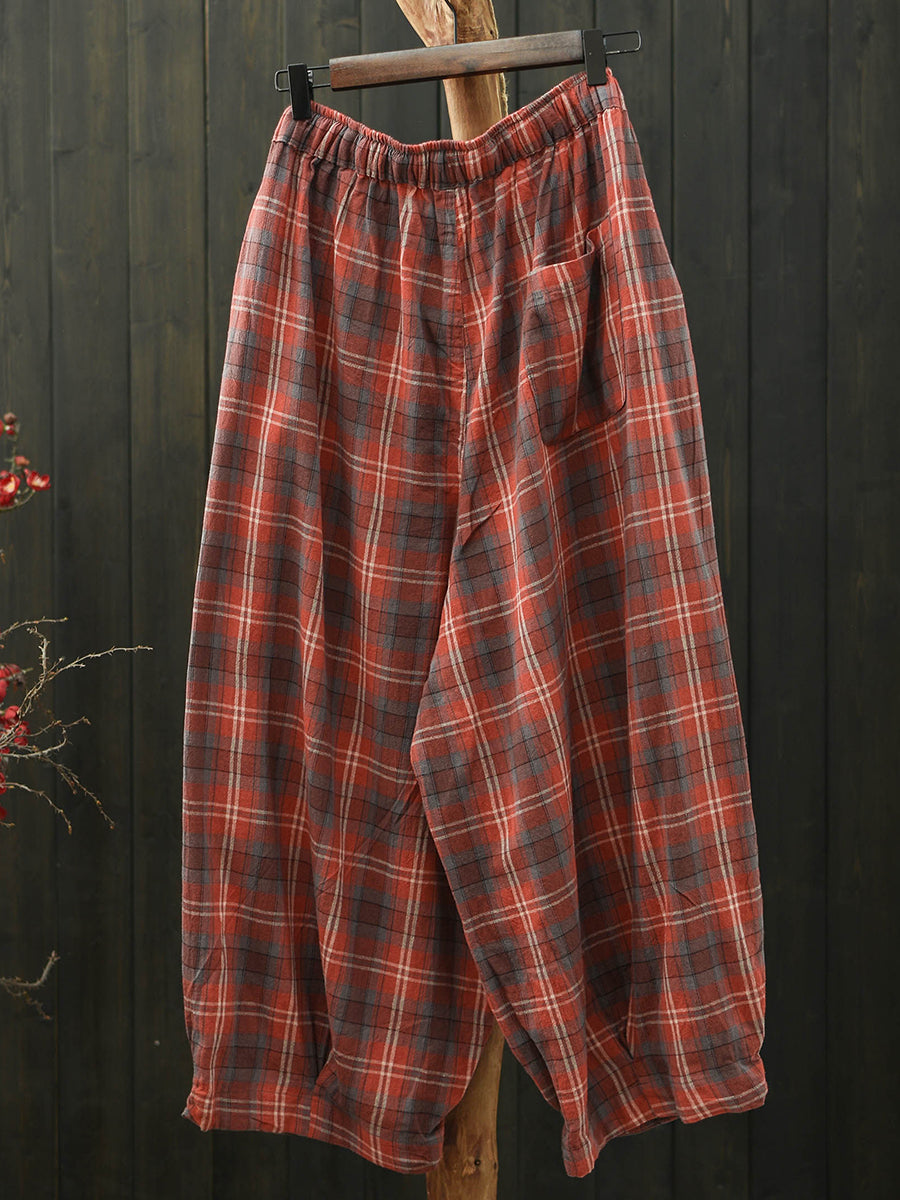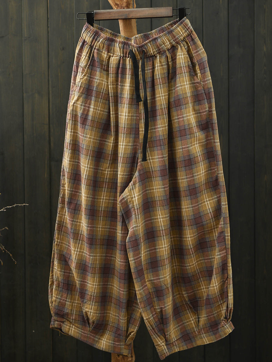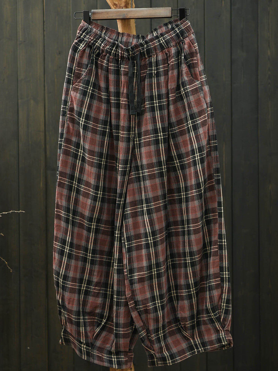 Plus Size Women Summer Casual Plaid Cotton Bloomers
