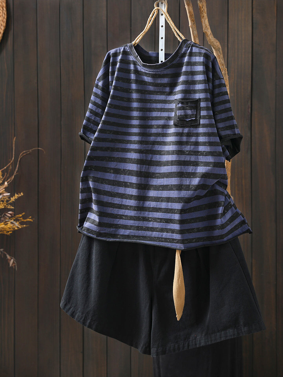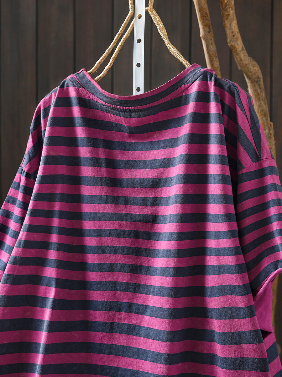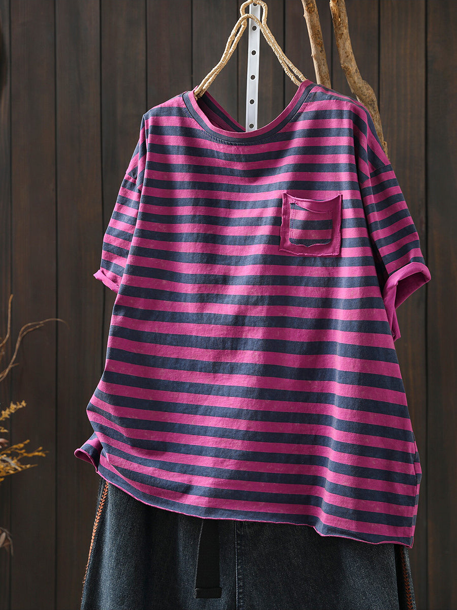 Women Summer Casual Stripe O-Neck T-Shirt