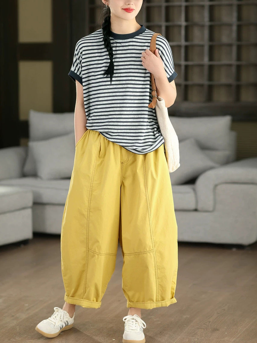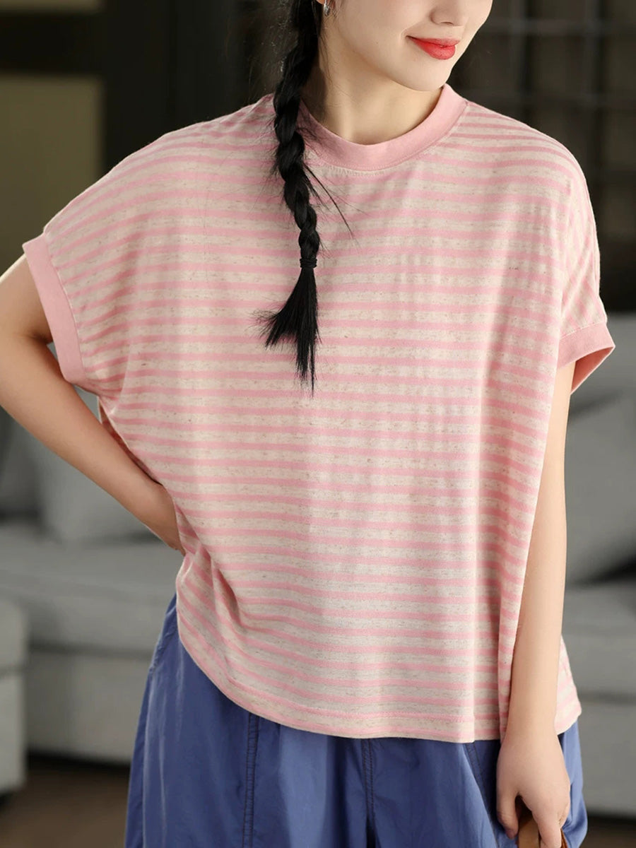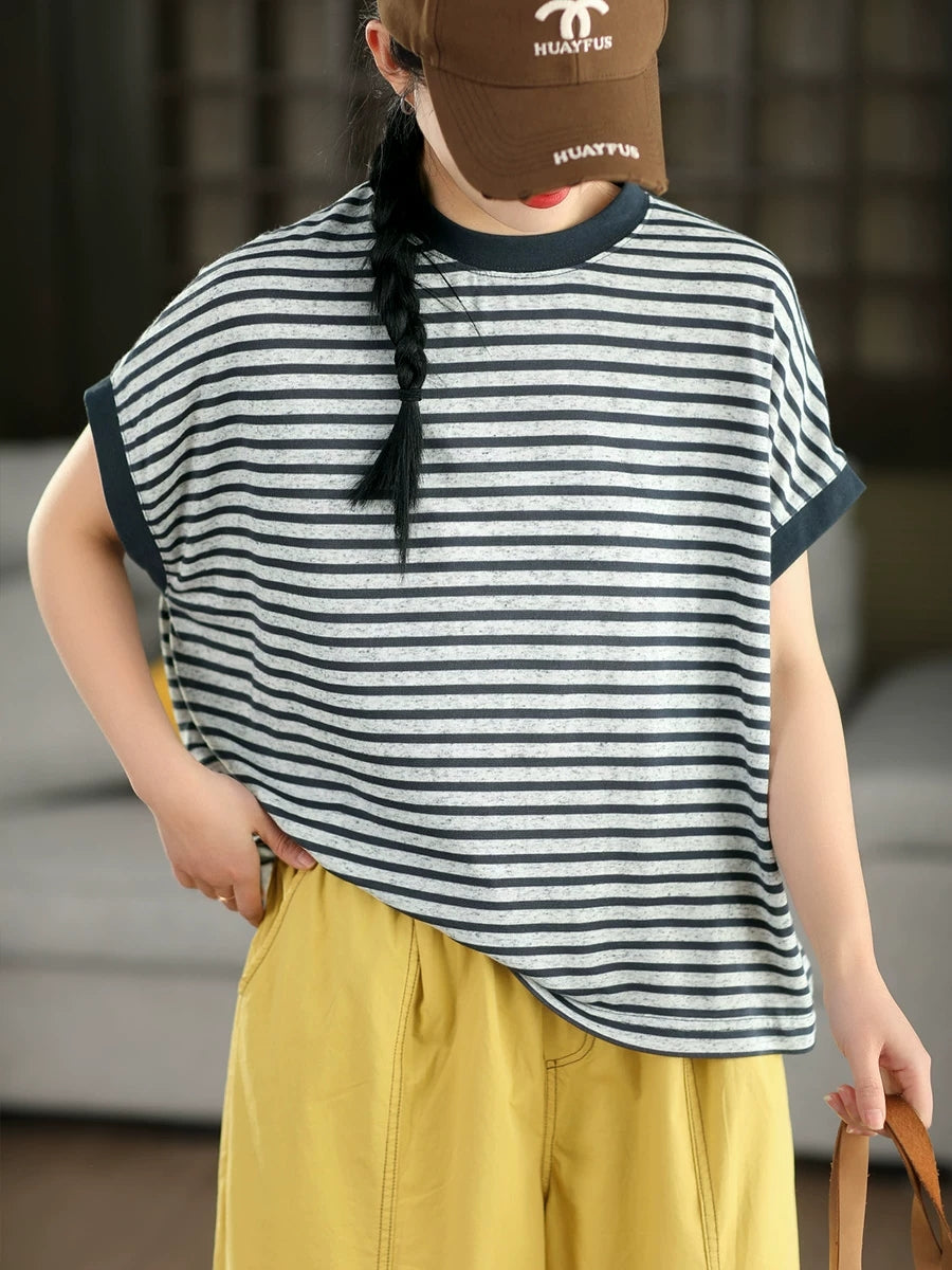 Women Summer Casual Stripe O-Neck T-Shirt