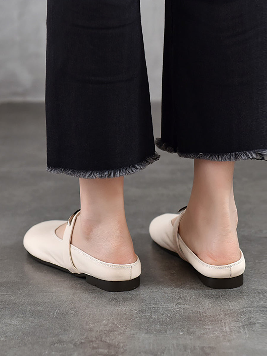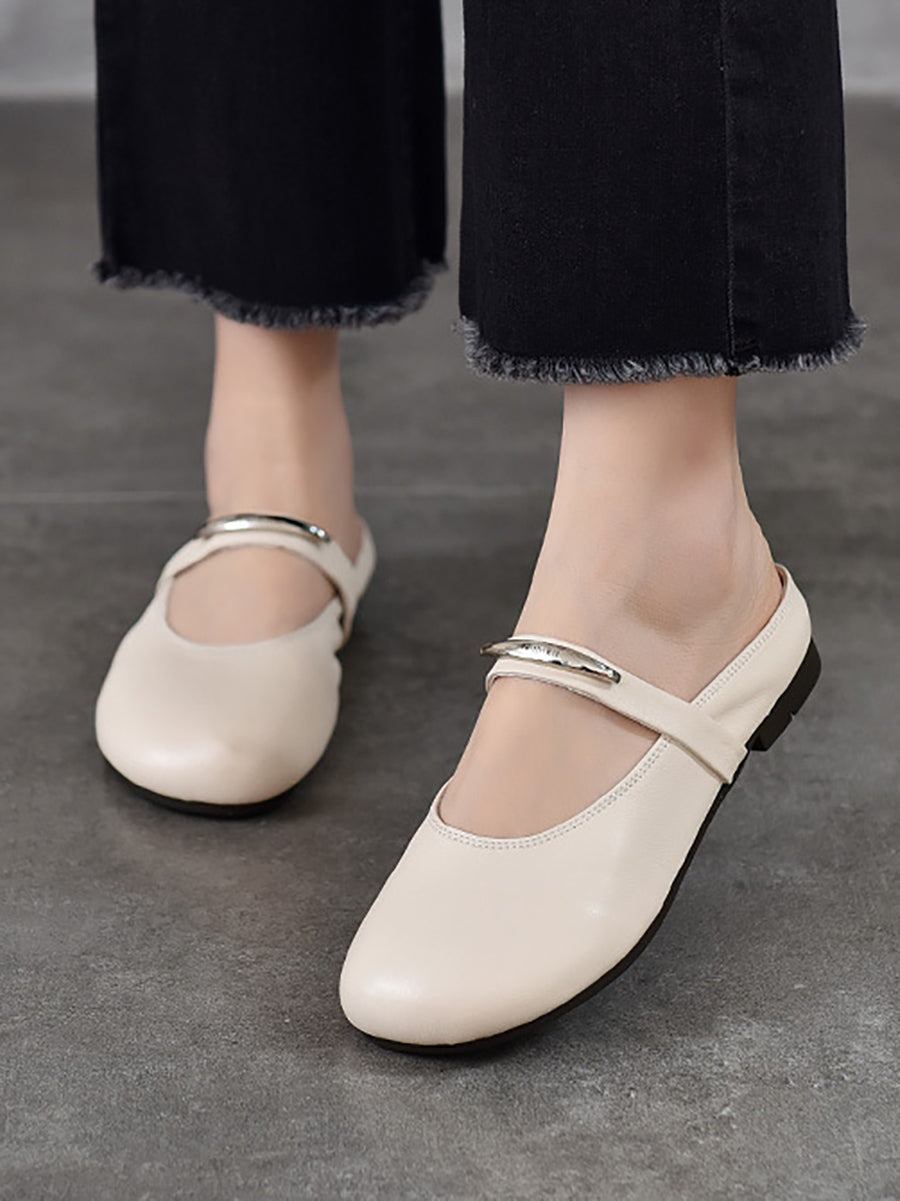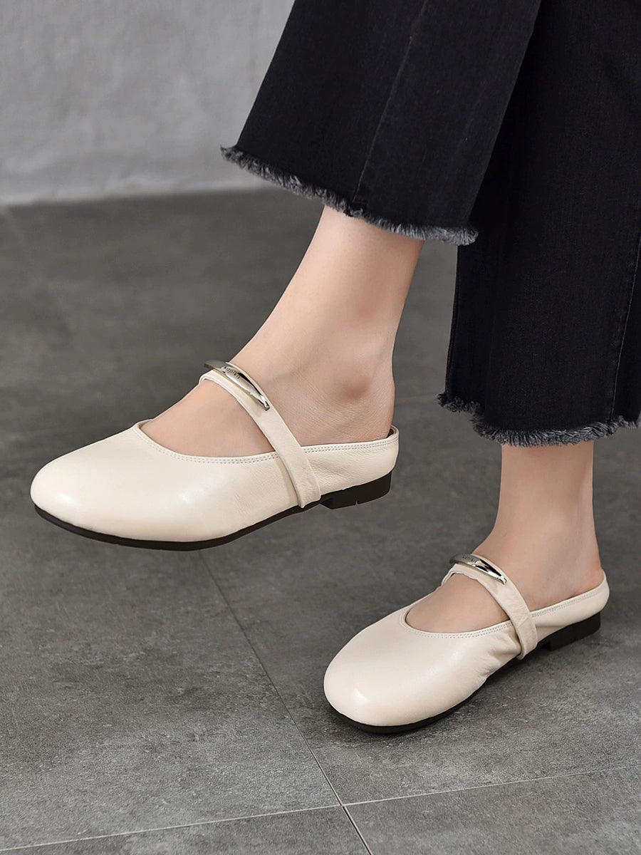 Women Summer Genuine Leather Flat Slippers