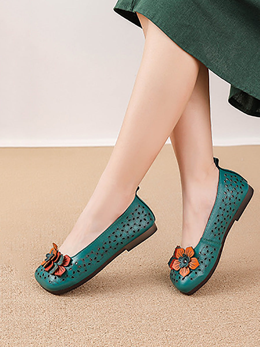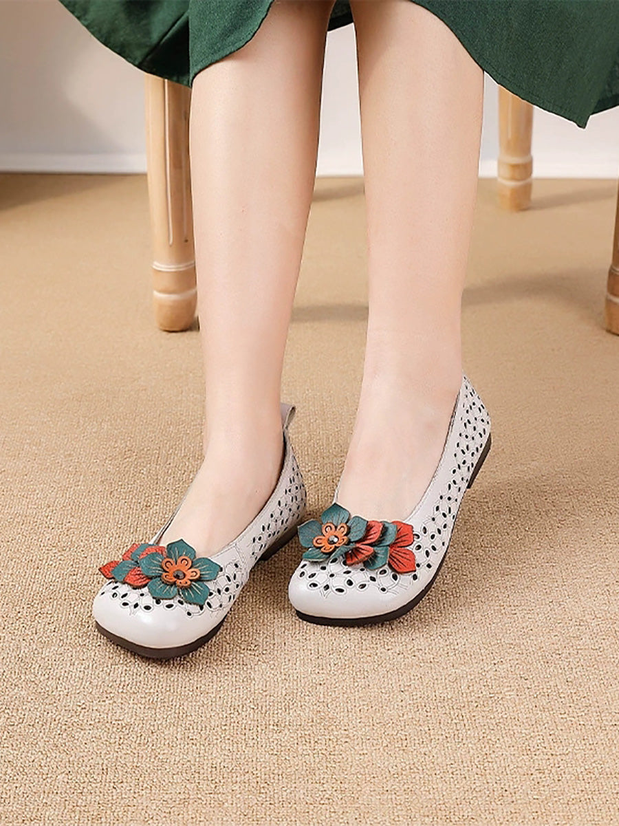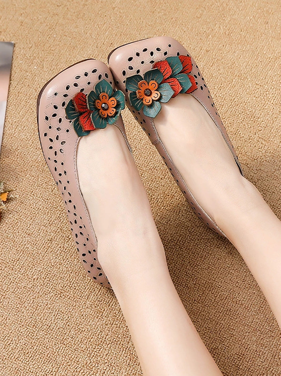 Women Summer Genuine Leather Flower Shoes