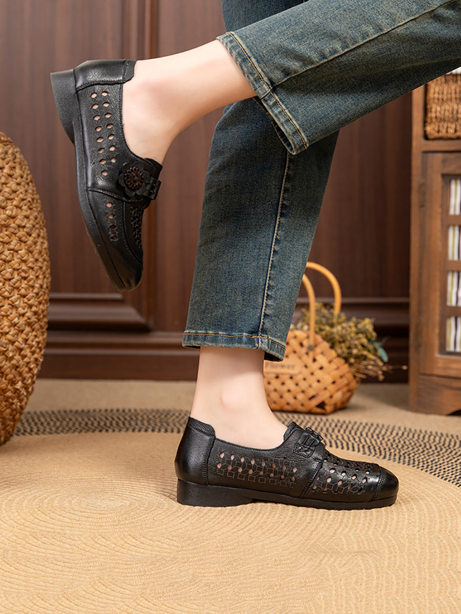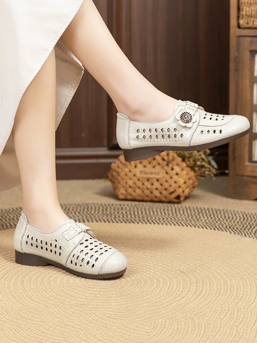 Women Summer Genuine Leather Low Heel Sandals