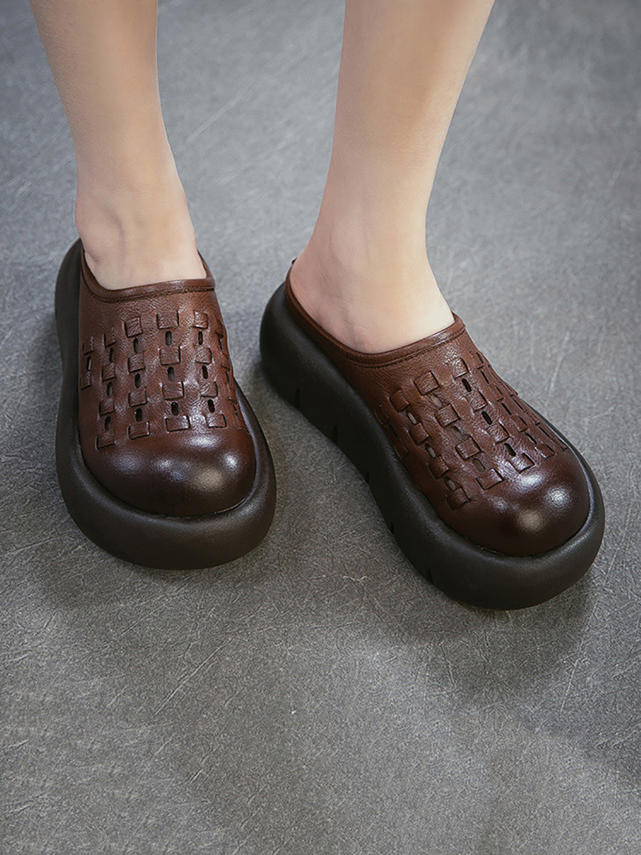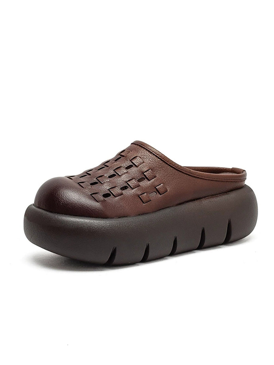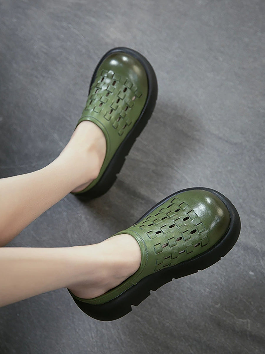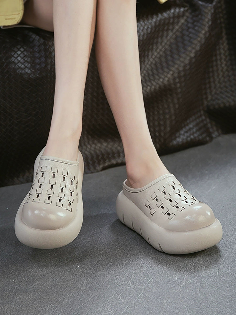 Women Summer Genuine Leather Weave Platform Slippers