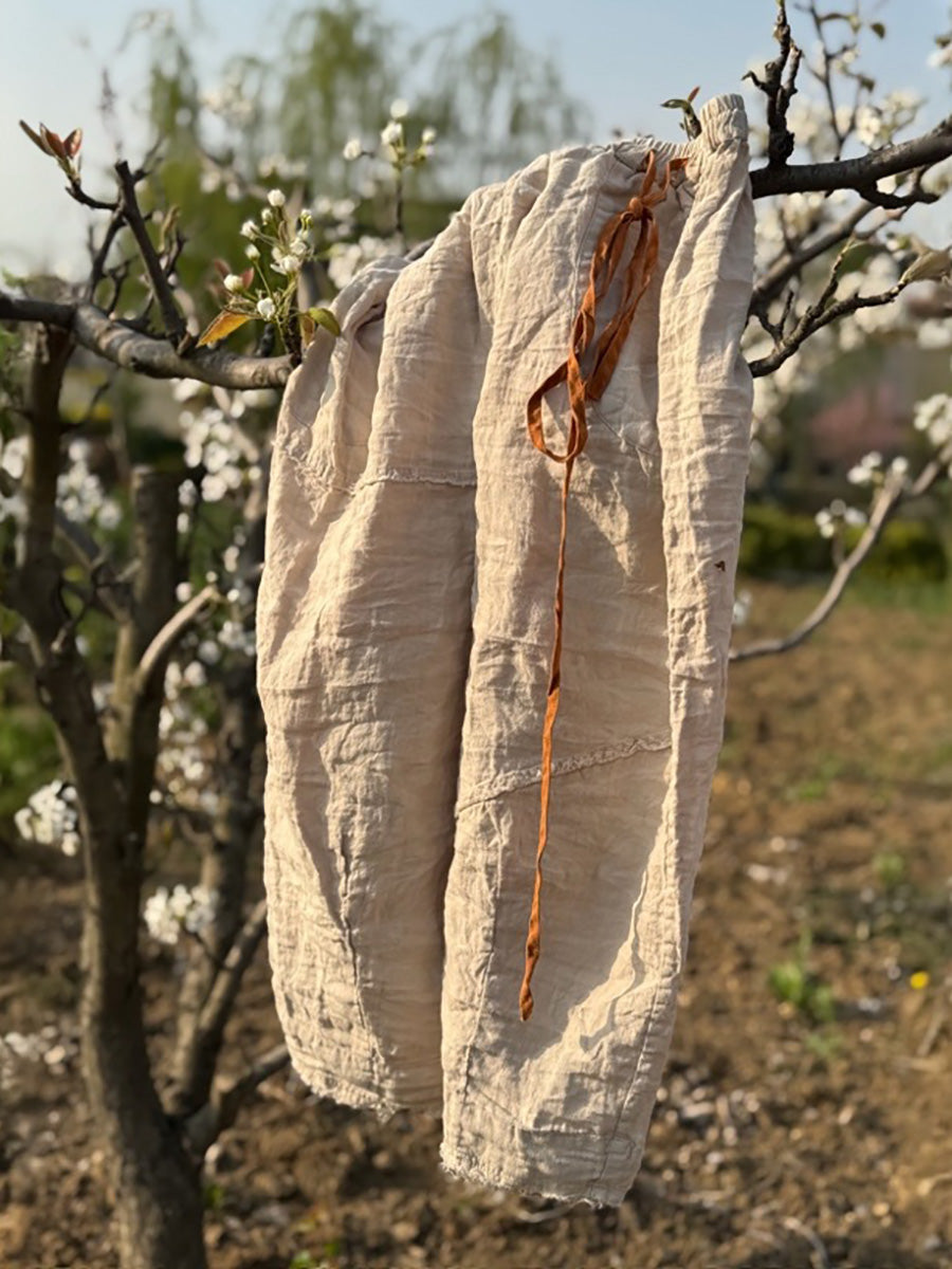 Women Summer Pure Color Linen Wide-leg Pants