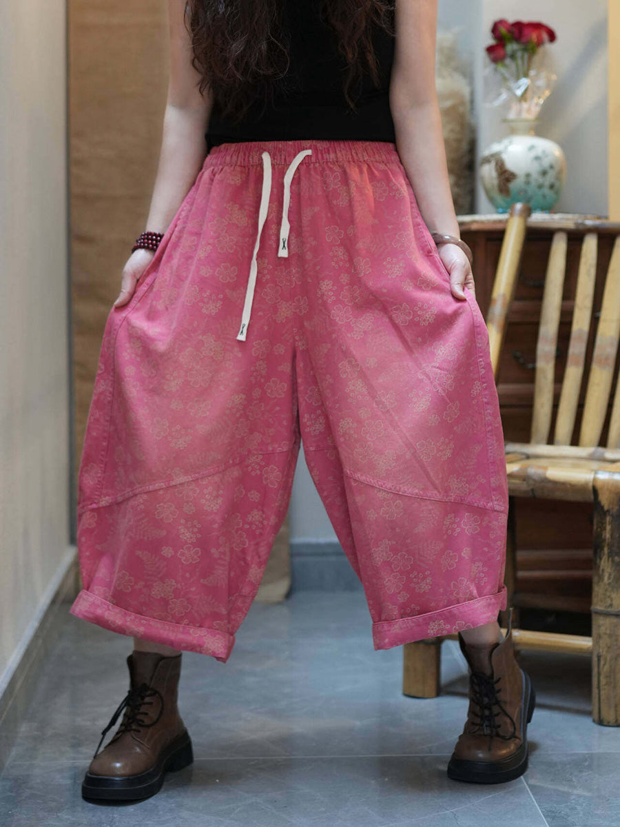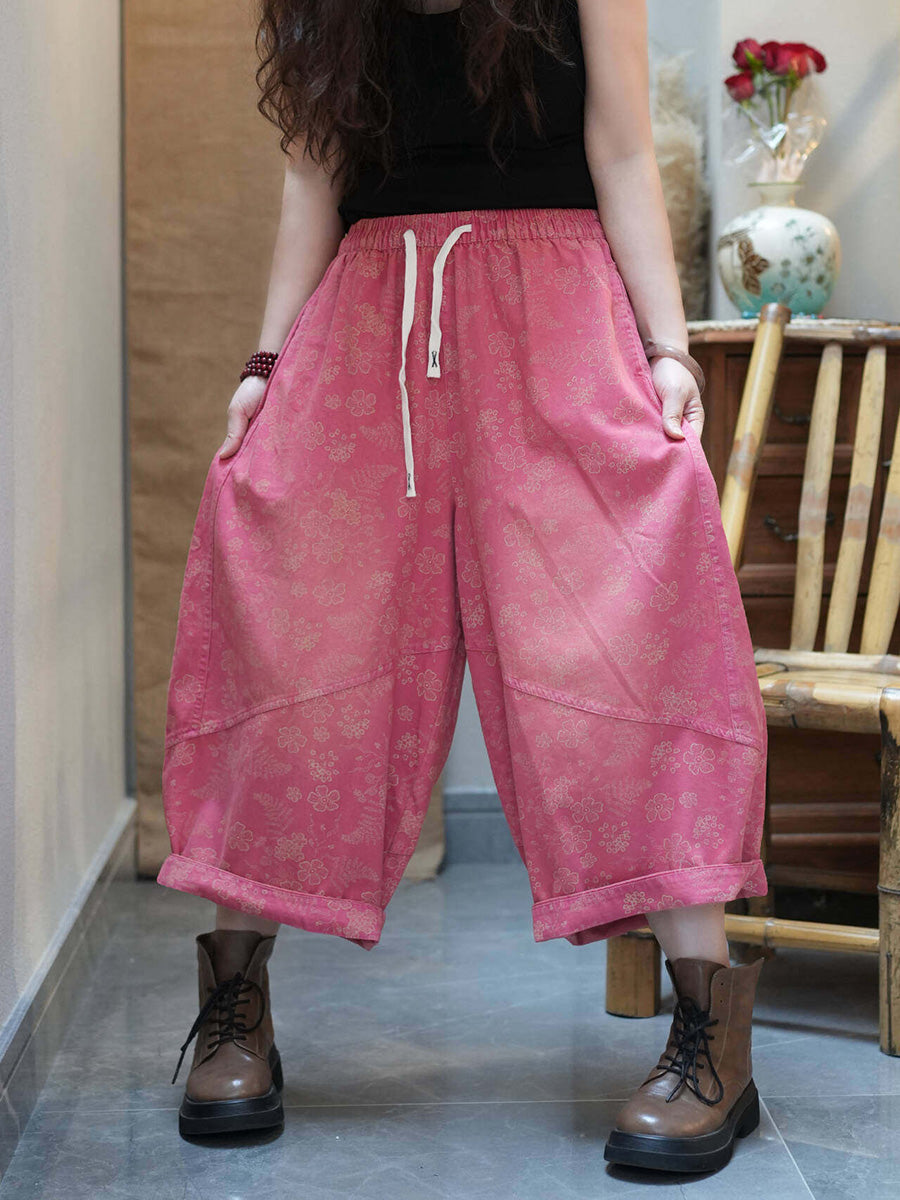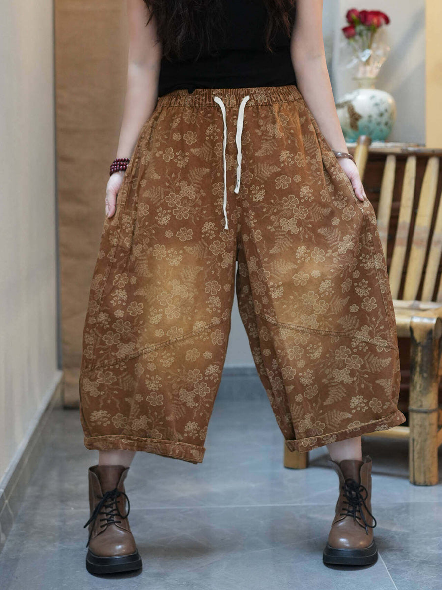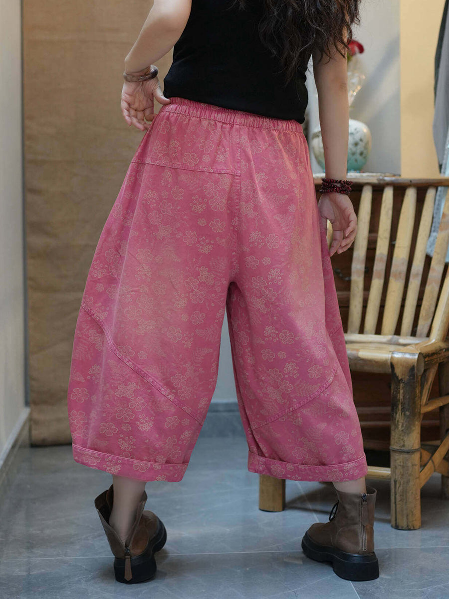 Women Summer Retro Flower Wide-leg Pants