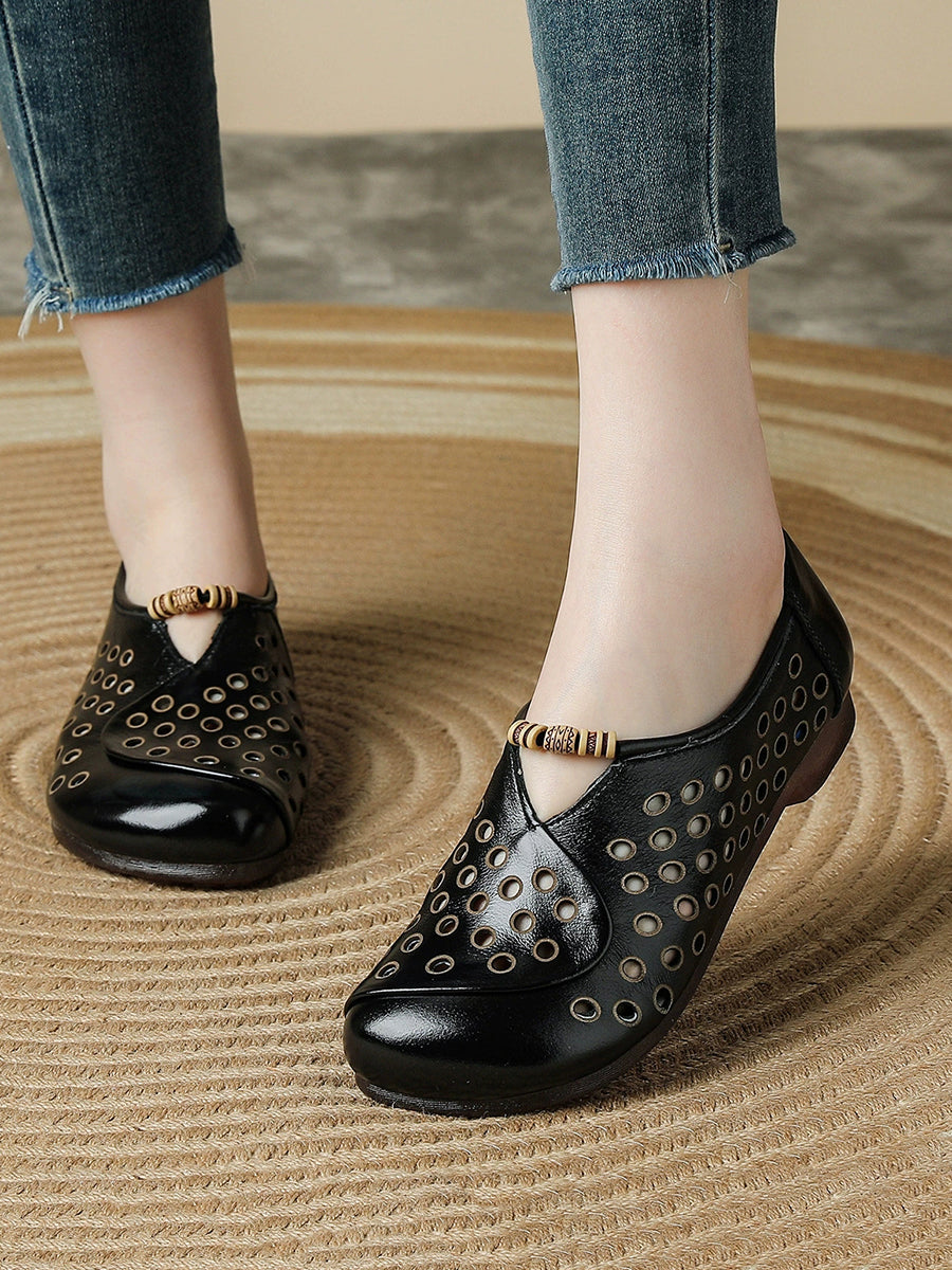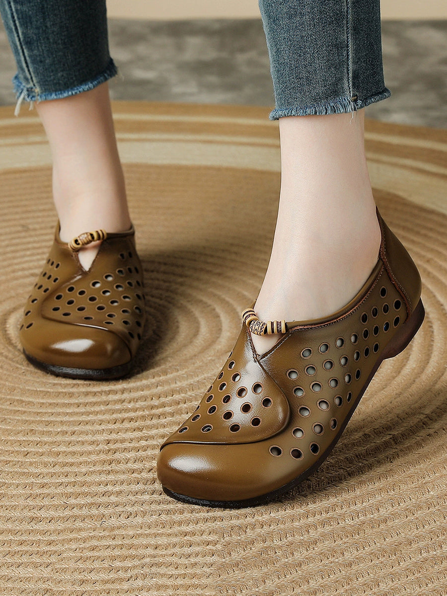 Women Summer Retro Hole Genuine Leather Shoes