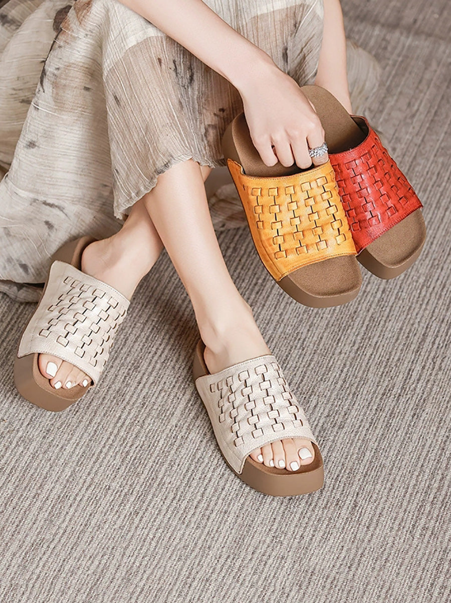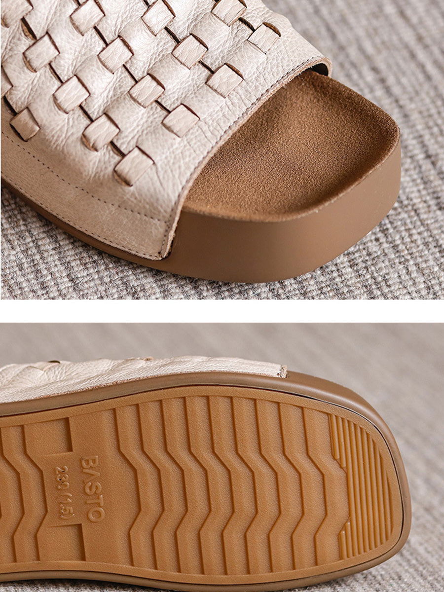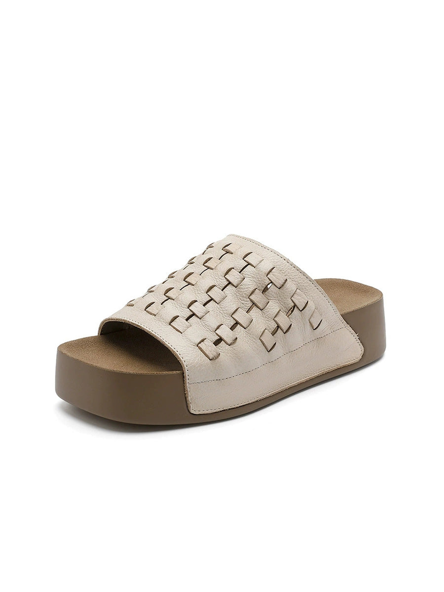 Women Summer Soft Genuine Leather Weave Slippers