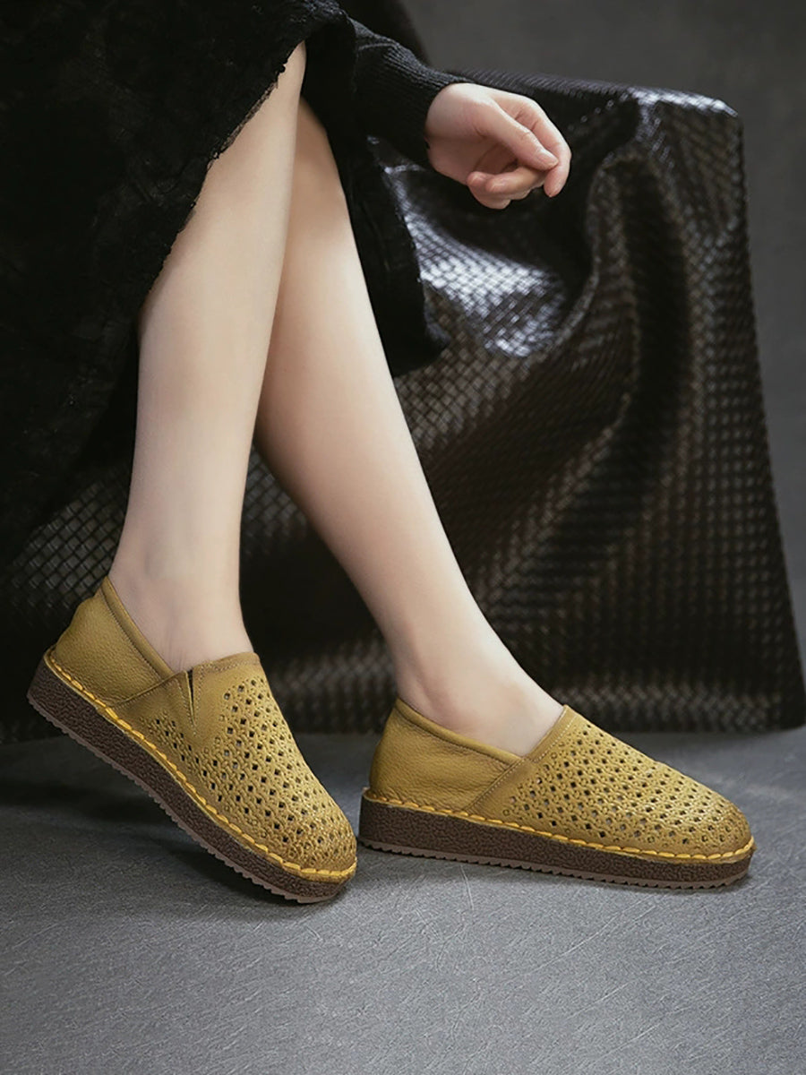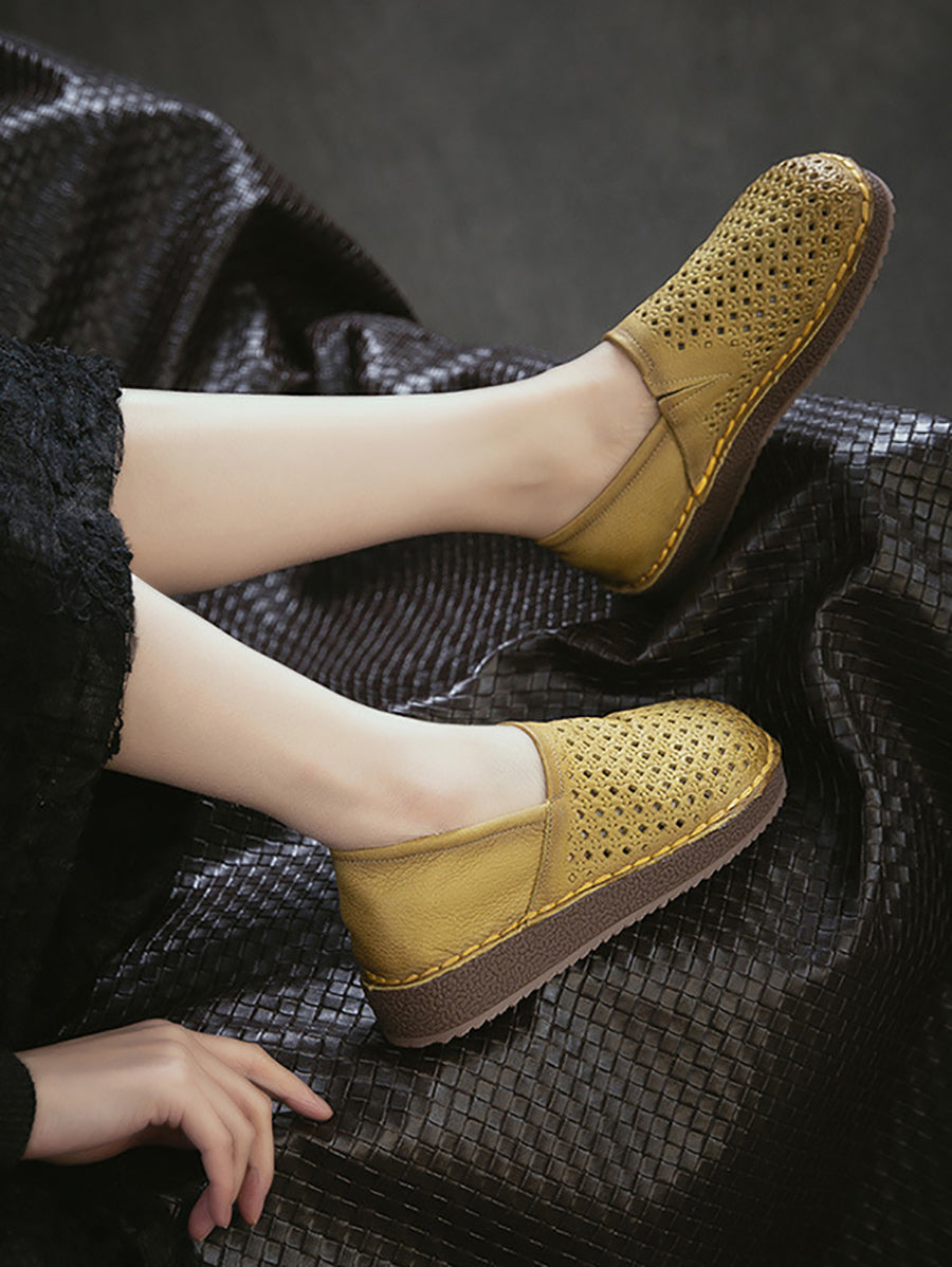 Women Summer Soft Leather Hollow Out Flat Shoes