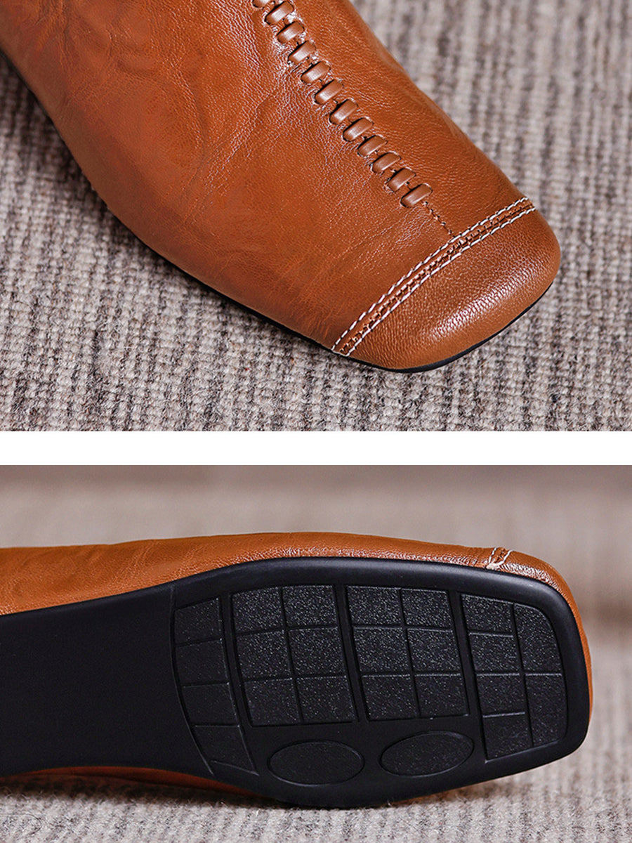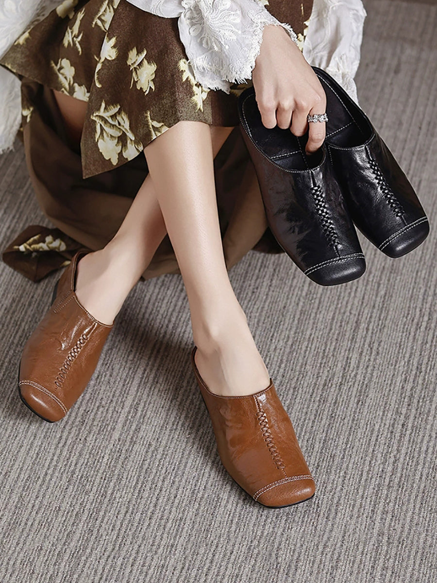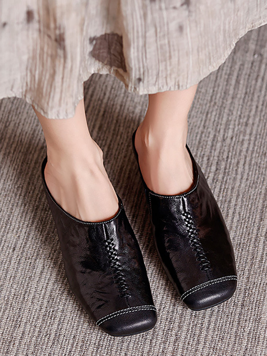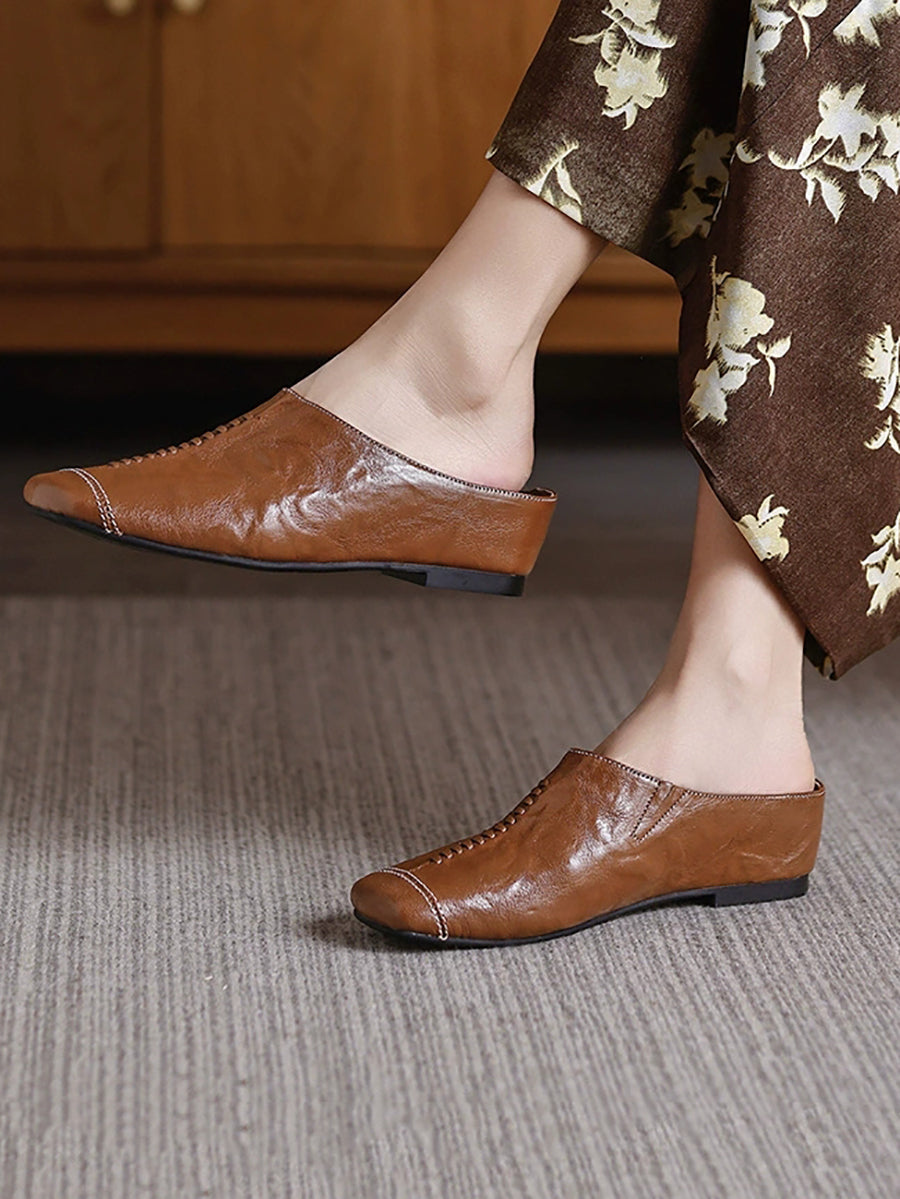 Women Summer Soft Leather Square Toe Slippers