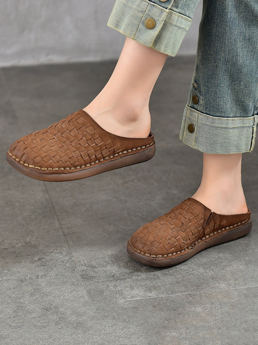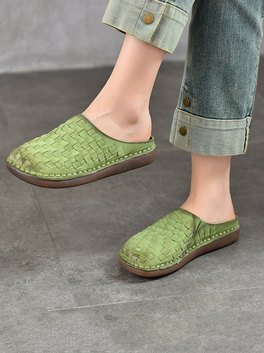 Women Summer Vintage Leather Weaving Slippers