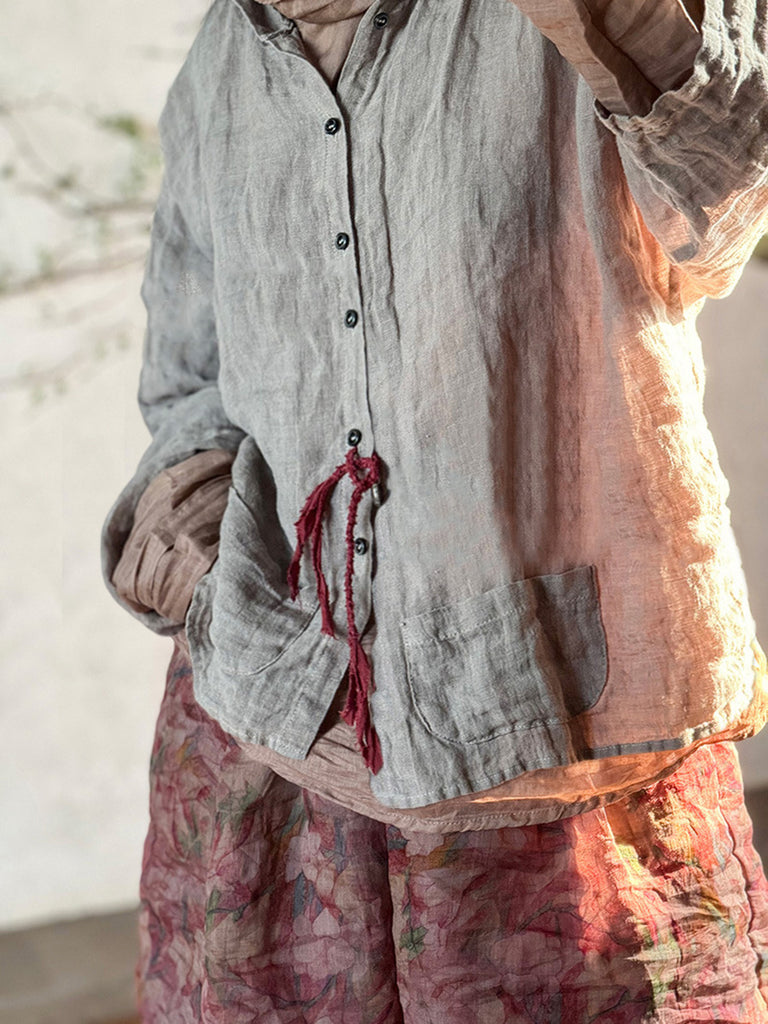 Plus Size Women Summer Vintage Linen Solid Button-up Hooded Shirt