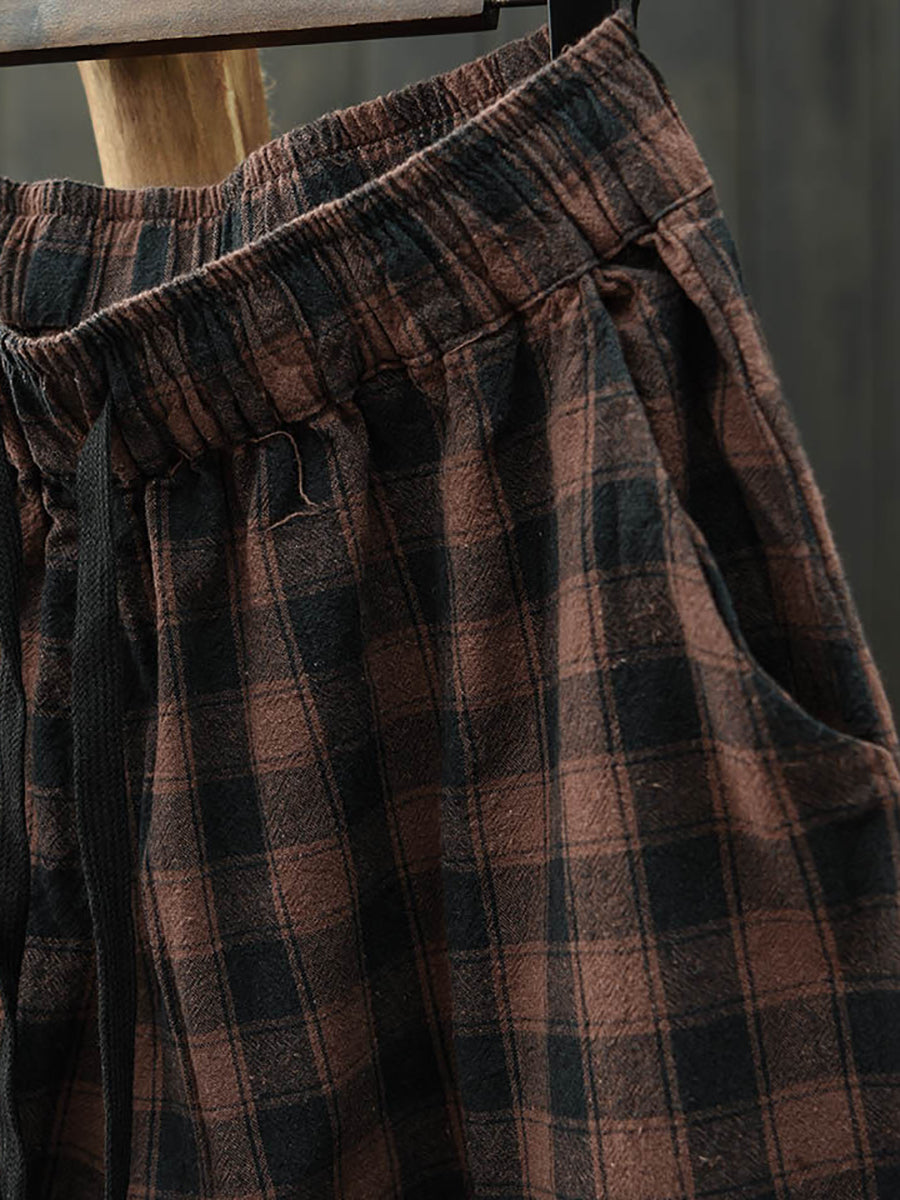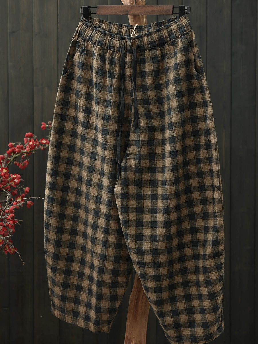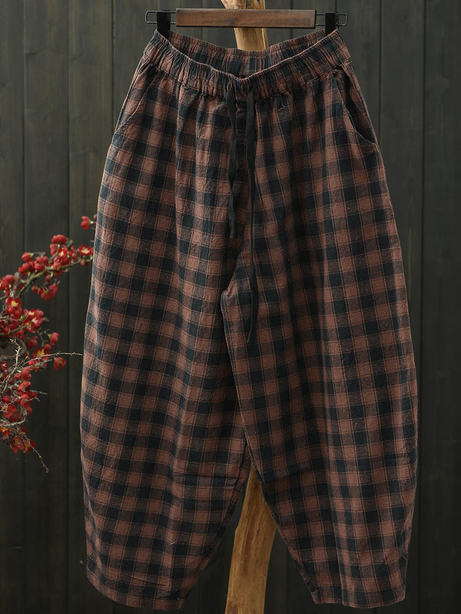 Women Summer Vintage Plaid Harem Pants