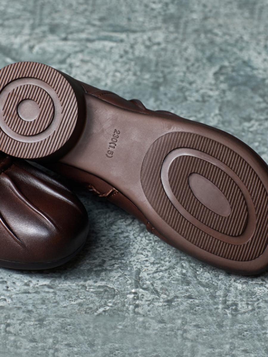 Women Vintage Autumn Leather Spliced Low Heel Boots