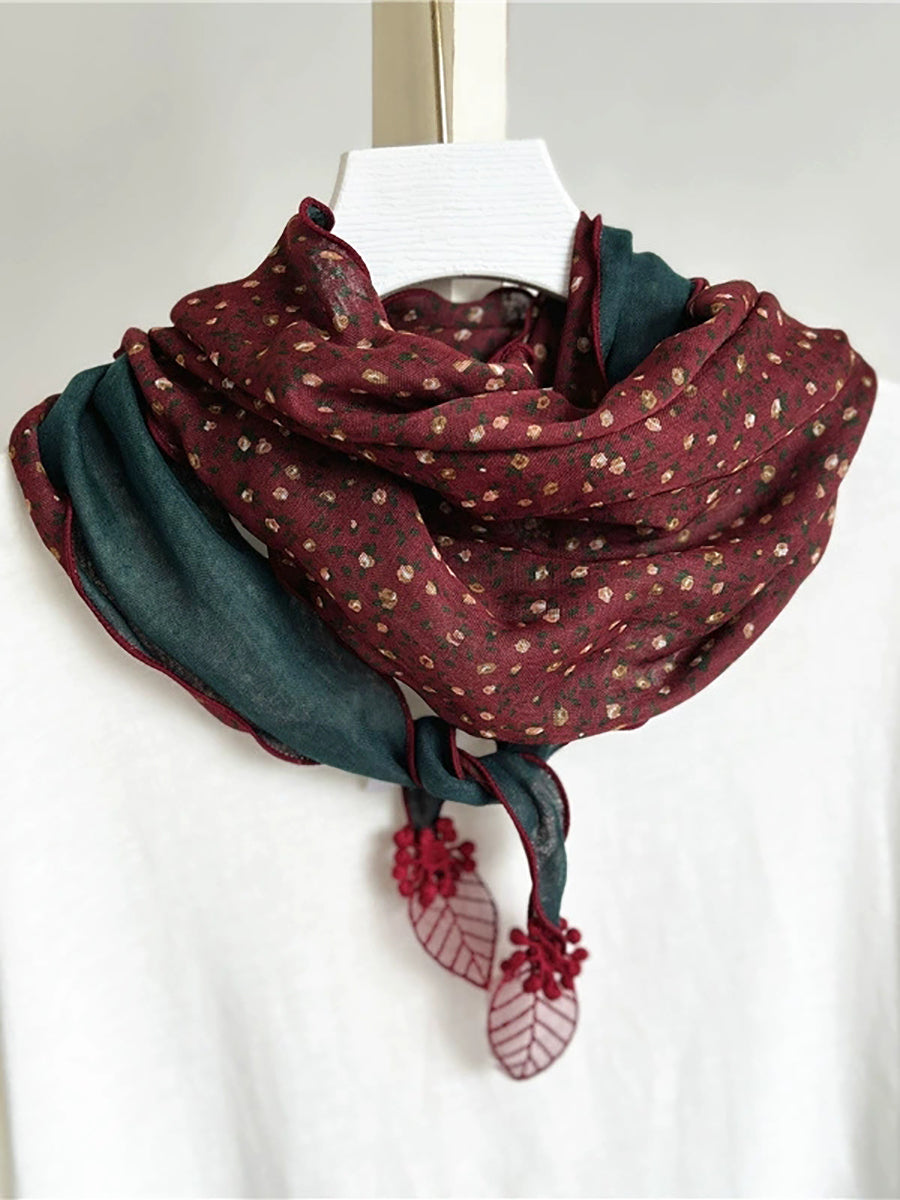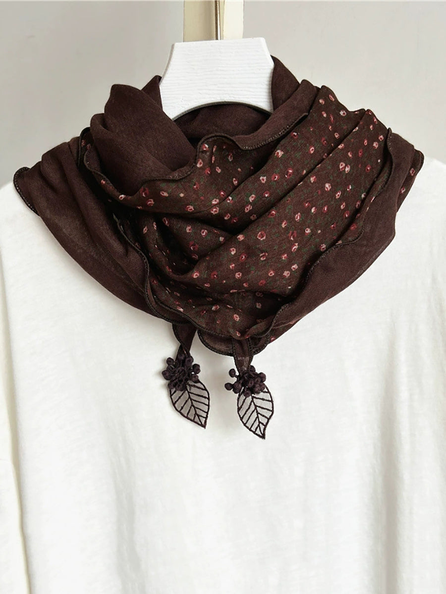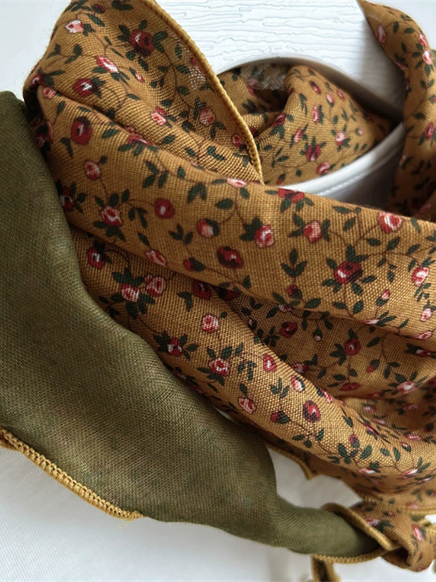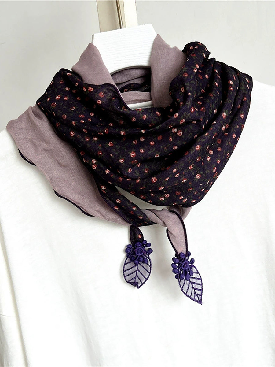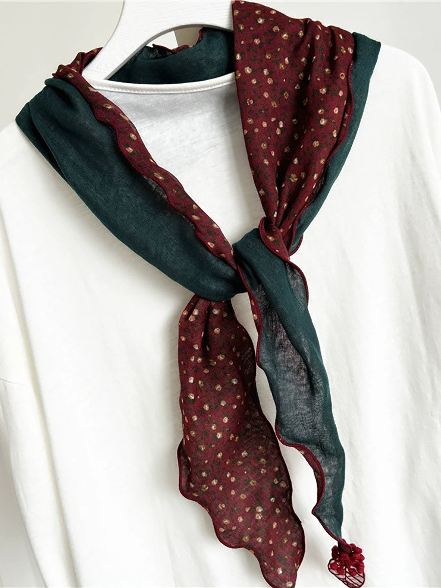 Women Vintage Floral Spliced Triangle Scarf
