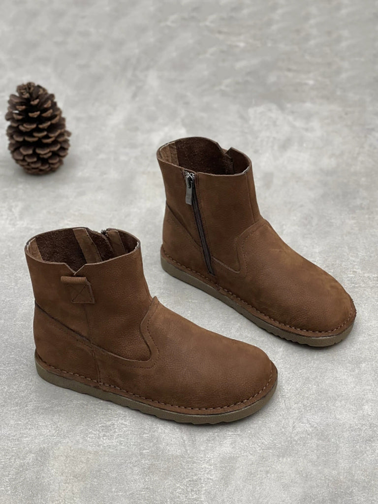 Women Vintage Genuine Leather Flat Ankle Boots