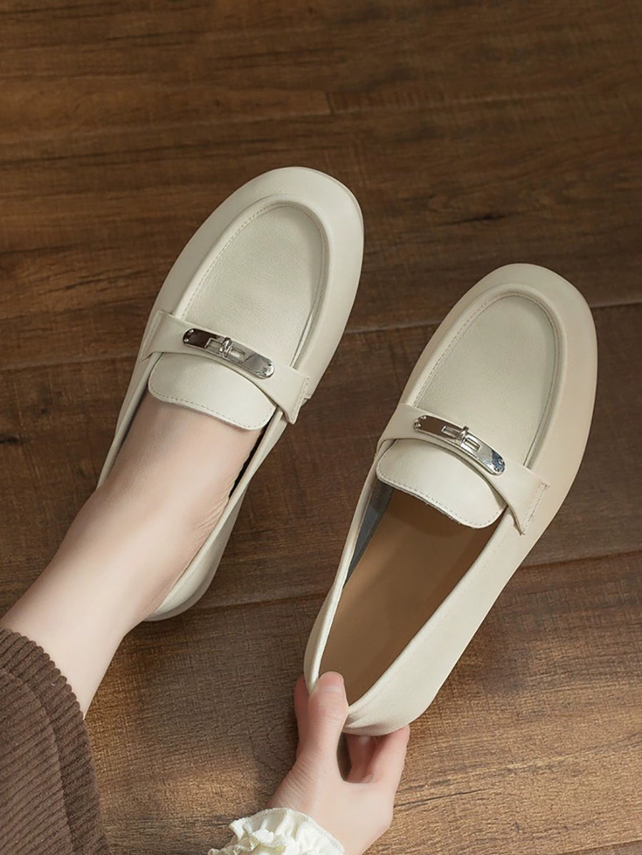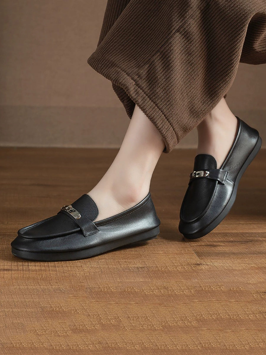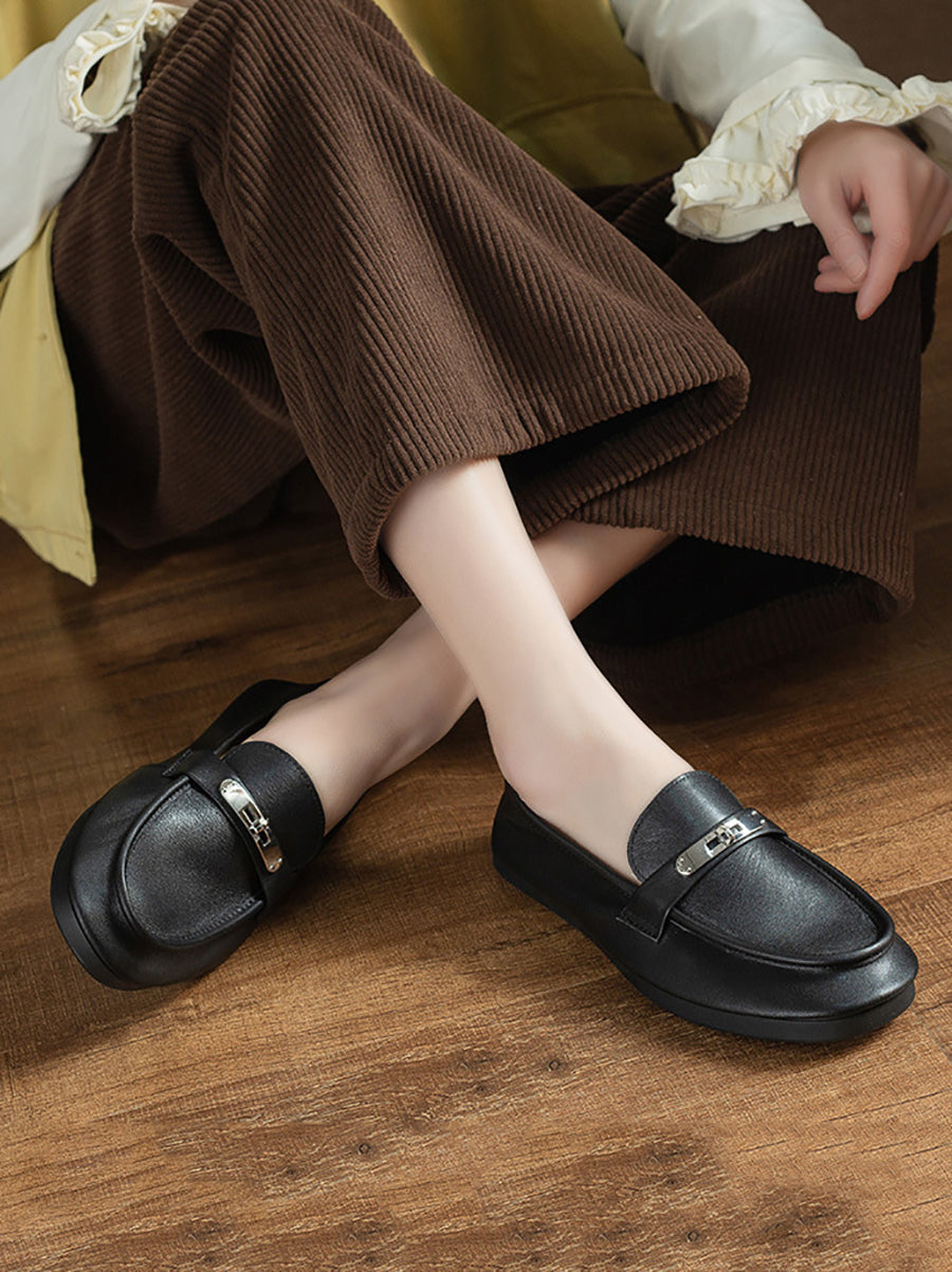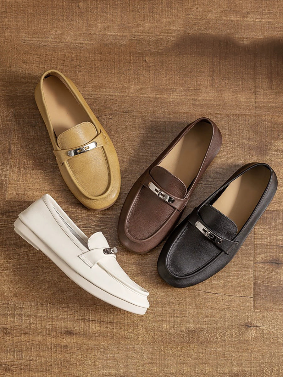 Women Vintage Genuine Leather Flat Loafer Shoes