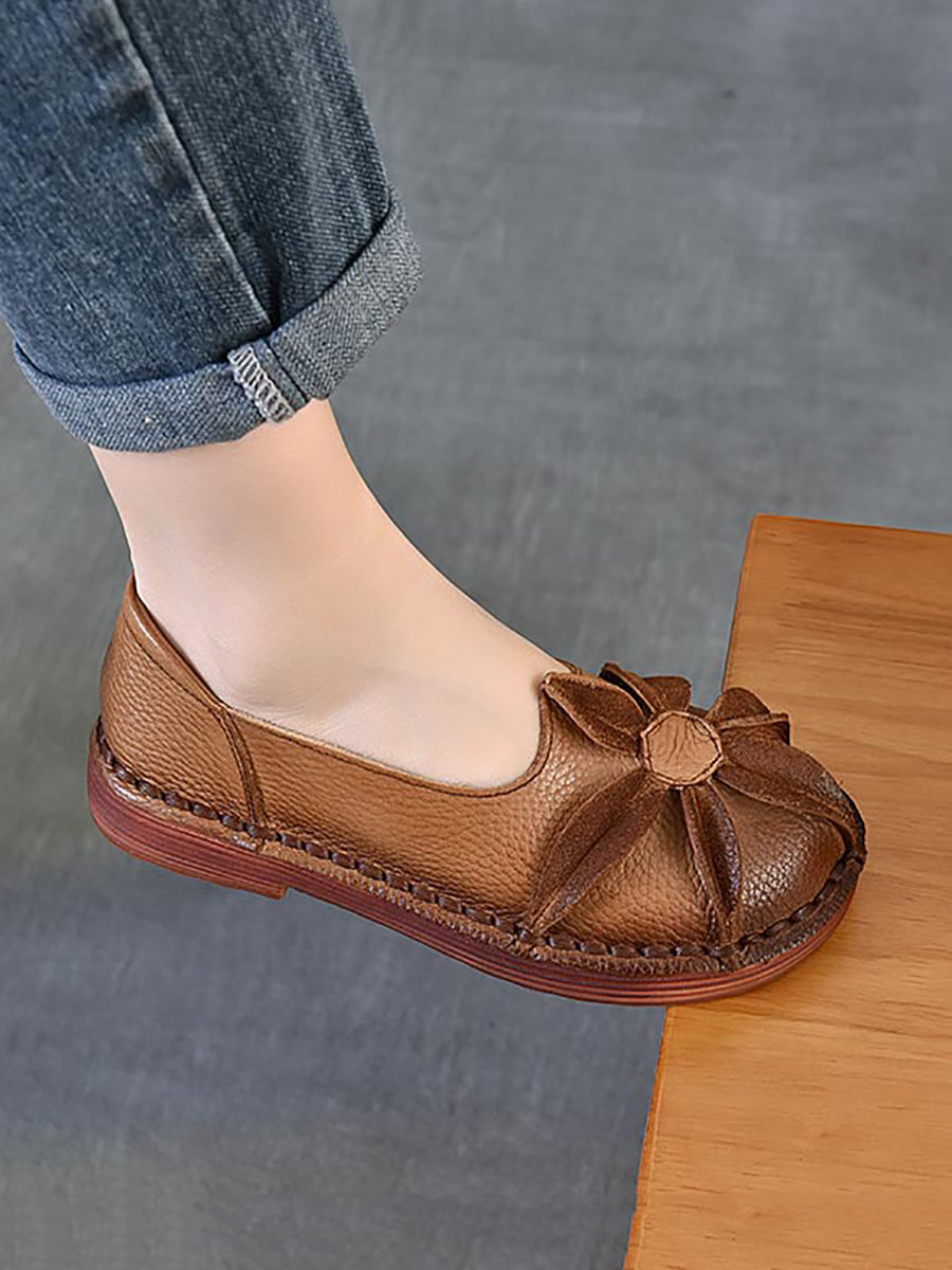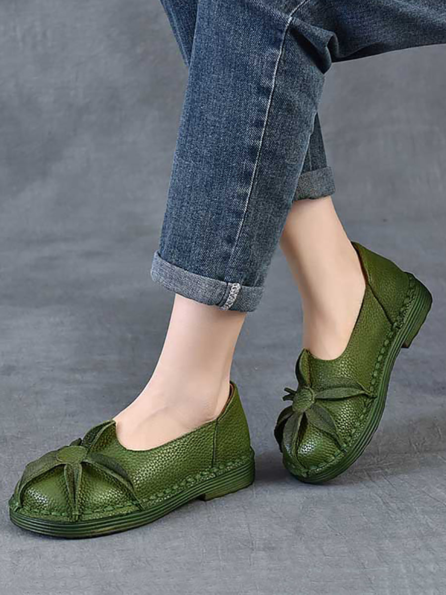 Women Vintage Genuine Leather Flower Low Heel Shoes