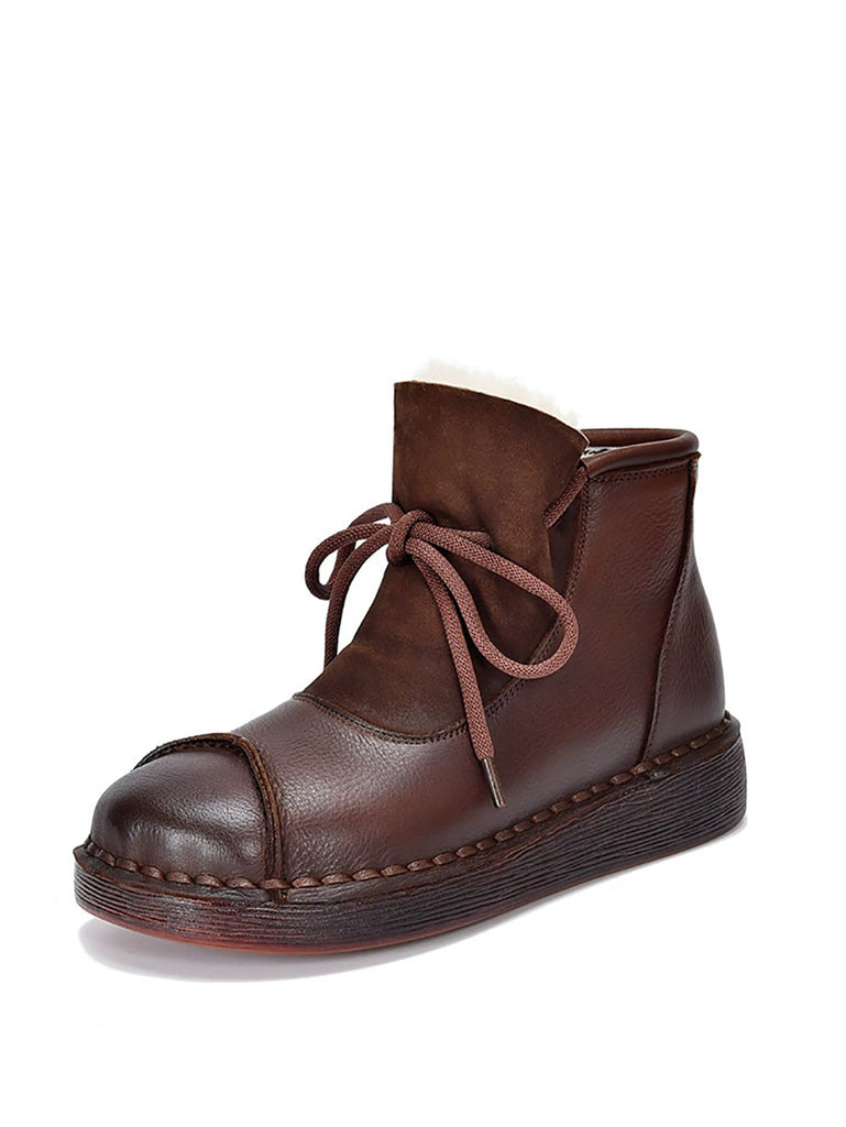 Women Vintage Genuine Leather Spliced Fleece-lined Boots