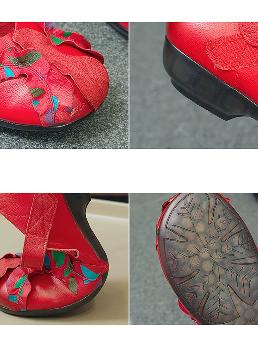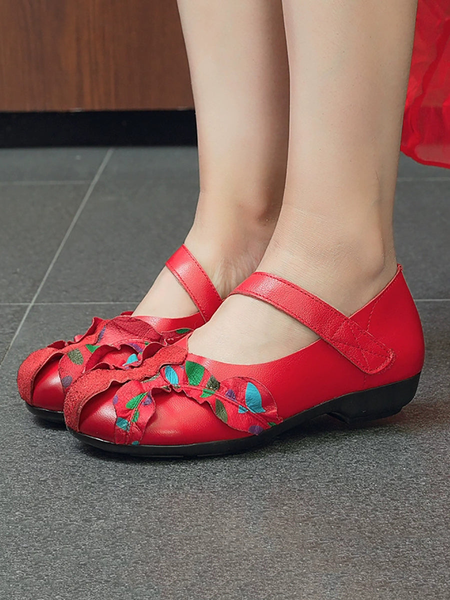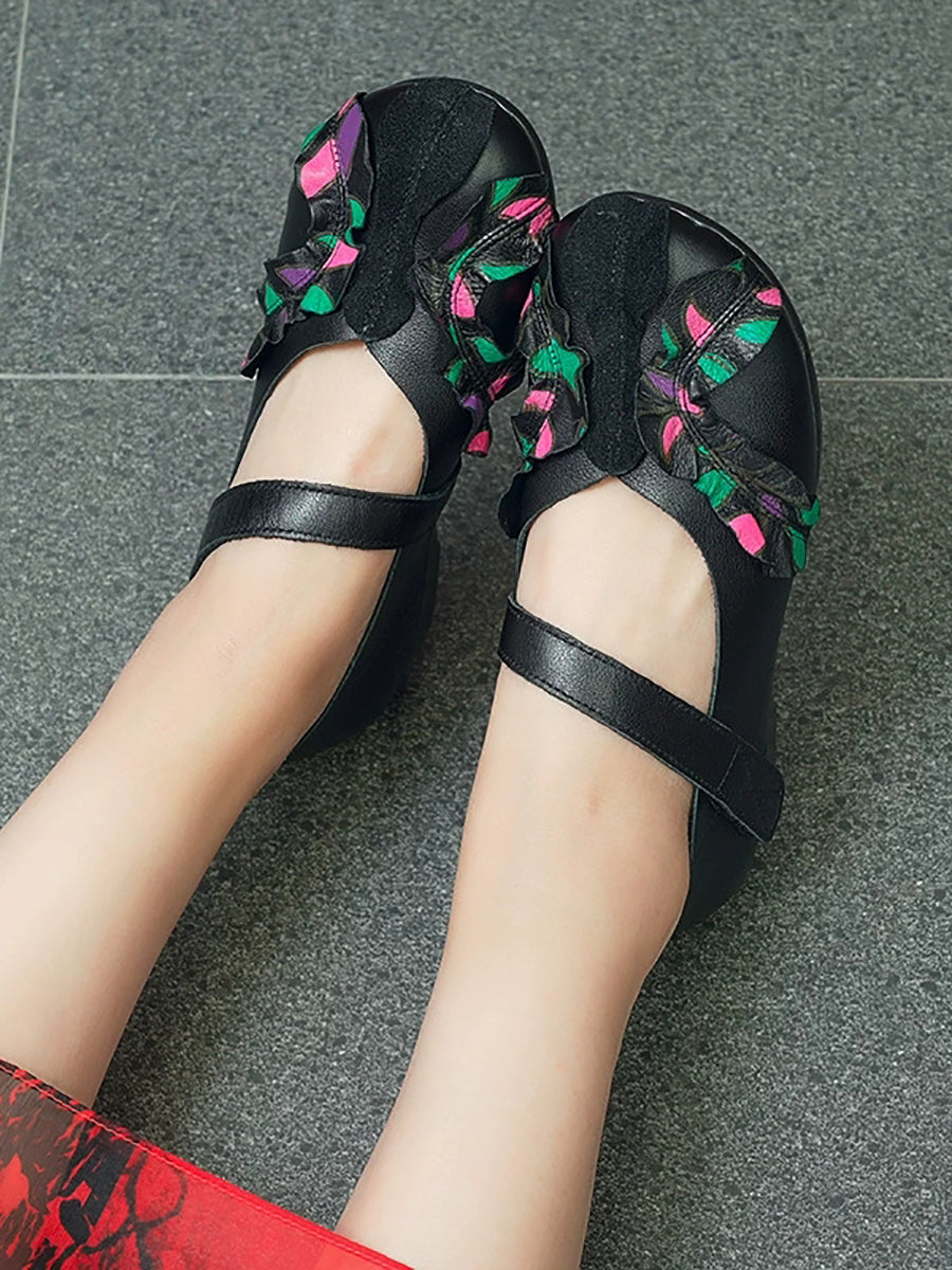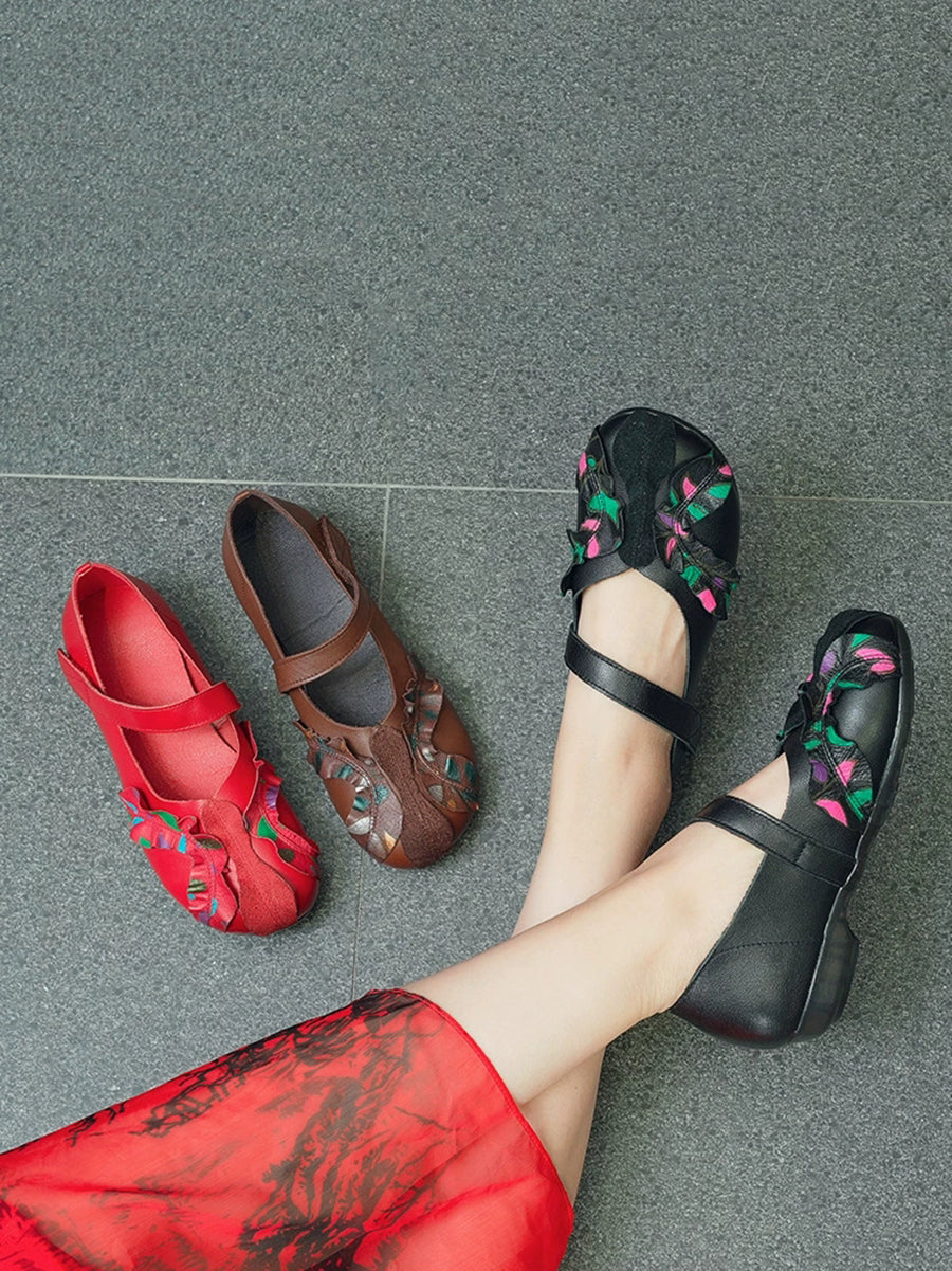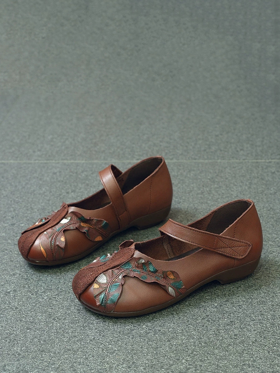 Women Vintage Genuine Leather Spliced Low Heel Shoes