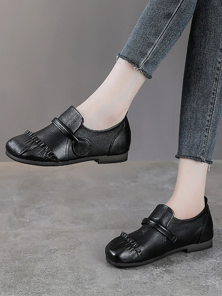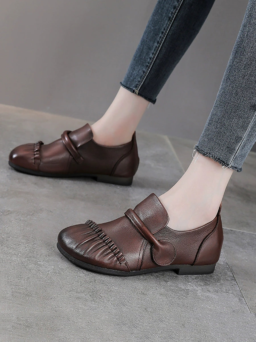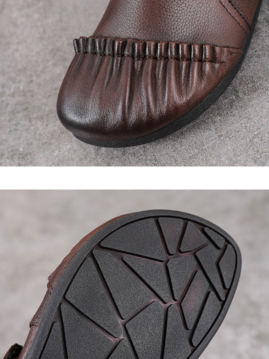 Women Vintage Genuine Leather Spliced Low Heel Shoes