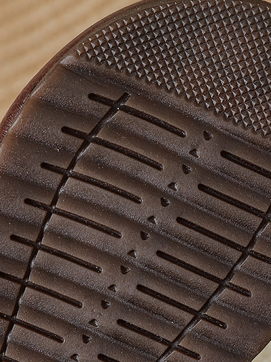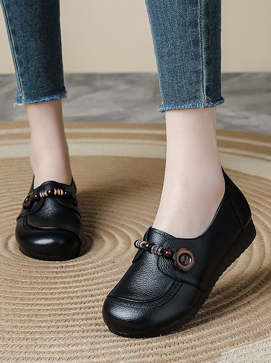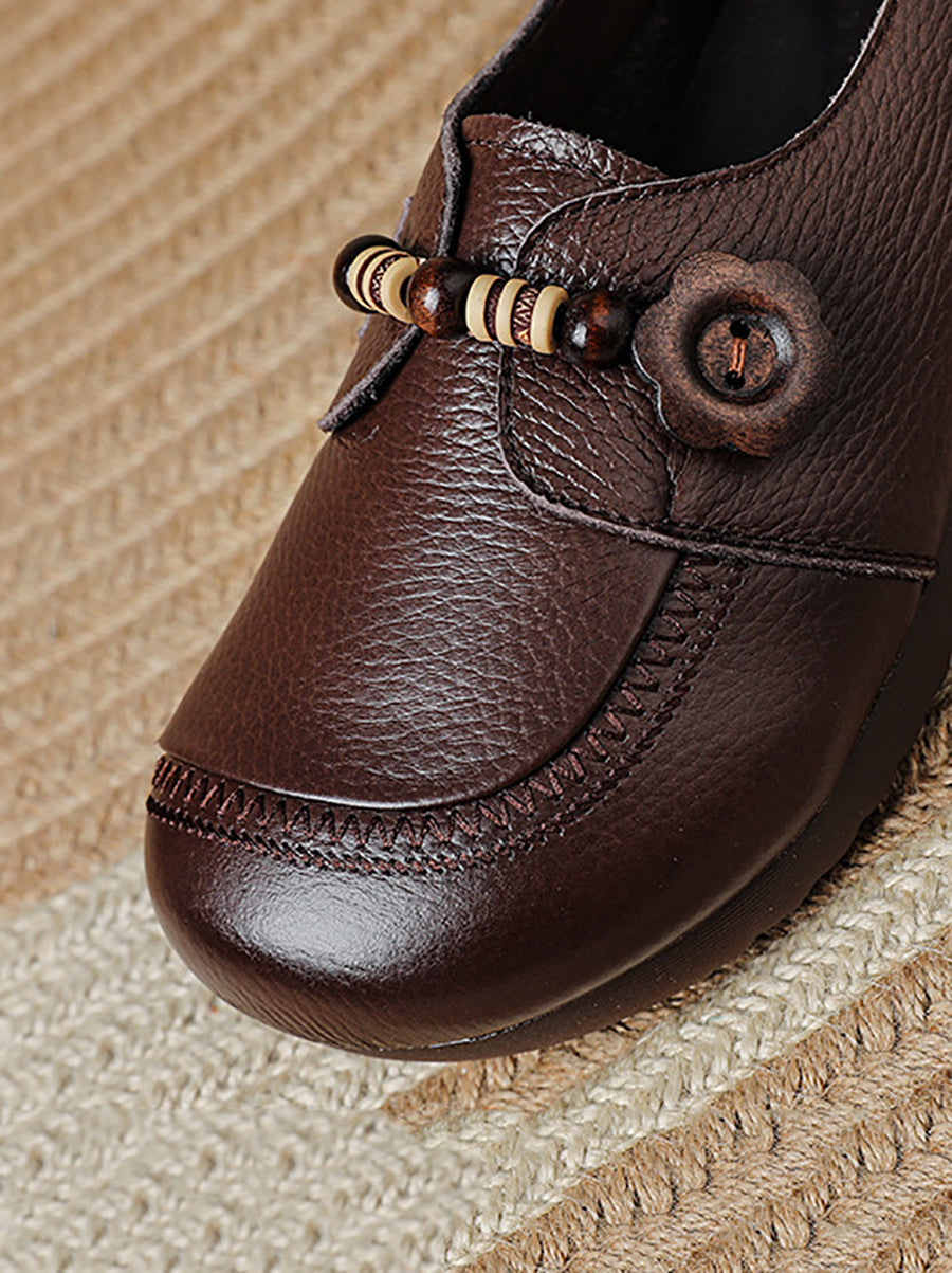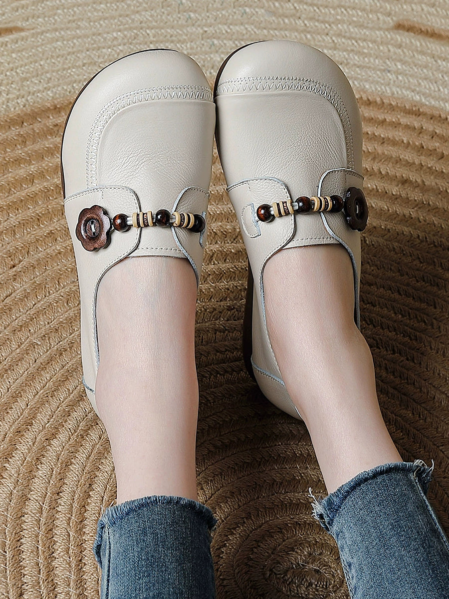 Women Vintage Genuine Leather Wooden Beads Shoes